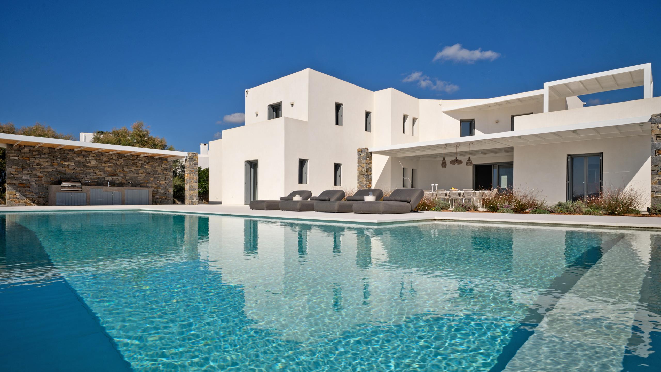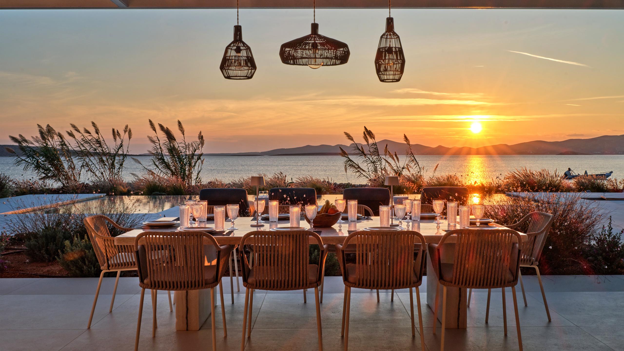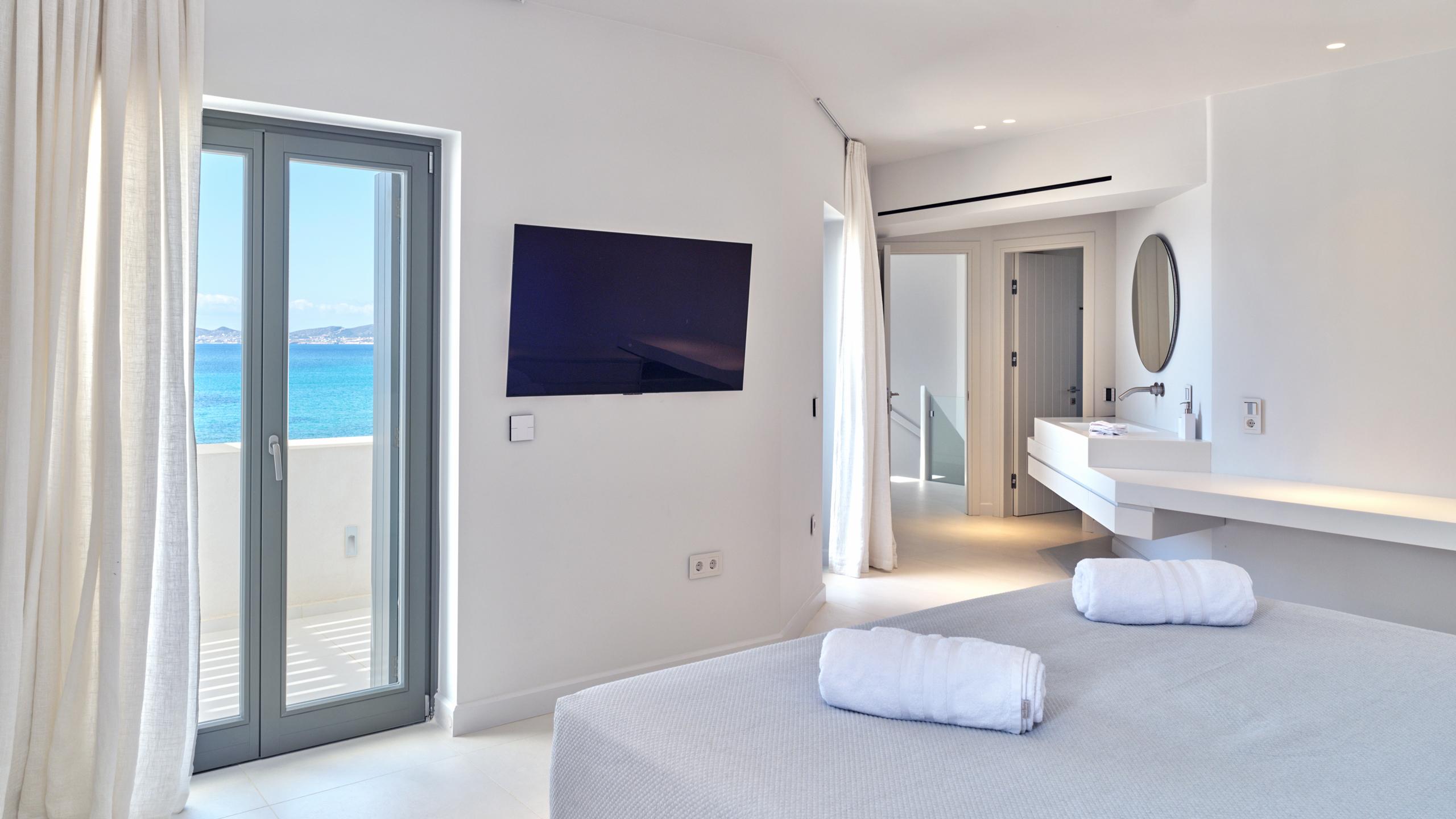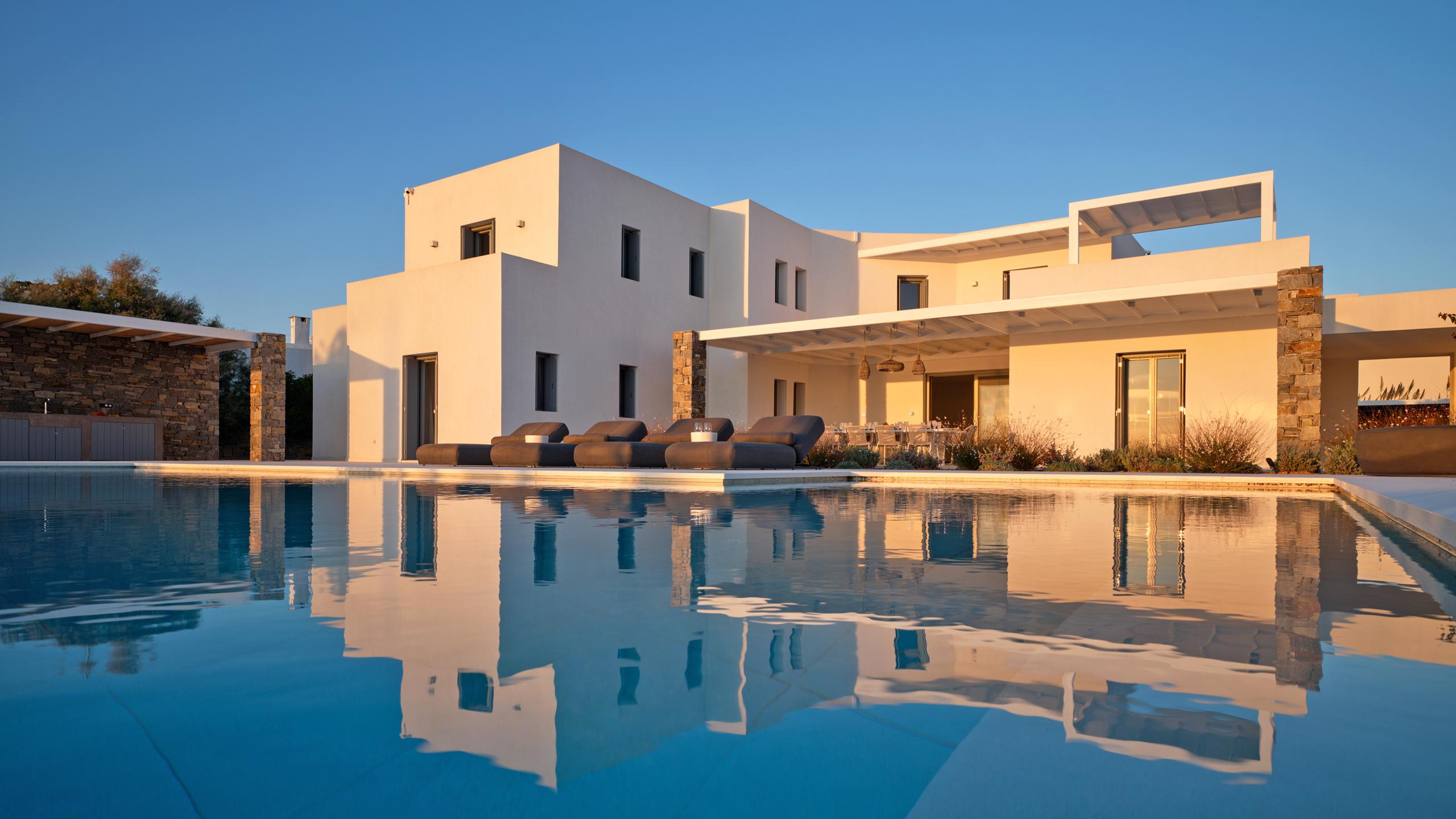 Rivolta a ovest verso il mare scintillante, la villa offre una vista ininterrotta sul tramonto che trasforma ogni sera in un momento da cartolina. Ampie zone living si fondono armoniosamente con gli spazi esterni, invitandoti a cenare, rilassarti e goderti il panorama con l’orizzonte come sfondo. Che tu stia viaggiando in famiglia o ospitando amici, questo rifugio fronte mare promette un soggiorno indimenticabile in una delle location più esclusive di Paros.