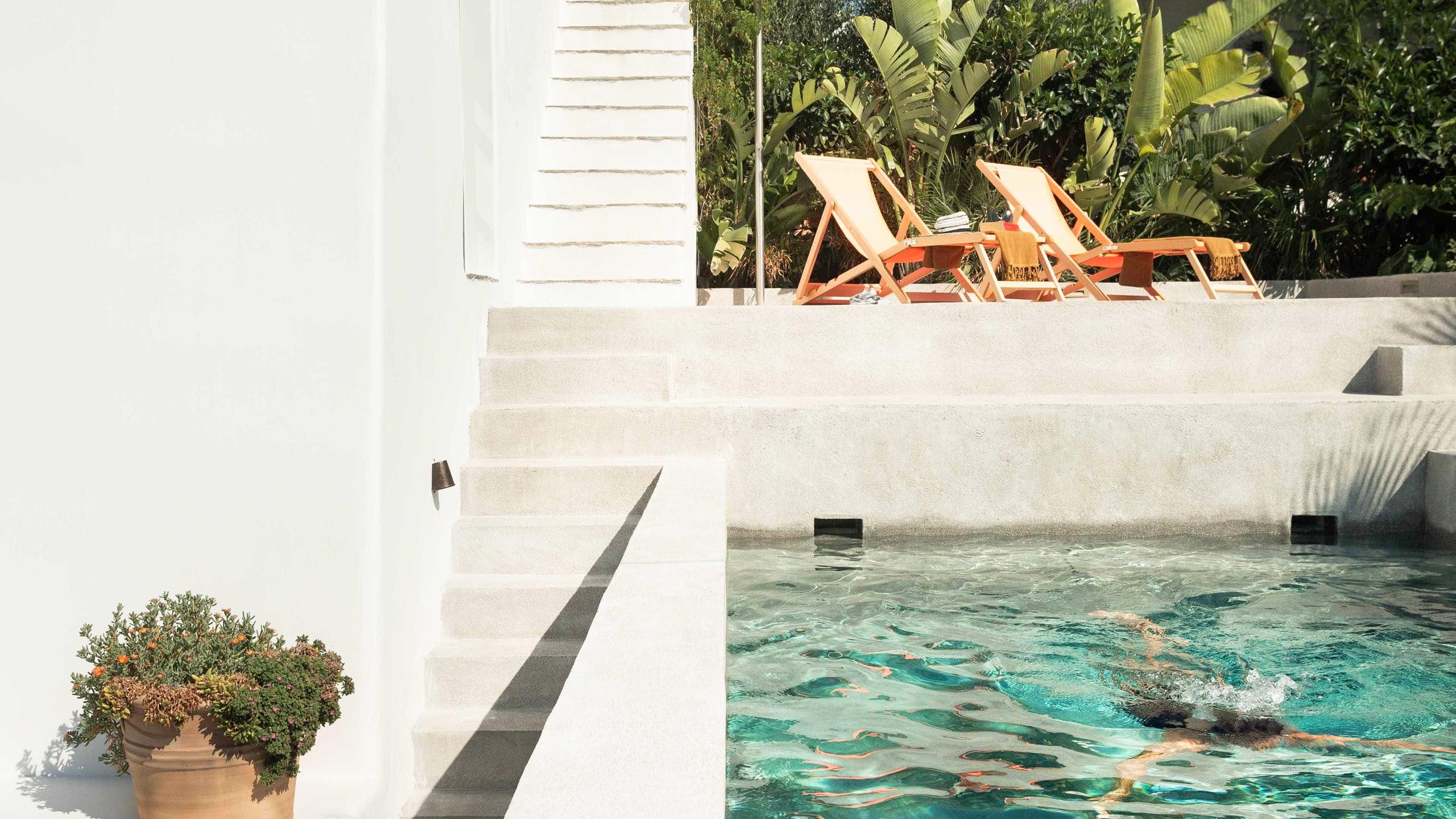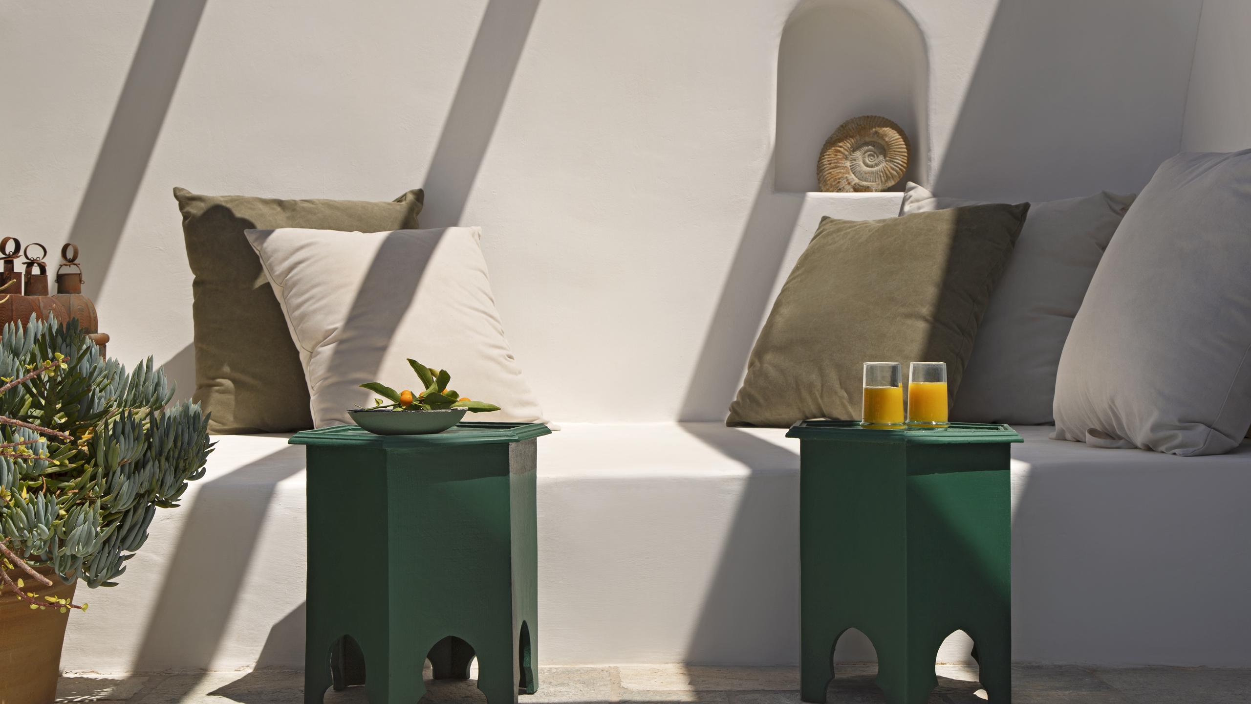 Le mattine iniziano con una colazione immersi nei rigogliosi giardini mediterranei, seguite da una piacevole passeggiata fino alle acque cristalline della spiaggia di Agioi Anargyroi.