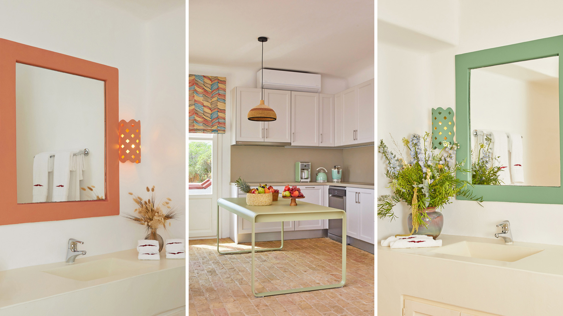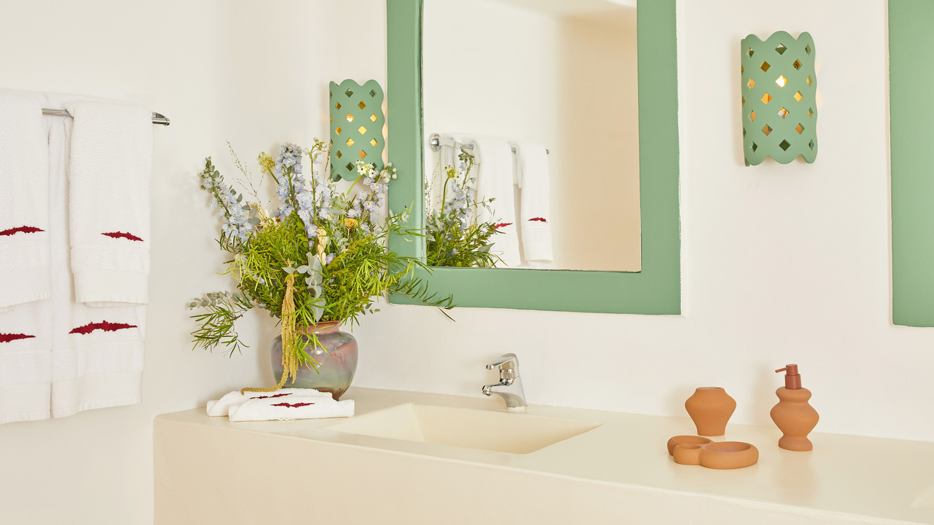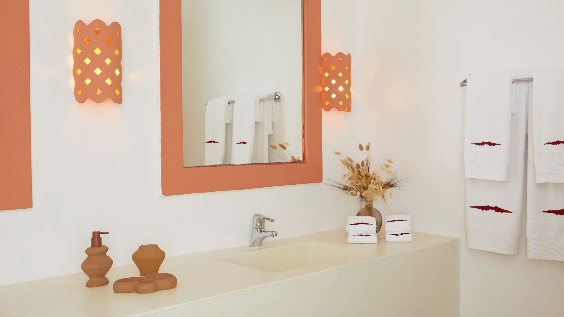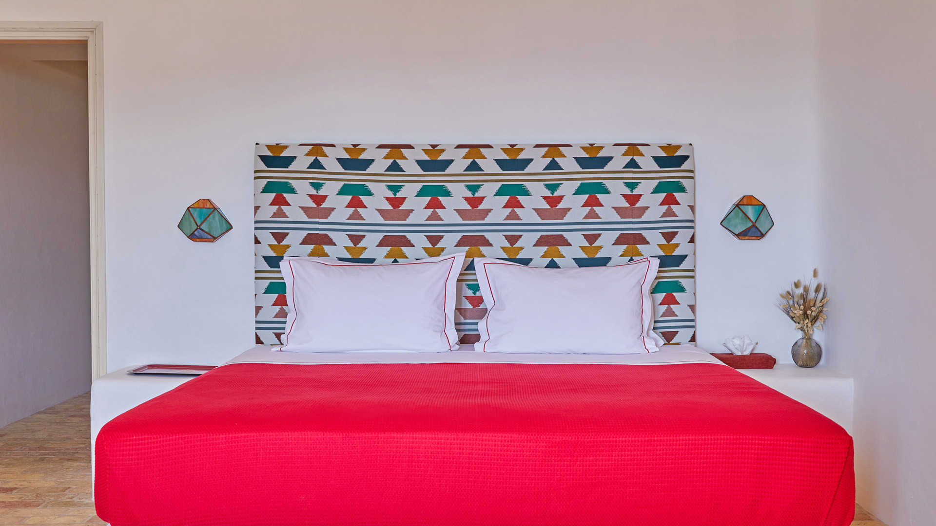 L’abitazione si sviluppa in due corpi indipendenti uniti virtualmente da un’ampia terrazza esterna, che garantisce una piacevole area ombreggiata per pranzi e cene immersi nella natura; l’accesso nell’edificio principale conduce ad un grande ambiente aperto che incorpora salotto, sala da pranzo e cucina, l’atmosfera risulta fresca e informale, con elementi d'arredo d'ispirazione etnica e dalle forti tonalità. Una scala interna conduce sul livello piscina dove trovano spazio tre camere da letto, tra cui quella padronale di dimensioni particolarmente generose, ognuna con proprio bagno di pertinenza realizzato con la tecnica della cimentogonia; due delle sistemazione hanno vista mare e accesso indipendente dall’esterno, mentre la terza risulta più piccola e posizionata sul retro. Il corpo distaccato ospita ulteriori quattro camere da letto simili tra loro e disposte in maniera speculare, sono caratterizzate dallo stesso gusto che accomuna tutti gli ambienti della villa, ognuna con proprio bagno, vista mare e ingresso indipendente dall’esterno.