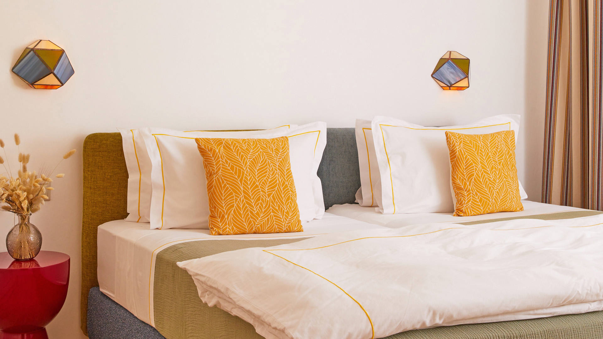 2 Camere Ospiti matrimoniali, A/C, bagni interni con doccia, ventilatore a pale, TV, entrambe con accesso diretto all'area piscina, vista mare