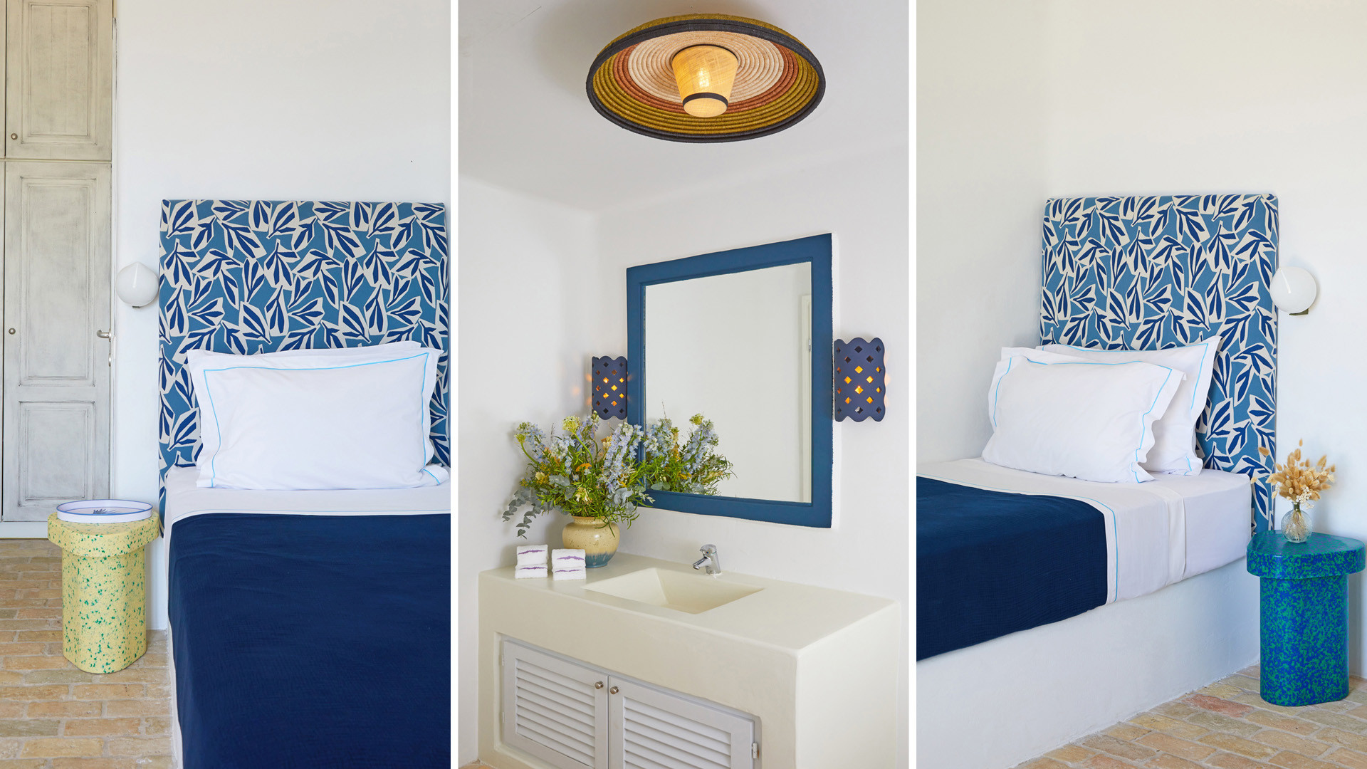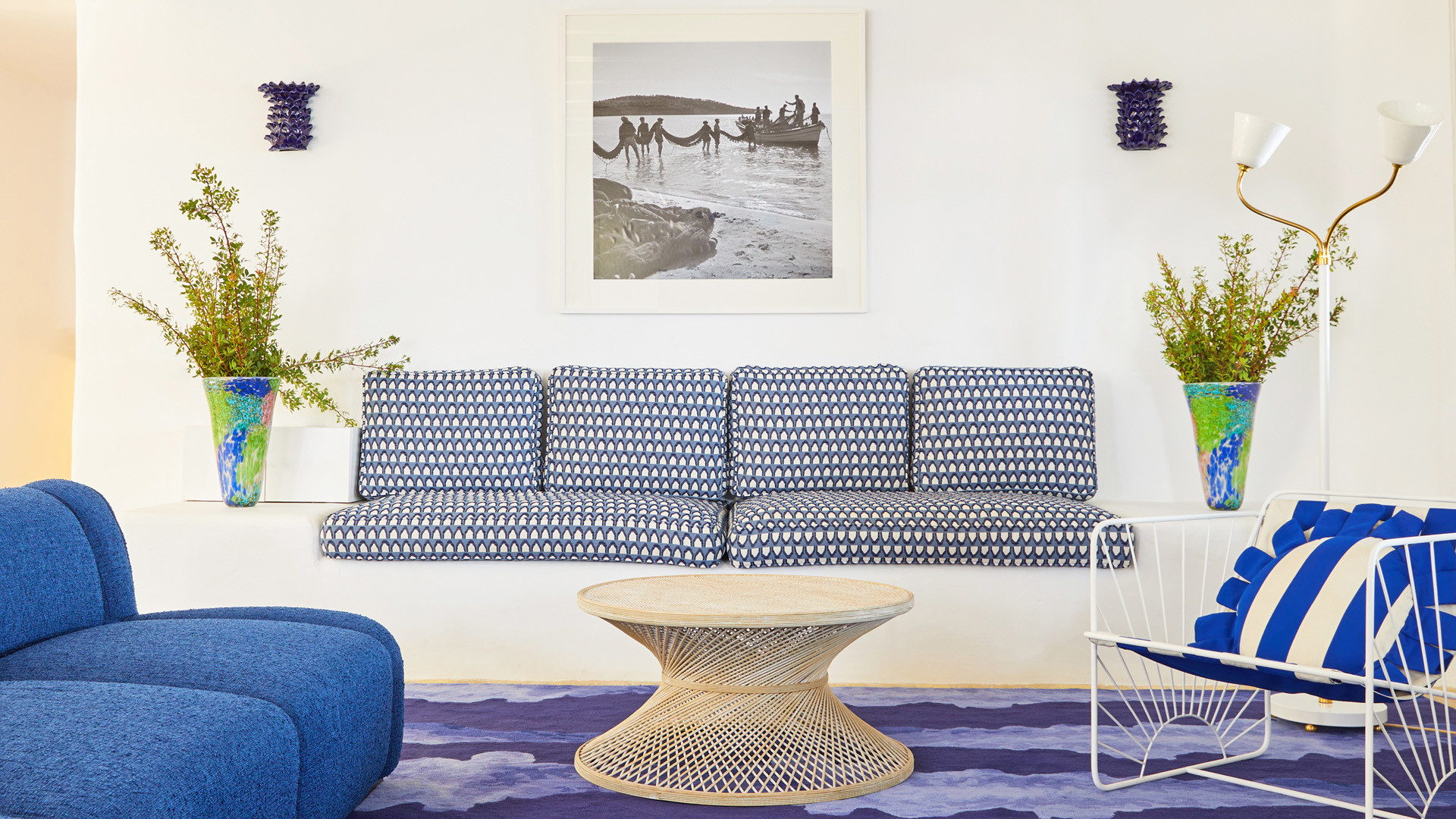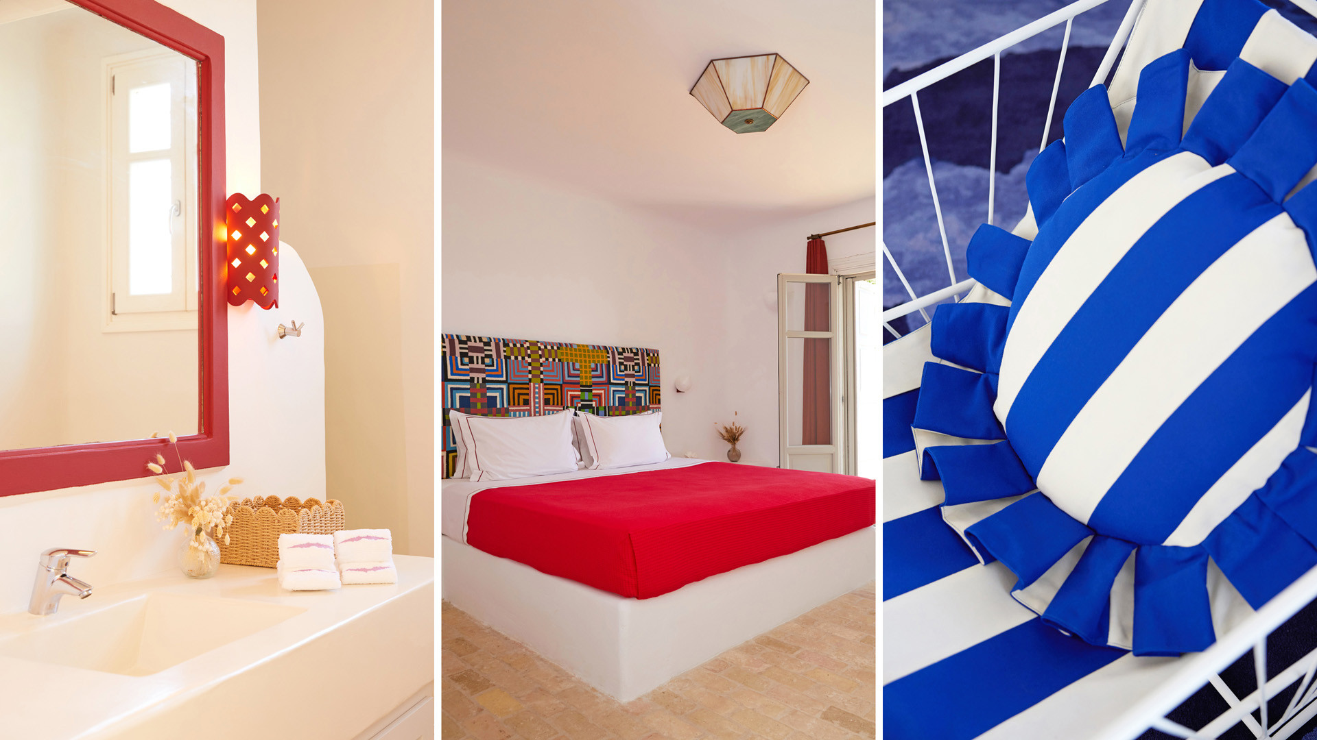 L’ingresso conduce direttamente ad un ampio spazio aperto che incorpora salotto, sala da pranzo e cucina completamente equipaggiata, è questo il punto focale dell’abitazione, che risulta subito particolarmente accogliente, da cui si raggiungono facilmente le camere da letto e l’ampia terrazza esterna; l’atmosfera è informale e vivace con uno stile che in qualche modo ricorda i Caraibi e i suoi colori sgargianti. Questo livello ospita la camera padronale ed una seconda camera degli ospiti che condividono un balcone vista mare, mentre le ulteriori tre sistemazioni si trovano sul piano inferiore, due delle quali con accesso diretto verso l’esterno che ospita l’attraente piscina dai riflessi smeraldo.