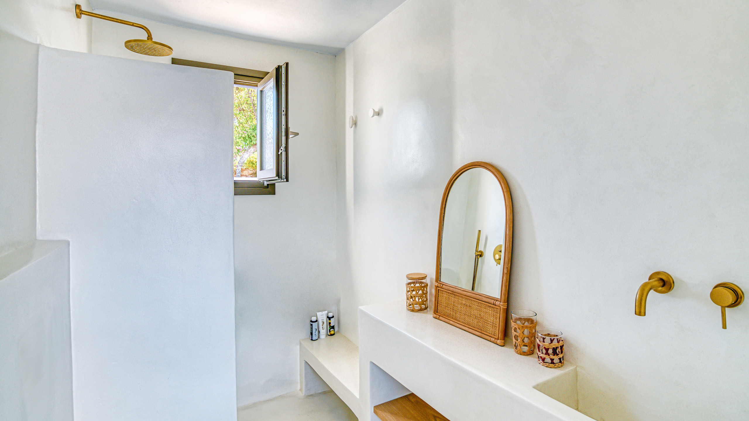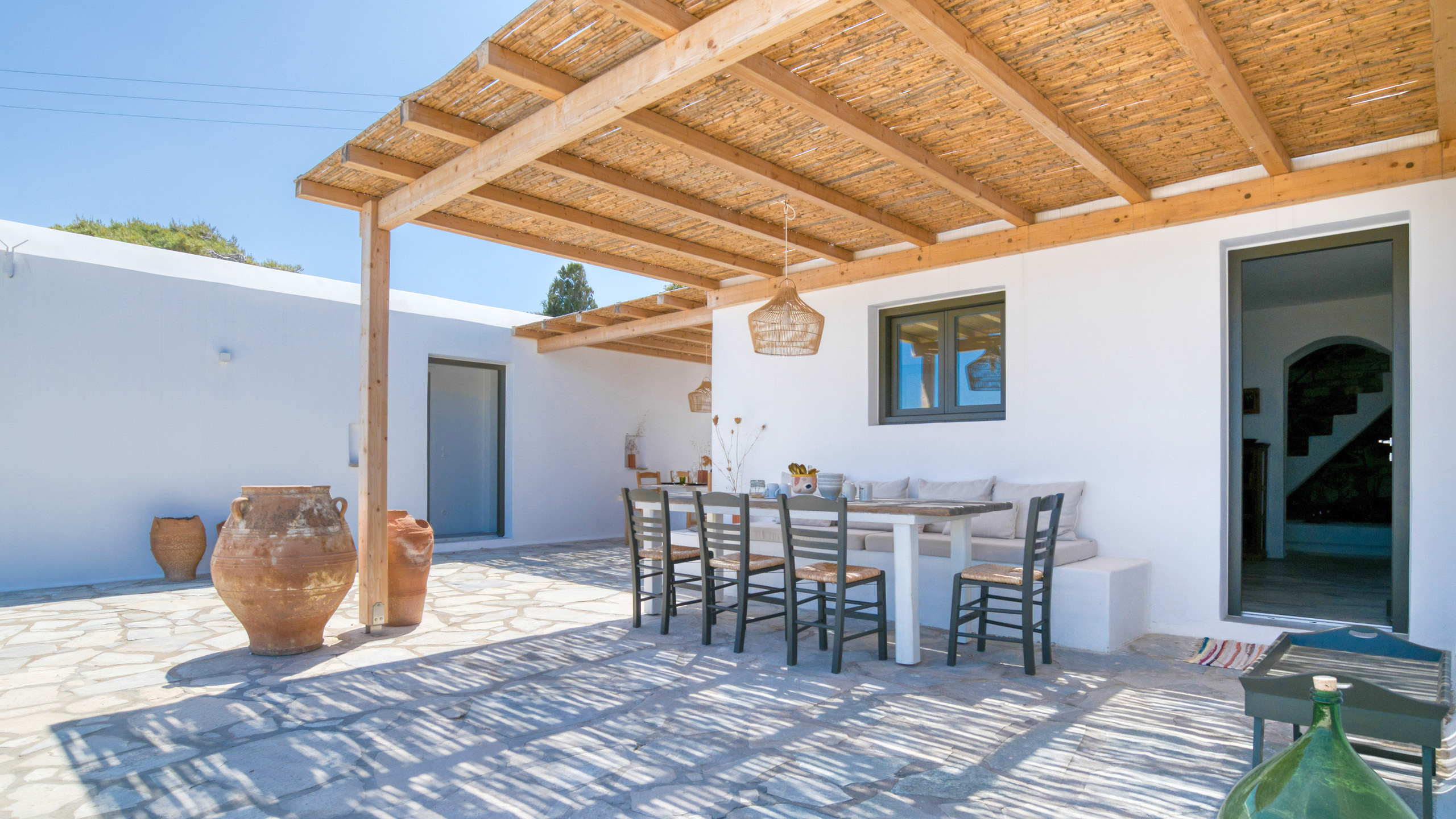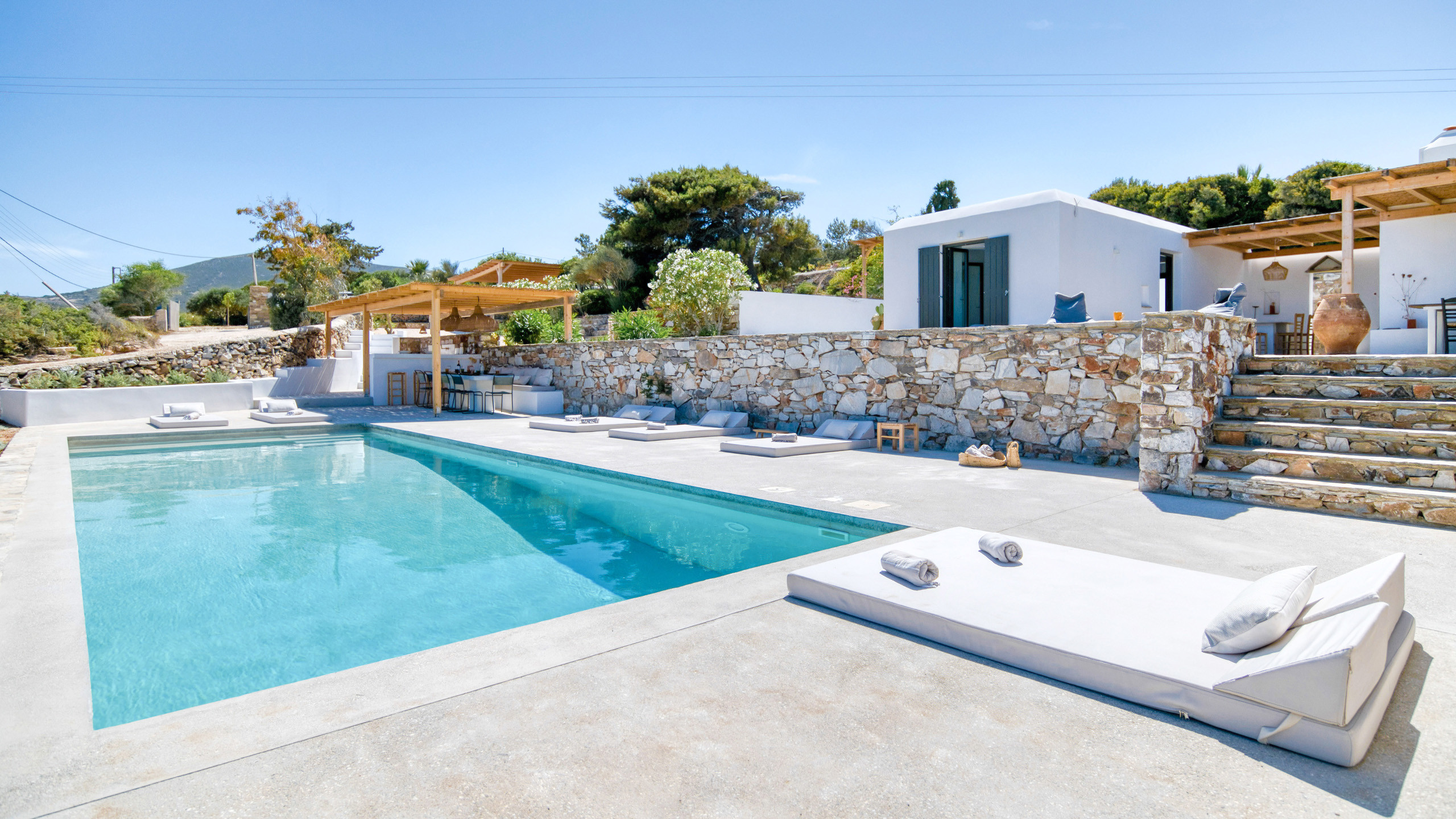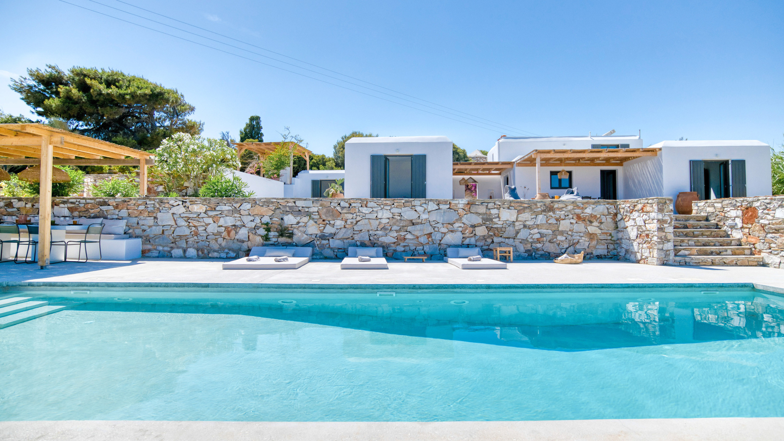 La proprietà ha un carattere tradizionale, con un edificio principale e due guest house, e risulta particolarmente piacevole all'esterno, con un'attraente piscina che domina la scena e una godibile area pranzo alle sue spalle, perfettamente ombreggiata da un pergolato e dotata anche di un funzionale angolo bar. Su un livello più alto, subito fuori dall'abitazione, traino spazio altri due angoli attrezzati con tavoli e sedie in alternativa alla zona pranzo principale, sempre con la vista sulla campagna e sul mare in lontananza a fare compagnia agli ospiti.