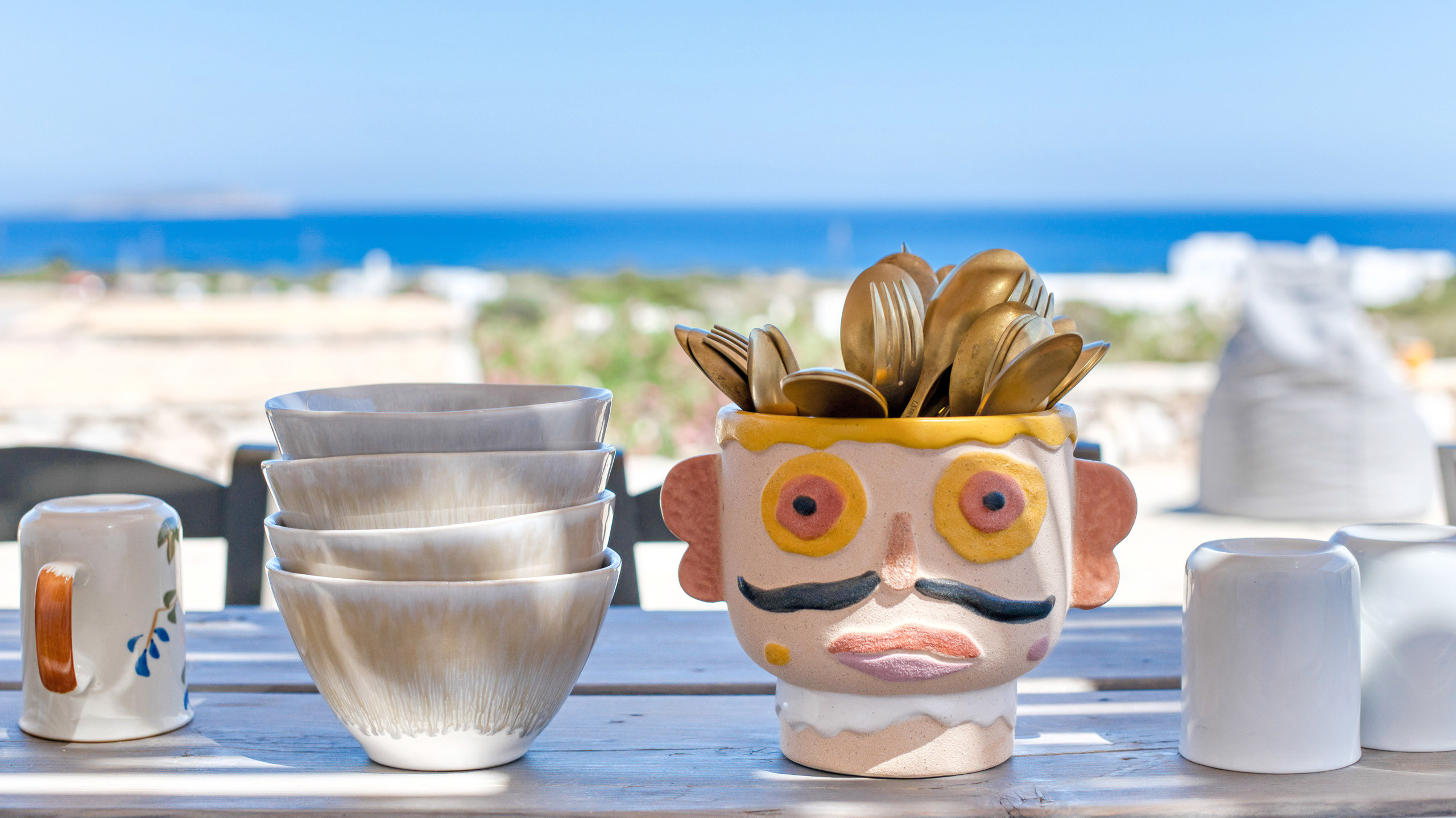Antiparos è un'isola in un certo senso selvaggia, con solo un paio di spiagge attrezzate, e Kiwi ha il grande privilegio di essere posizionata proprio sopra una di queste, Soros dista infatti solo circa 500 metri, comodamente raggiungibile con una piacevole passeggiata.