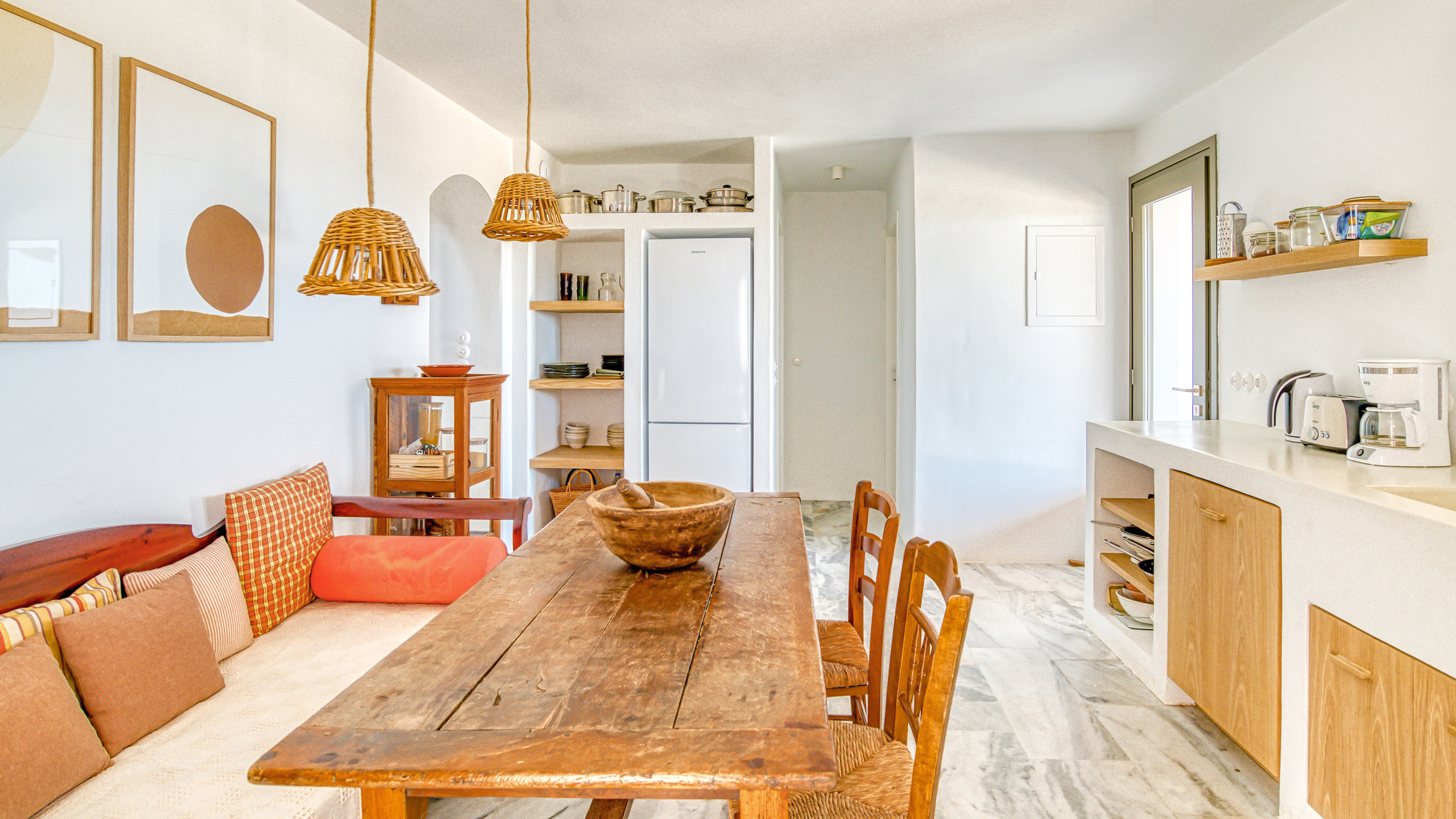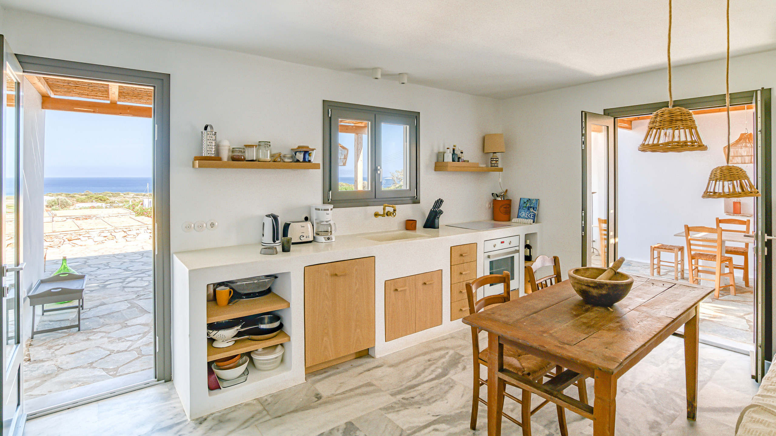 Gli interni di Kiwi sono semplici e funzionali, con un arredamento lineare che bilancia elementi di arredo dal carattere autentico ad accorgimenti tipici di un'abitazione moderna. Le camere si dividono in tre distinte aree, una nel corpo principale con cucina e salotto e le altre equamente suddivise tra due guest house, configurazione perfetta per 2 famiglie o comunque ospiti desiderosi di un pizzico di privacy in più.