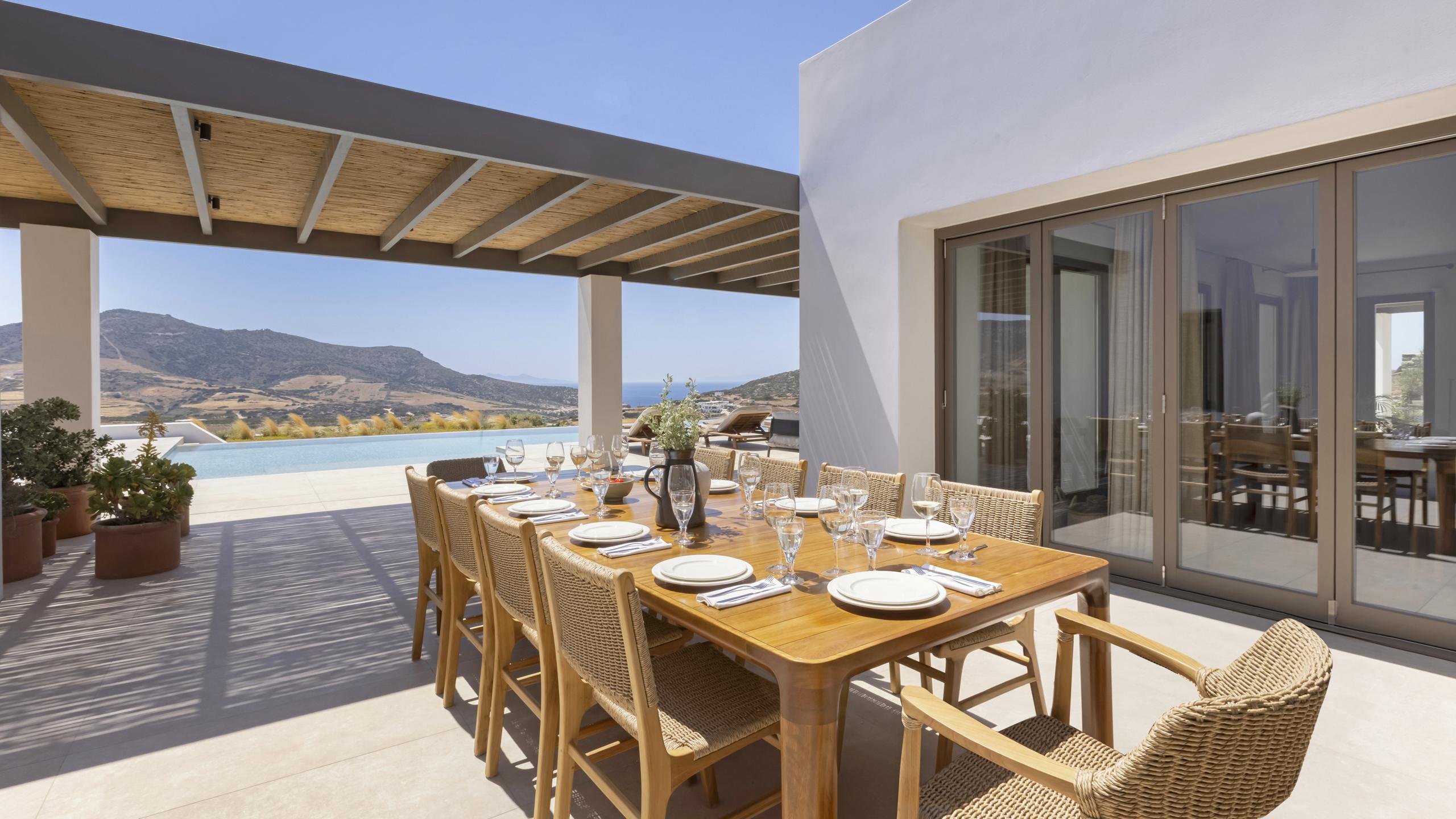 Il magnifico paesaggio naturale pressoché incontaminato della zona di Kampos è lo scenario perfetto in cui si inserisce la magnifica Elements, una proprietà di indiscusso livello, realizzata con gli standard qualitativi più alti per il massimo comfort dei fortunati ospiti. Da questa posizione si gode di una privacy assoluta e una vista panoramica, con la possibilità di raggiungere facilmente la spiaggia di Livadia e uno dei più affascinanti ristoranti dell'isola proprio sopra di essa.