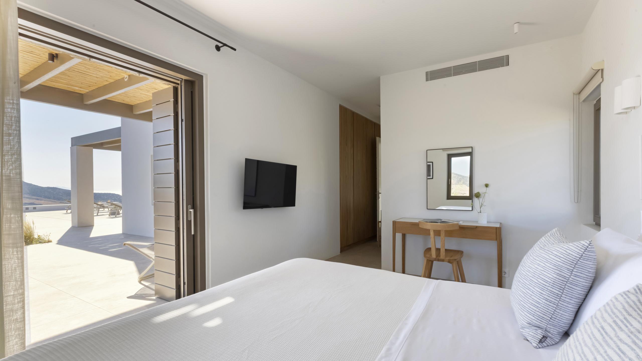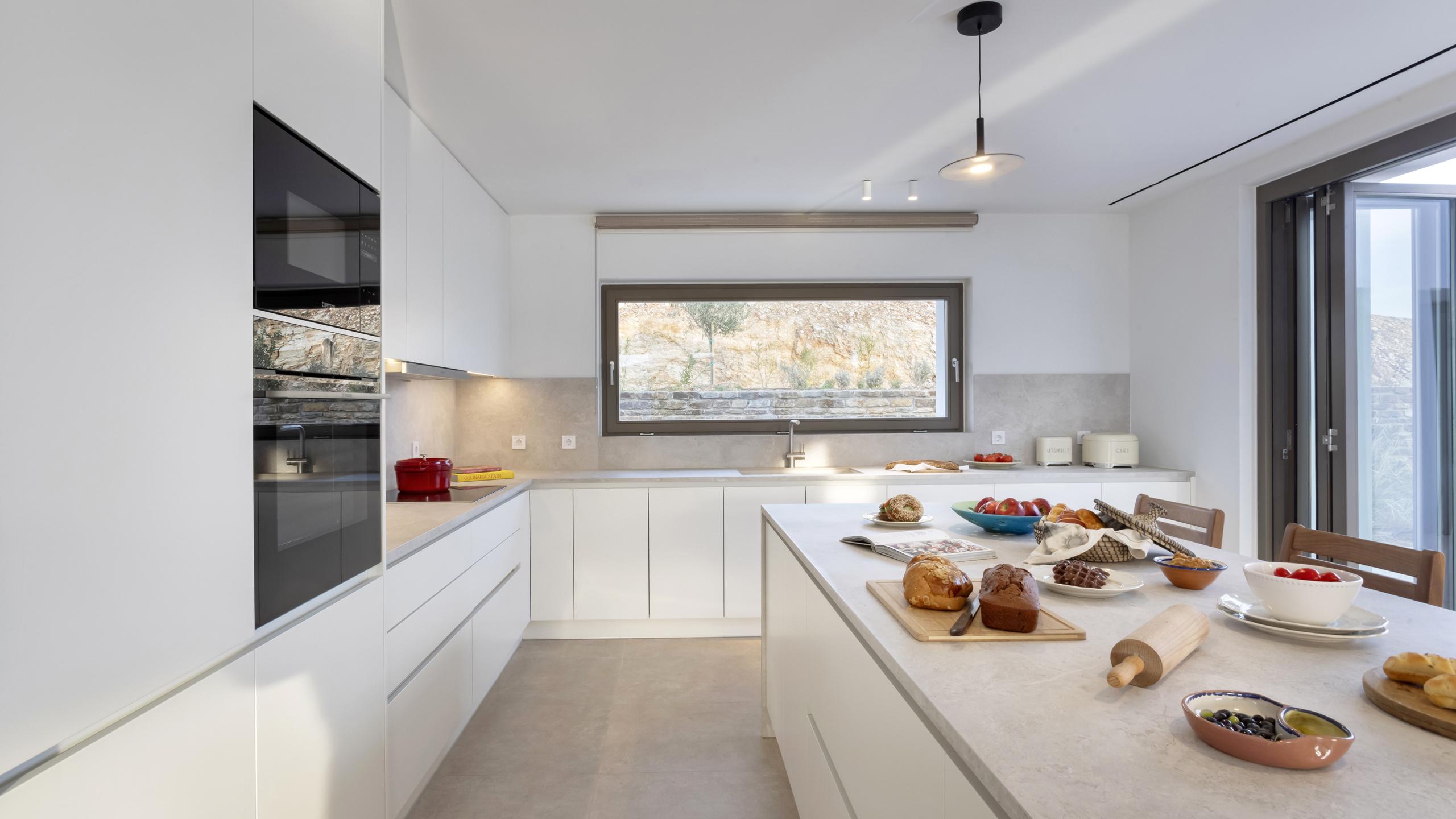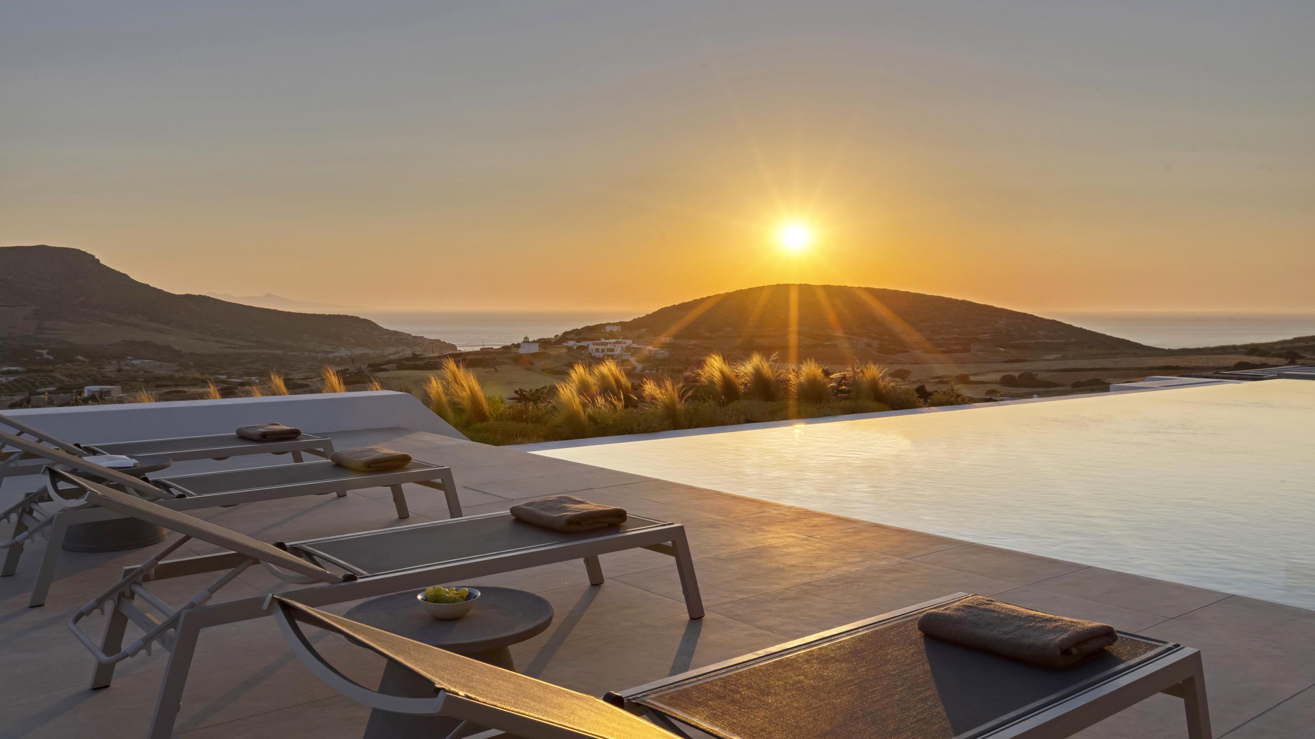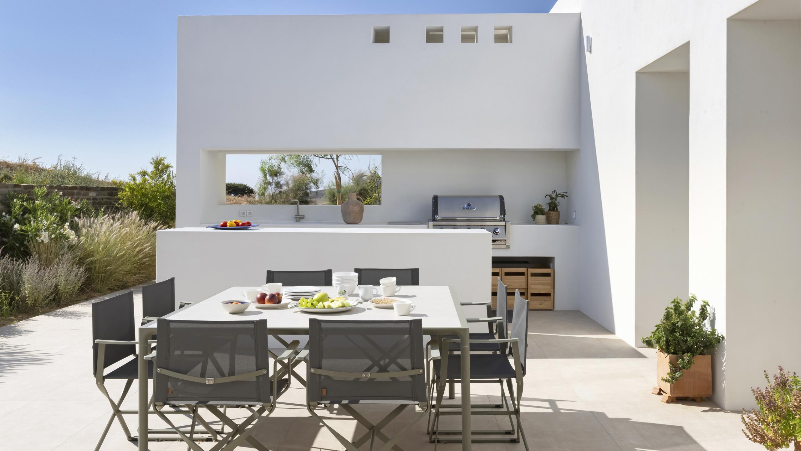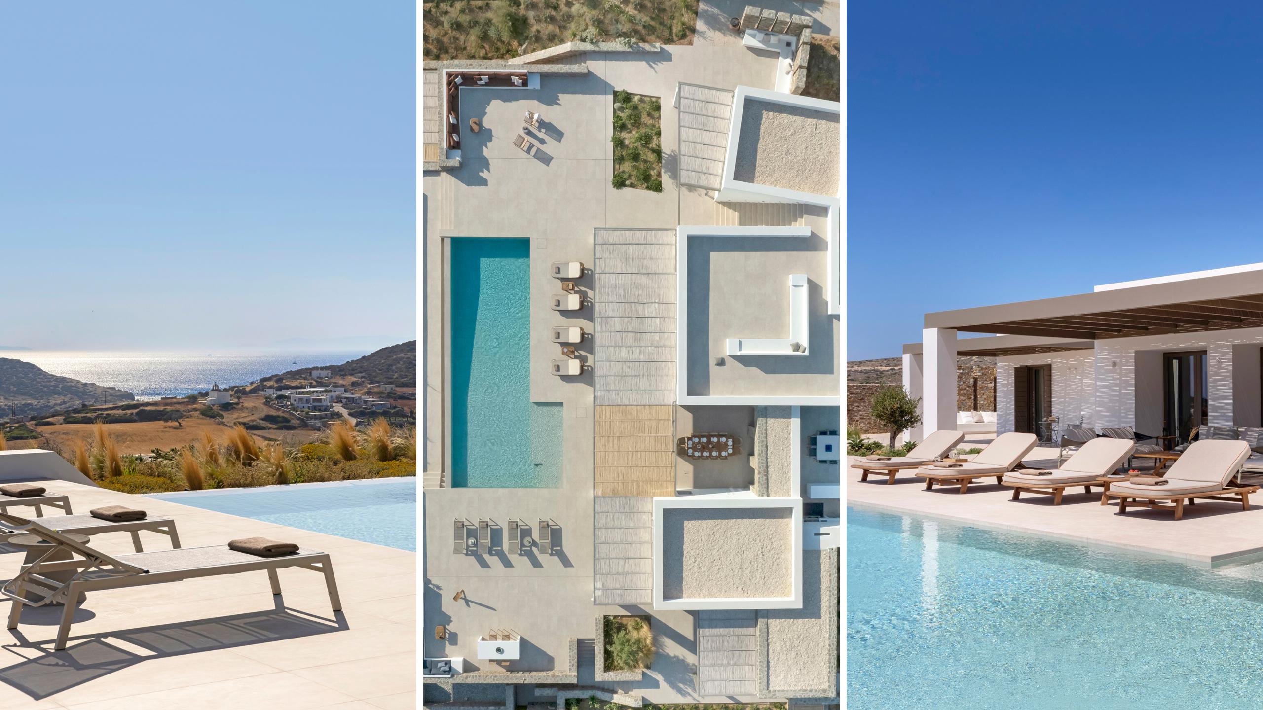 L'architettura dell'edificio è quella Cicladica moderna, con rispetto della tradizione chiaramente rivisitata in modo contemporaneo, con particolare attenzione all'utilizzo dei materiali della migliore qualità e alle dotazioni tecnologiche più moderne. La grande piscina infinity ruba senza dubbio la scena, posizionata sulla terrazza principale dove potersi gustare nel migliore dei modi un magnifico tramonto facendo il bagno.