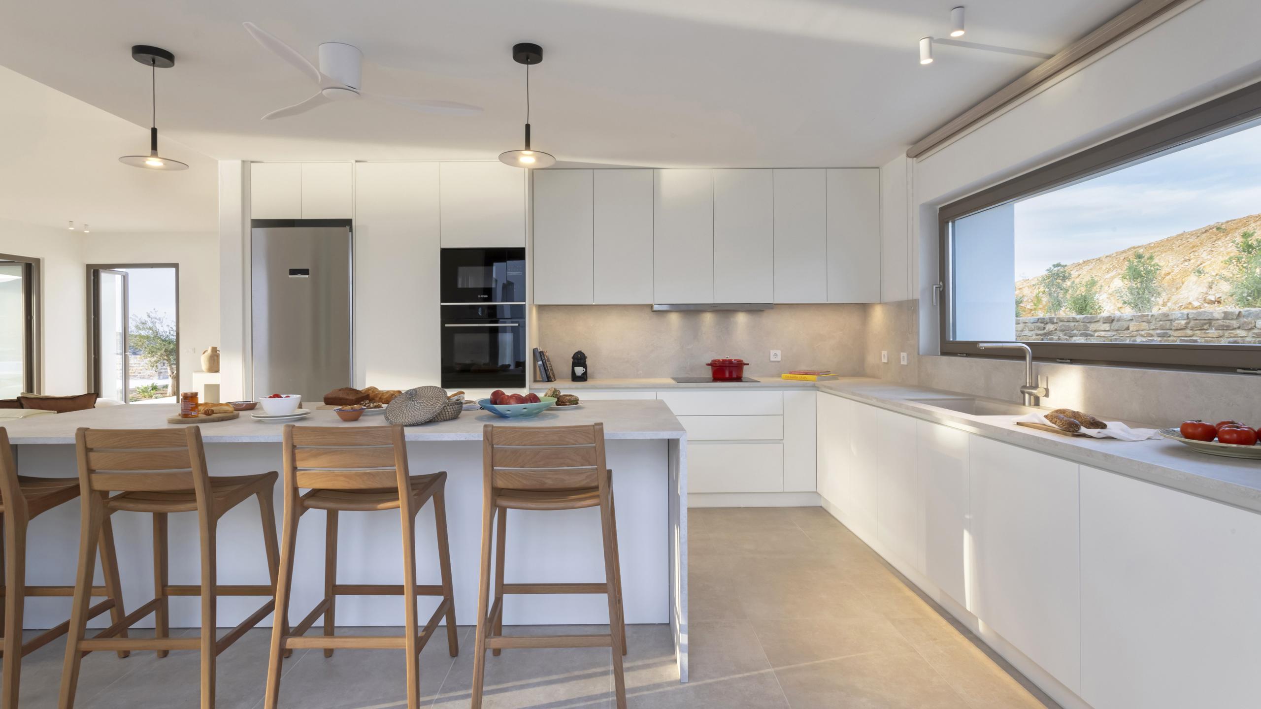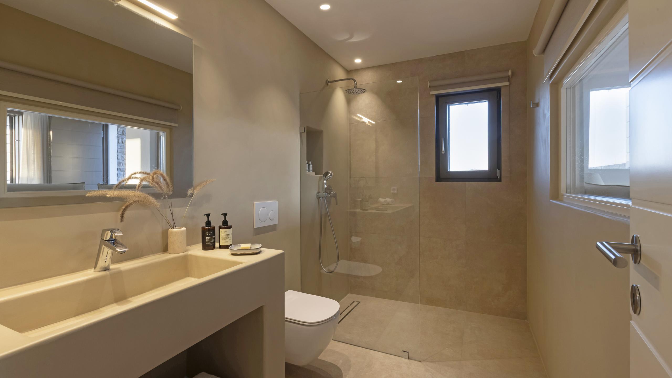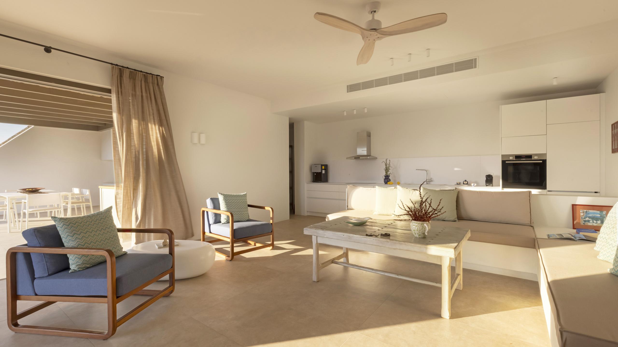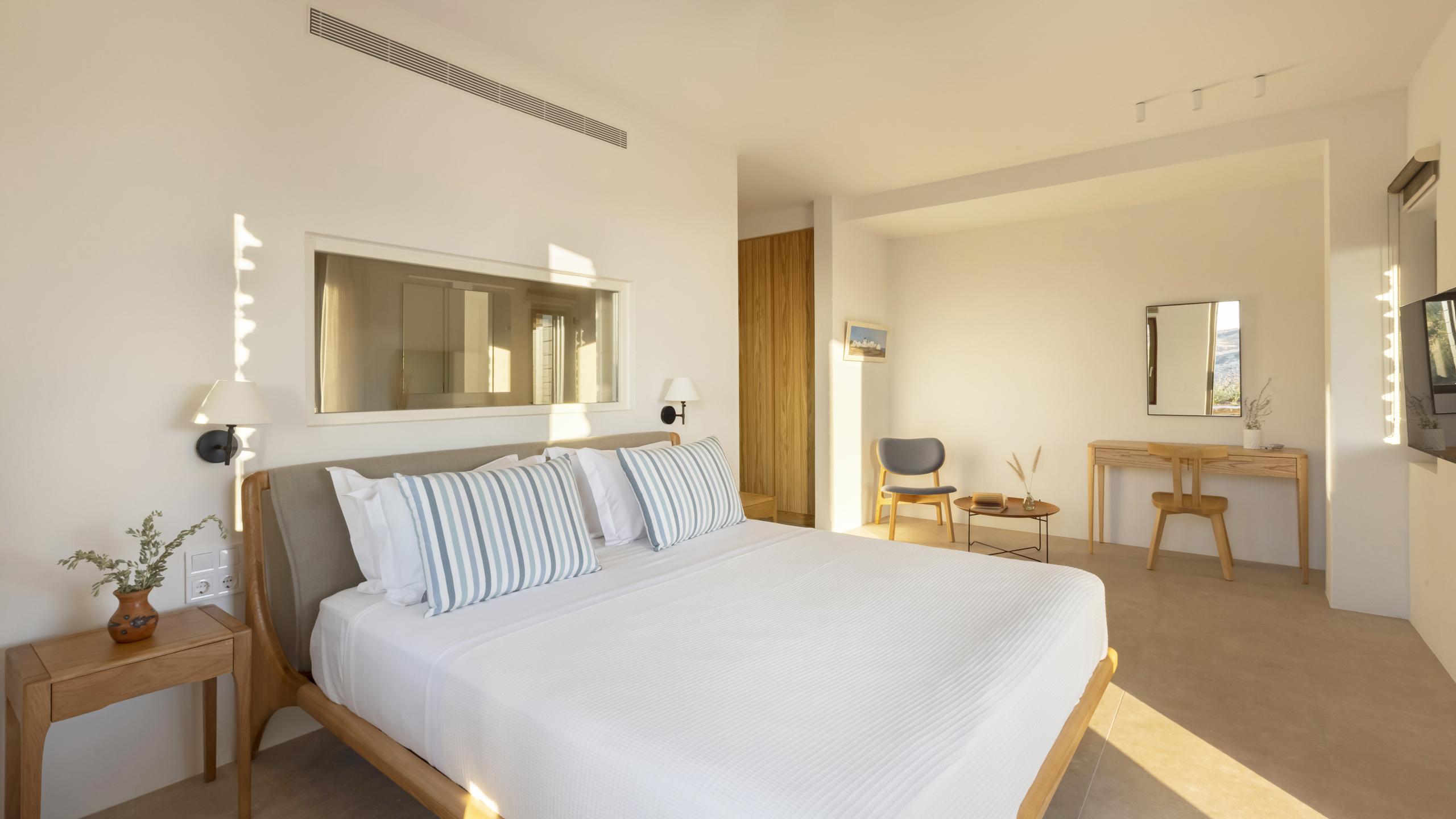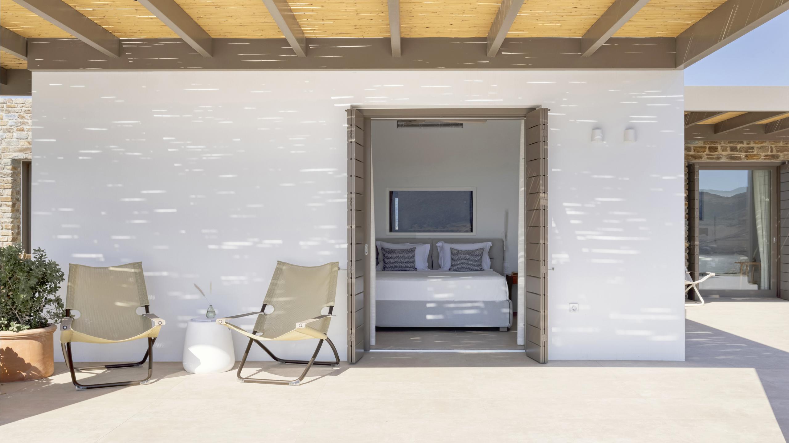 L'architettura dell'edificio è quella Cicladica moderna, con rispetto della tradizione chiaramente rivisitata in modo contemporaneo, con particolare attenzione all'utilizzo dei materiali della migliore qualità e alle dotazioni tecnologiche più moderne. La grande piscina infinity ruba senza dubbio la scena, posizionata sulla terrazza principale dove potersi gustare nel migliore dei modi un magnifico tramonto facendo il bagno.