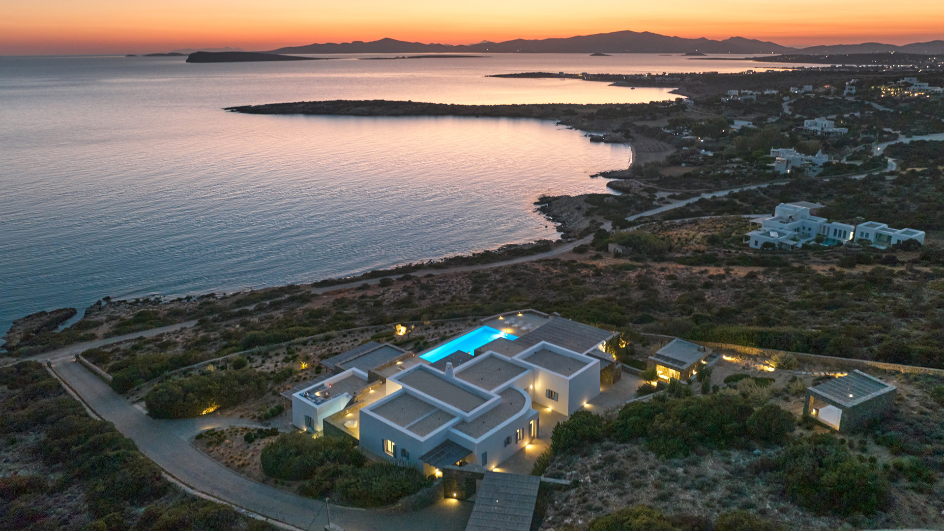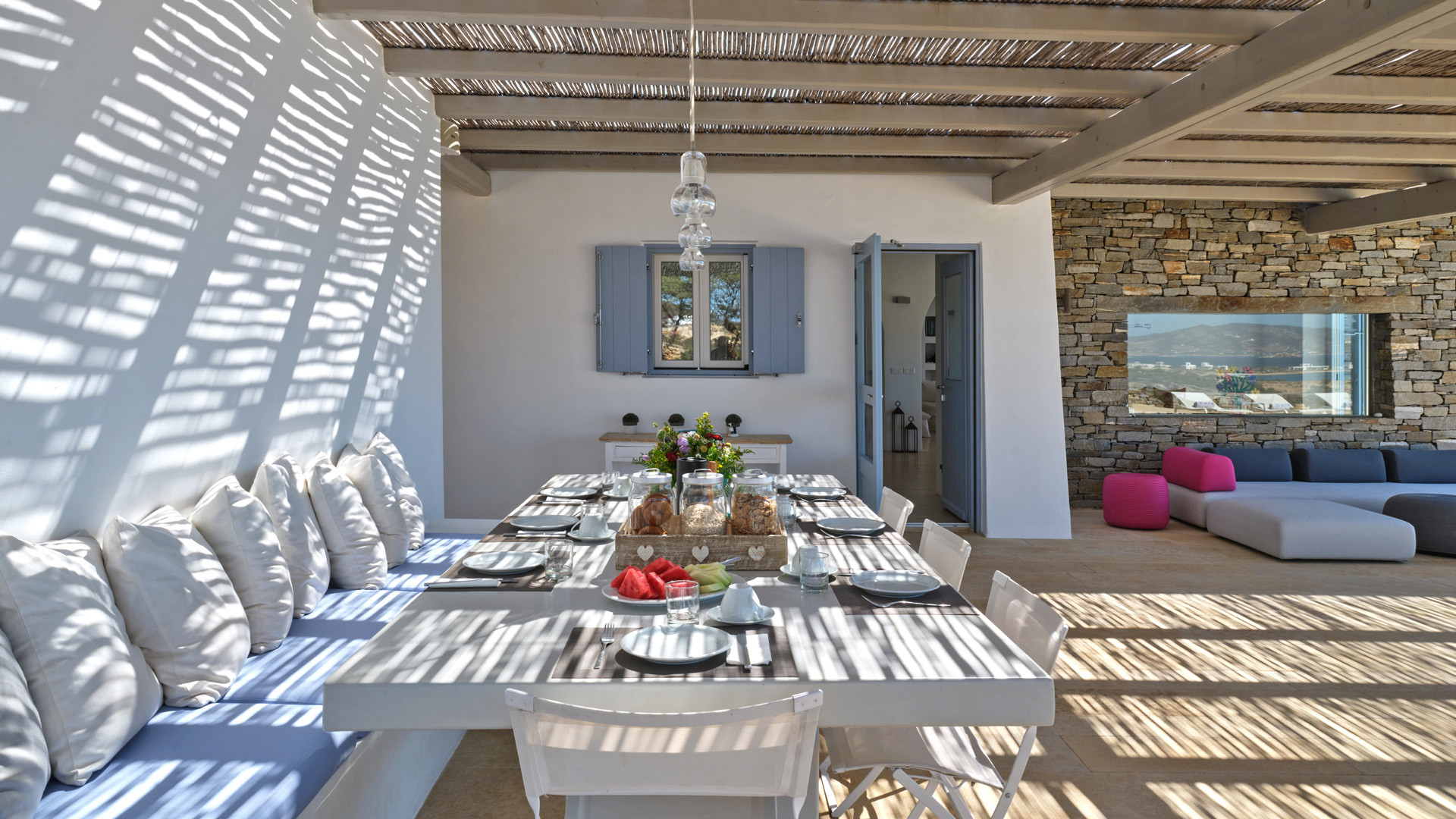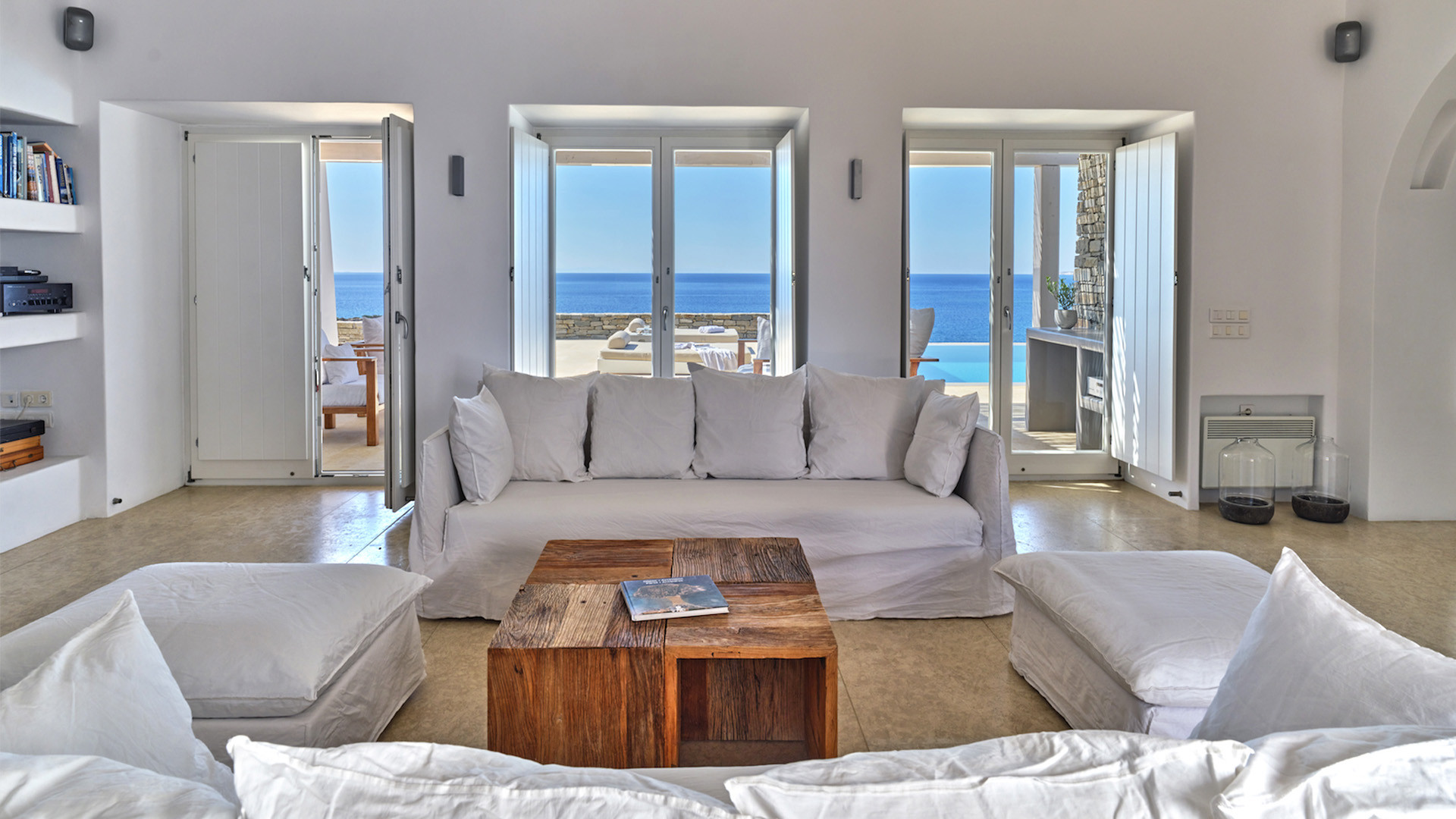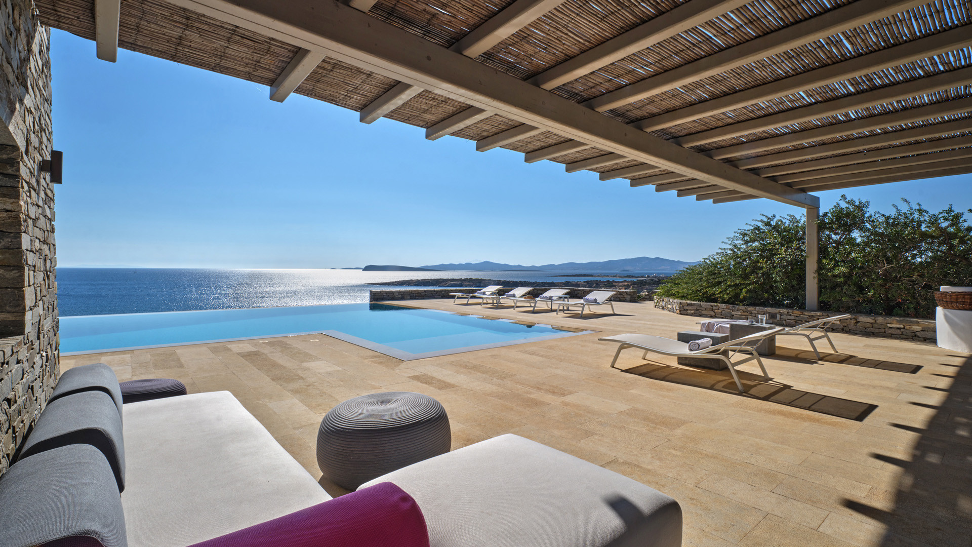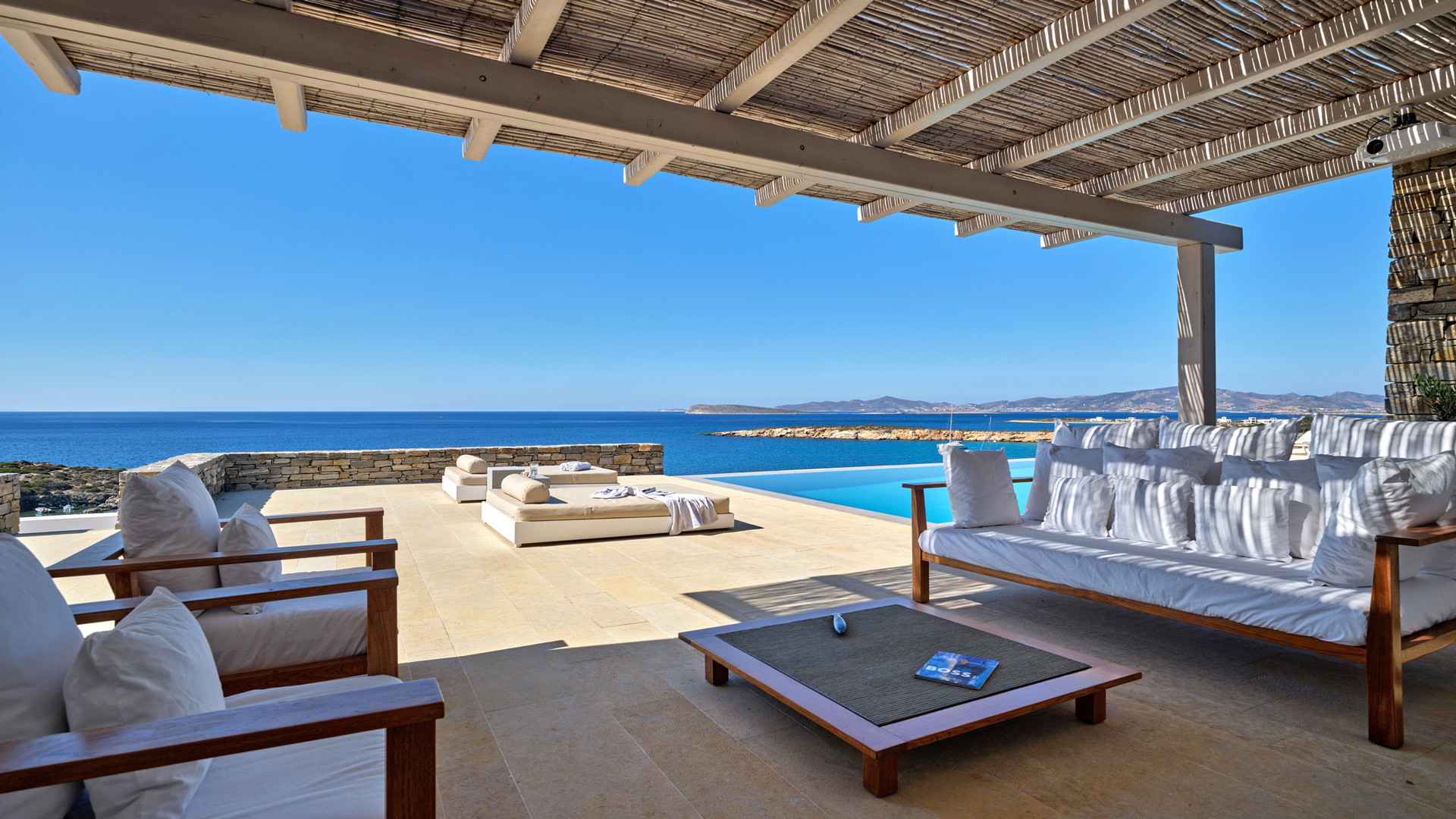 Grandi spazi, architettura Cicladica tradizionale e interni dal forte carattere minimalista si combinano perfettamente in un ambiente fresco e arioso, garantendo un ottimo grado di comfort ai fortunati ospiti sia internamente che esternamente, dalla spaziosa terrazza esterna che ospita la grande piscina infinity e una moltitudine di intriganti aree relax, ai voluminosi ambienti interni come salotto, sala da pranzo e camere da letto.