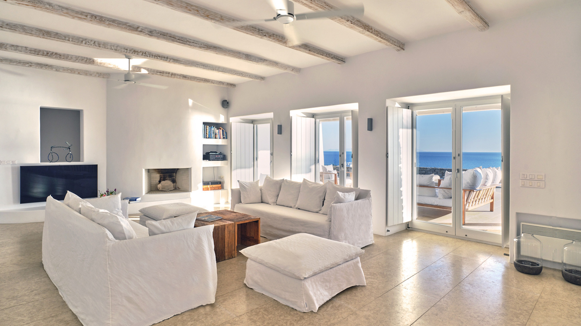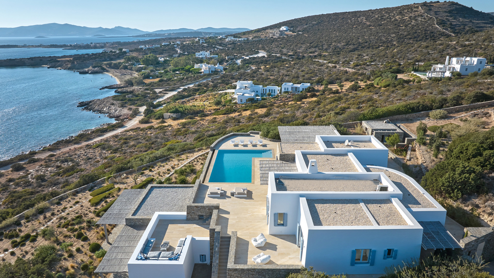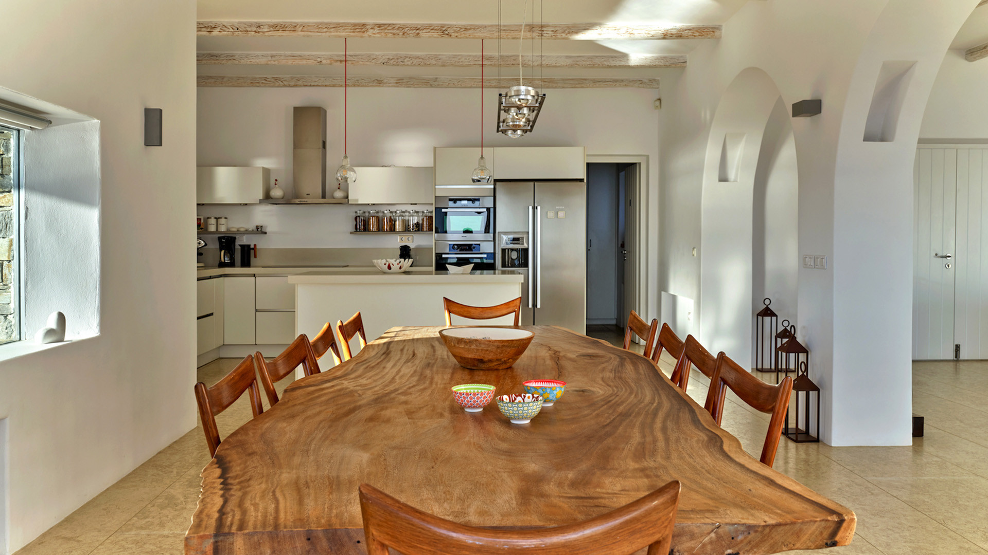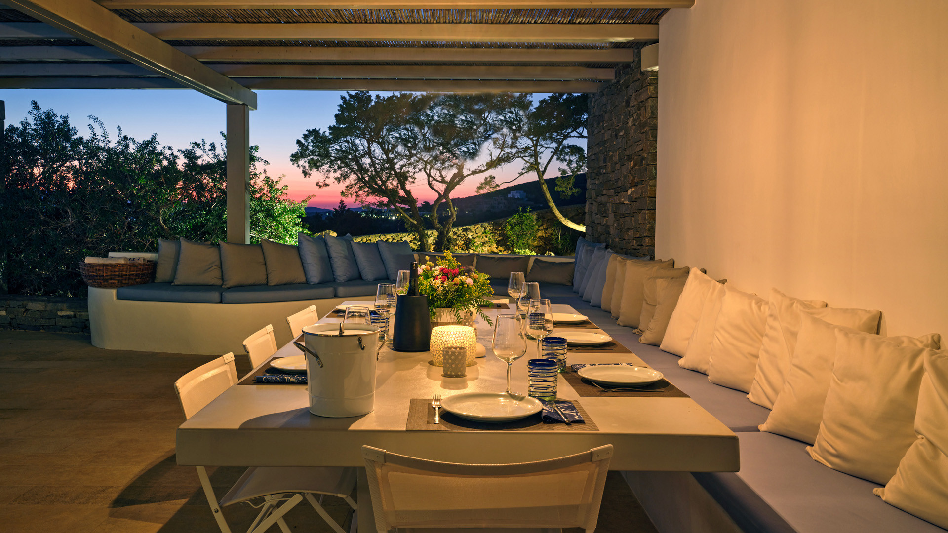 Grandi spazi, architettura Cicladica tradizionale e interni dal forte carattere minimalista si combinano perfettamente in un ambiente fresco e arioso, garantendo un ottimo grado di comfort ai fortunati ospiti sia internamente che esternamente, dalla spaziosa terrazza esterna che ospita la grande piscina infinity e una moltitudine di intriganti aree relax, ai voluminosi ambienti interni come salotto, sala da pranzo e camere da letto.