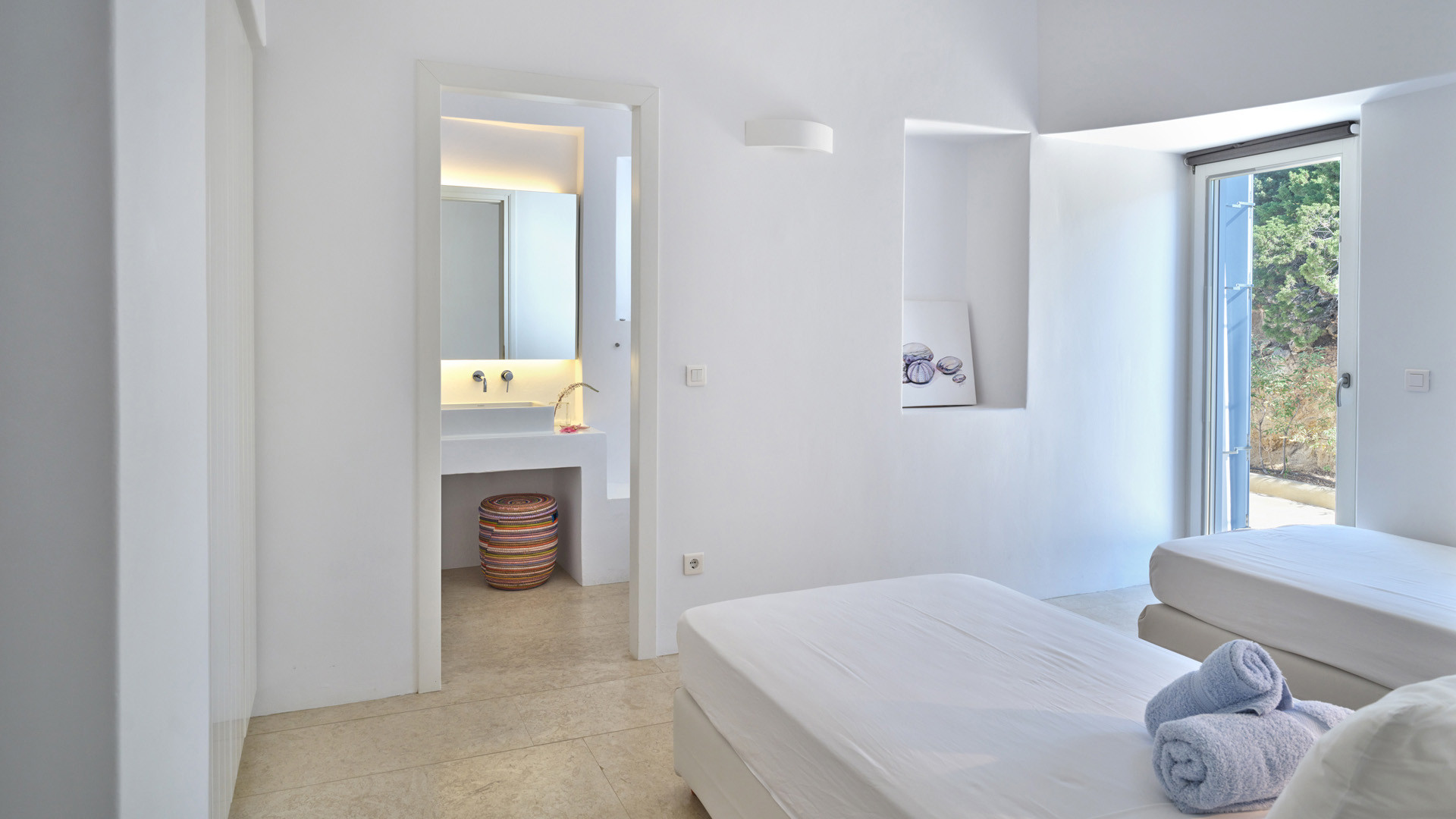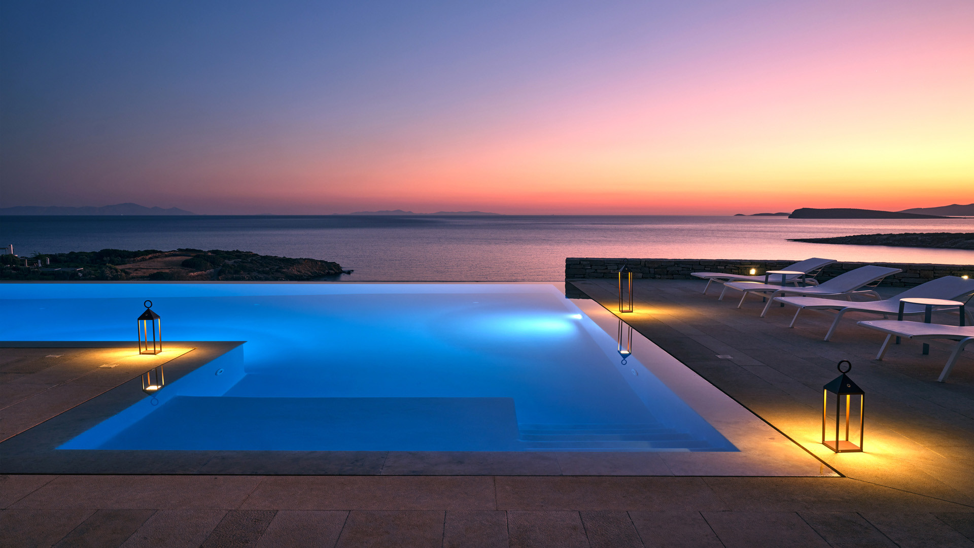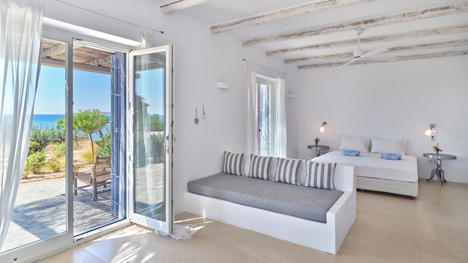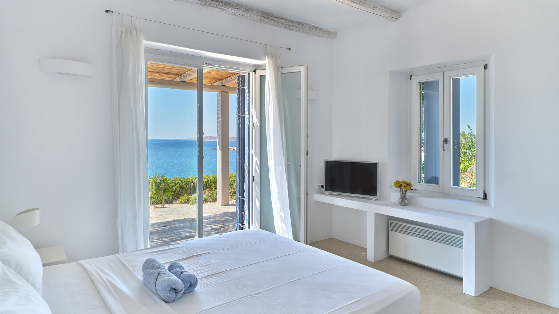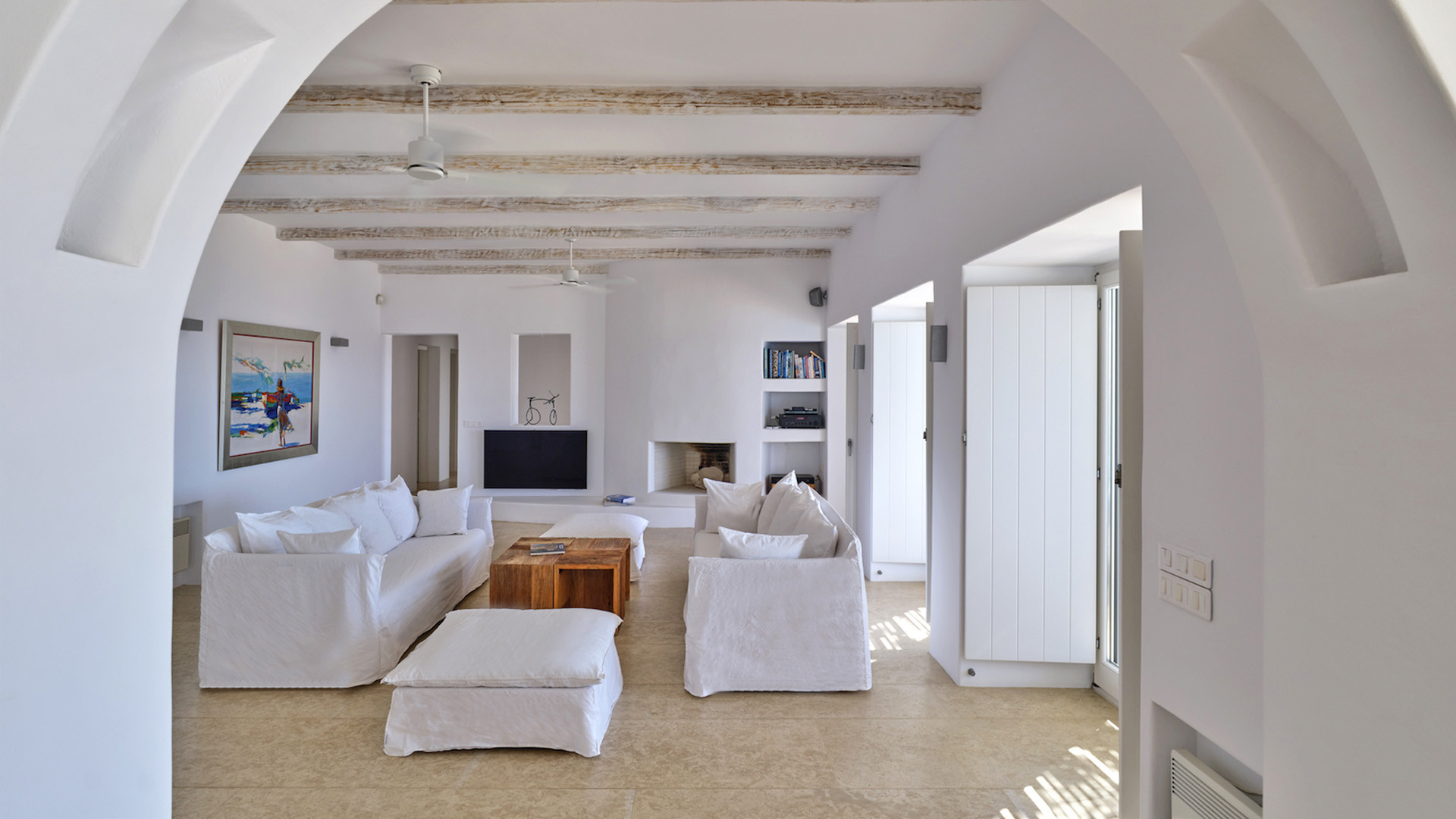 Grandi spazi, architettura Cicladica tradizionale e interni dal forte carattere minimalista si combinano perfettamente in un ambiente fresco e arioso, garantendo un ottimo grado di comfort ai fortunati ospiti sia internamente che esternamente, dalla spaziosa terrazza esterna che ospita la grande piscina infinity e una moltitudine di intriganti aree relax, ai voluminosi ambienti interni come salotto, sala da pranzo e camere da letto.