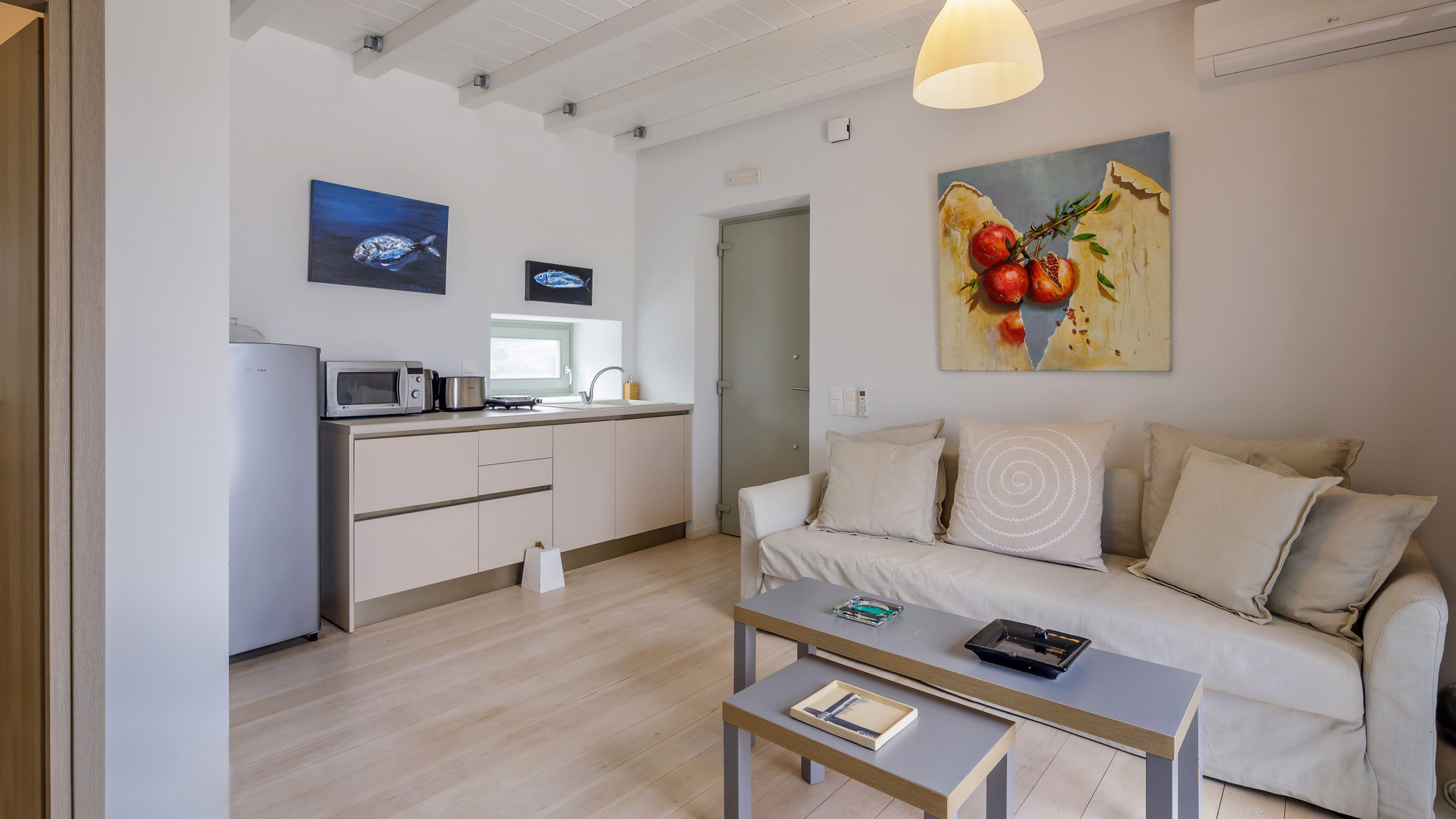 8 Ospiti1 Camera Padronale matrimoniale, A/C, bagno interno con doccia, salottino con piccola cucina, accesso indipendente dall'esterno, veranda privata con vista mare