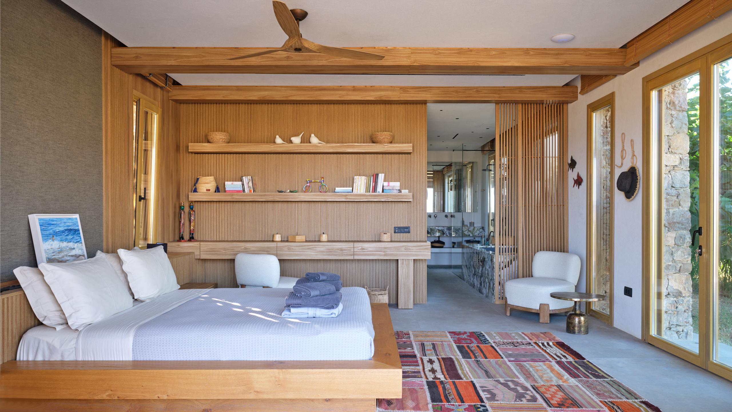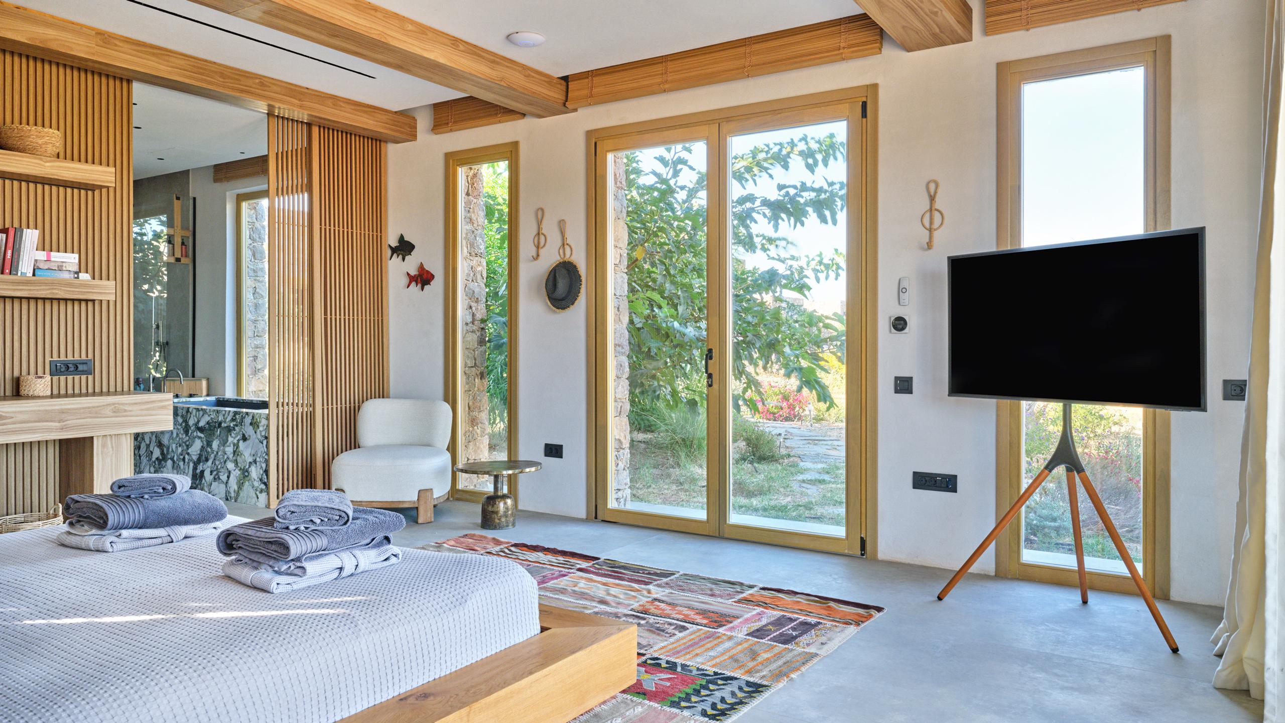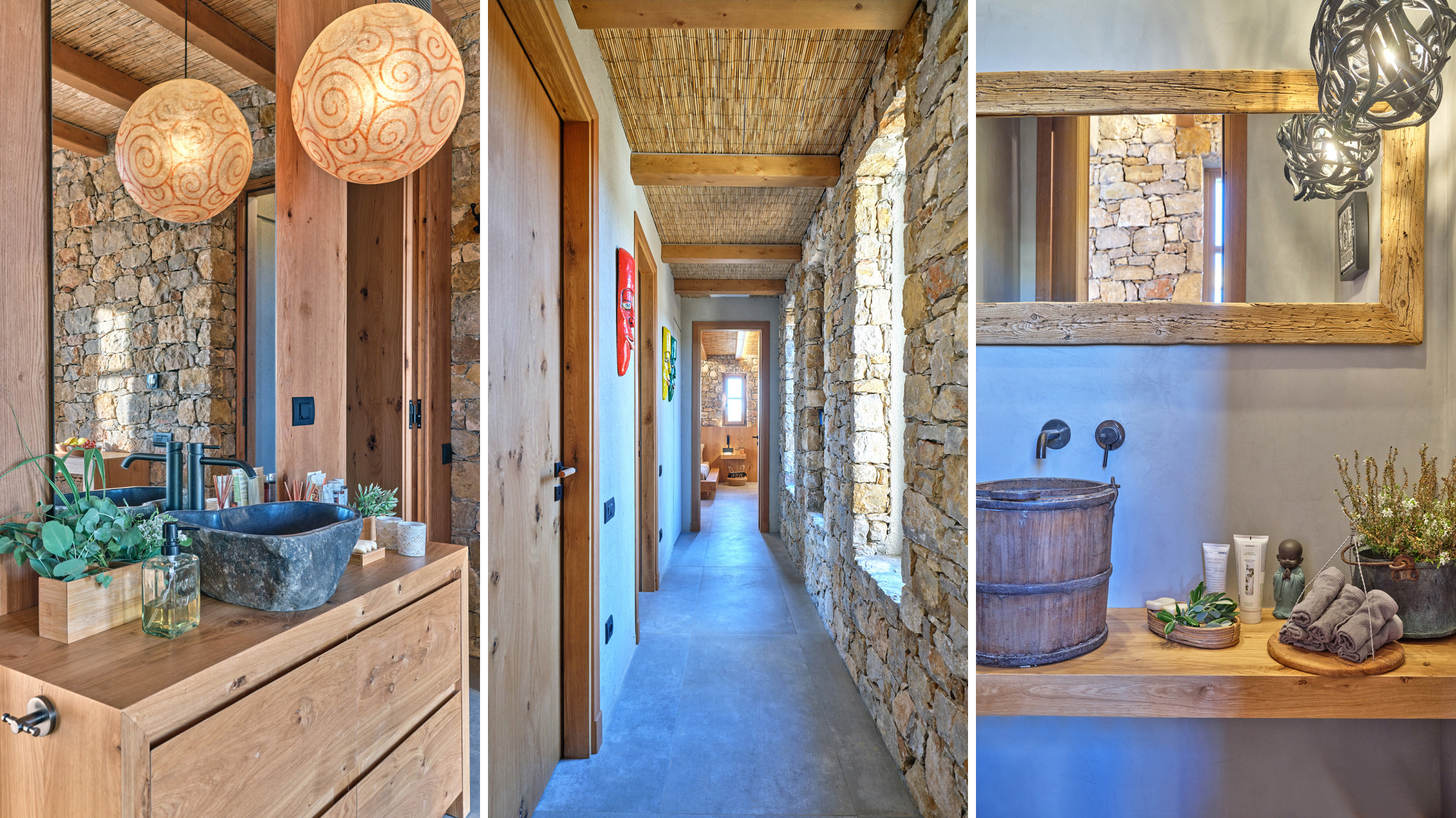 Gli interni dell'abitazione sono caldi, accoglienti e ricchi di dettagli, ancora una volta i materiali sono della migliore qualità, con tutte le dotazioni più moderne a disposizione degli ospiti e insoliti accorgimenti ed elementi di arredo che personalizzano ogni ambiente.