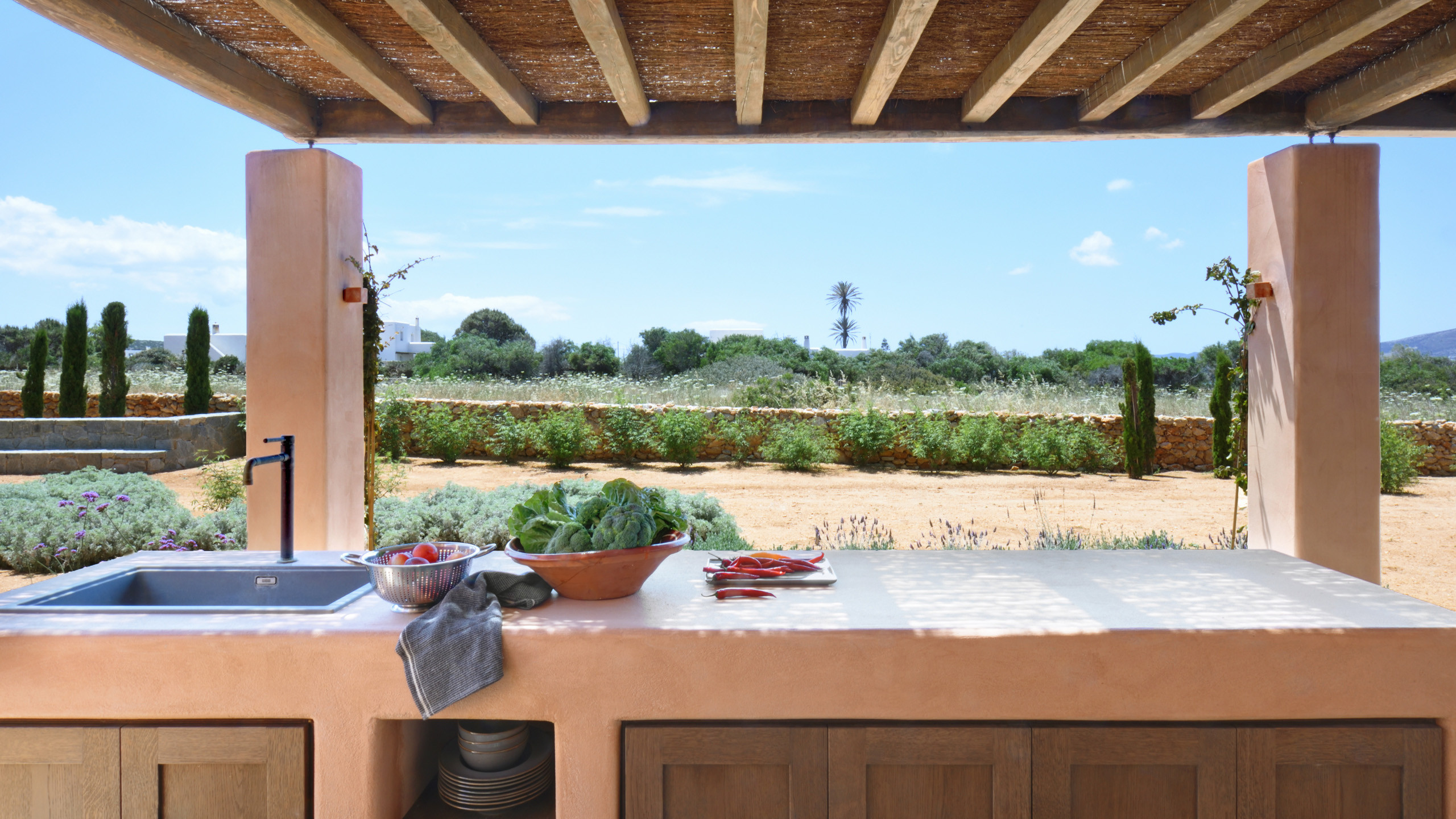 La proprietà è caratterizzato da uno stile insolito per le Cicaldi, con gli edifici realizzati in calde tinte pastello che si inseriscono piacevolmente nel giardino circostante. La piscina si sviluppa in senso parallelo rispetto alla costa, fiancheggiata da una godibile zona relax sotto una pergola e dalla zona pranzo sapientemente posizionata nei pressi della cucina per ottimizzare il lavoro dei cuochi.