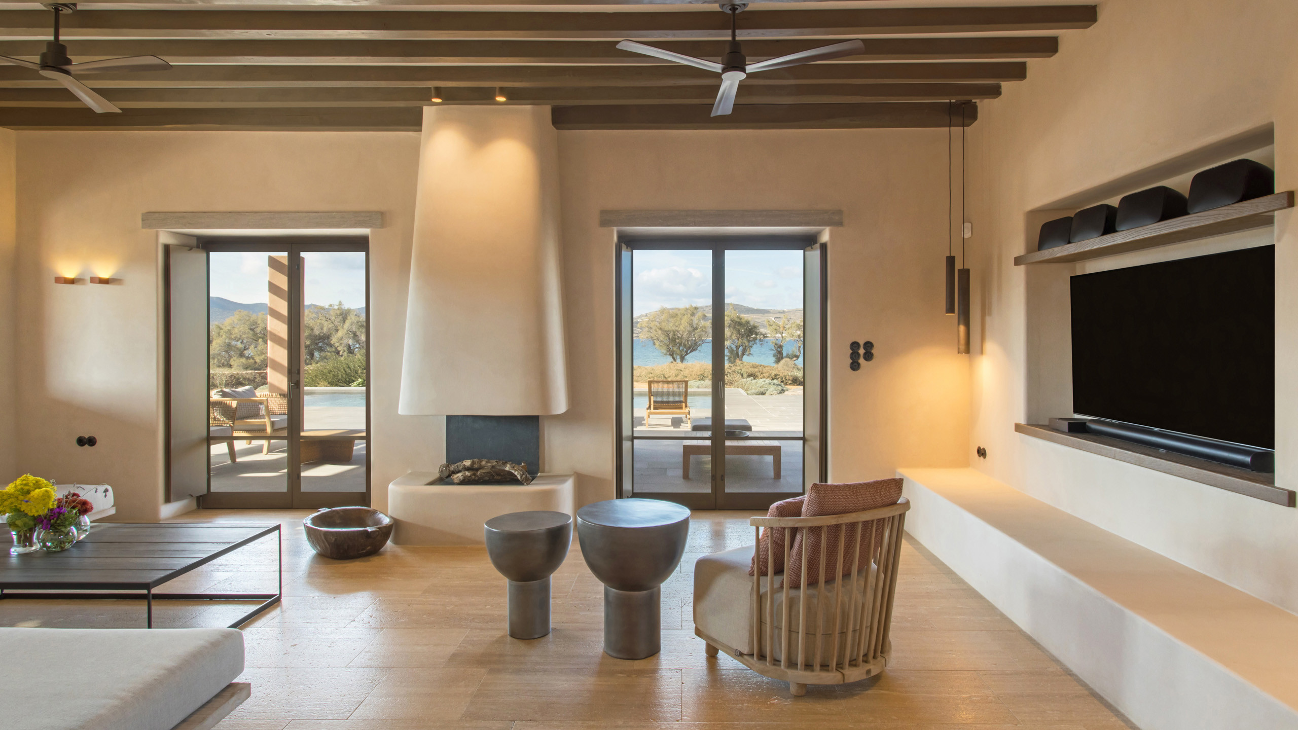 Per gruppi particolarmente numerosi la possibilità di essere affittata interamente insieme a Dumaresq North fanno di questa proprietà una soluzione unica nel suo genre nel panorama delle ville private di Paros.