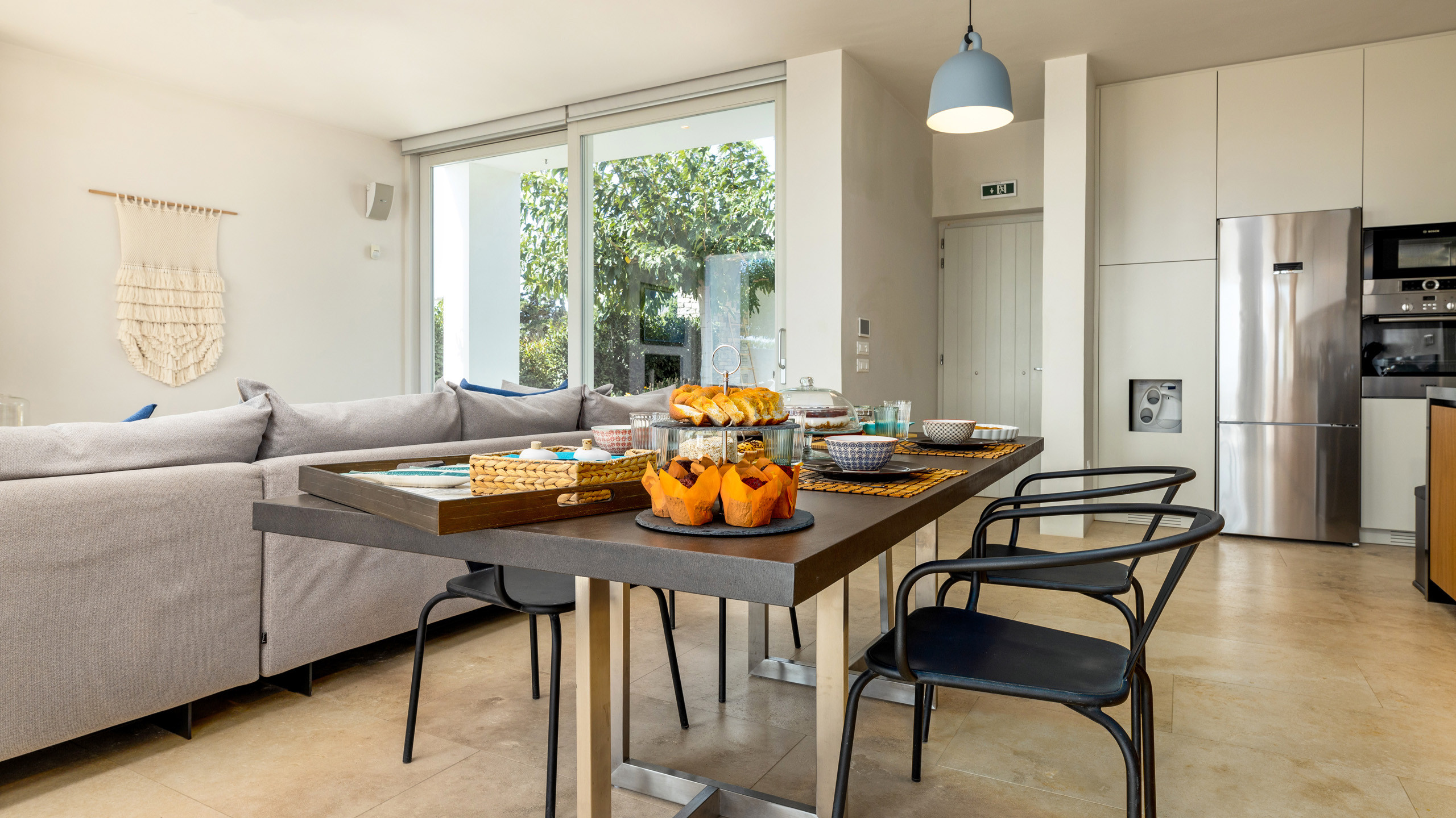 Un piacevole giardino tipicamente Mediterraneo si estende sul retro dove sono posizionate le camere degli ospiti. Approccio minimalista e dotazioni moderne sono due degli aspetti che distinguono gli interni di Marina Two, sia negli eleganti ambienti comuni sia nelle confortevoli camere da letto, tre delle quali vantano un accesso separato per la maggior privacy degli ospiti.