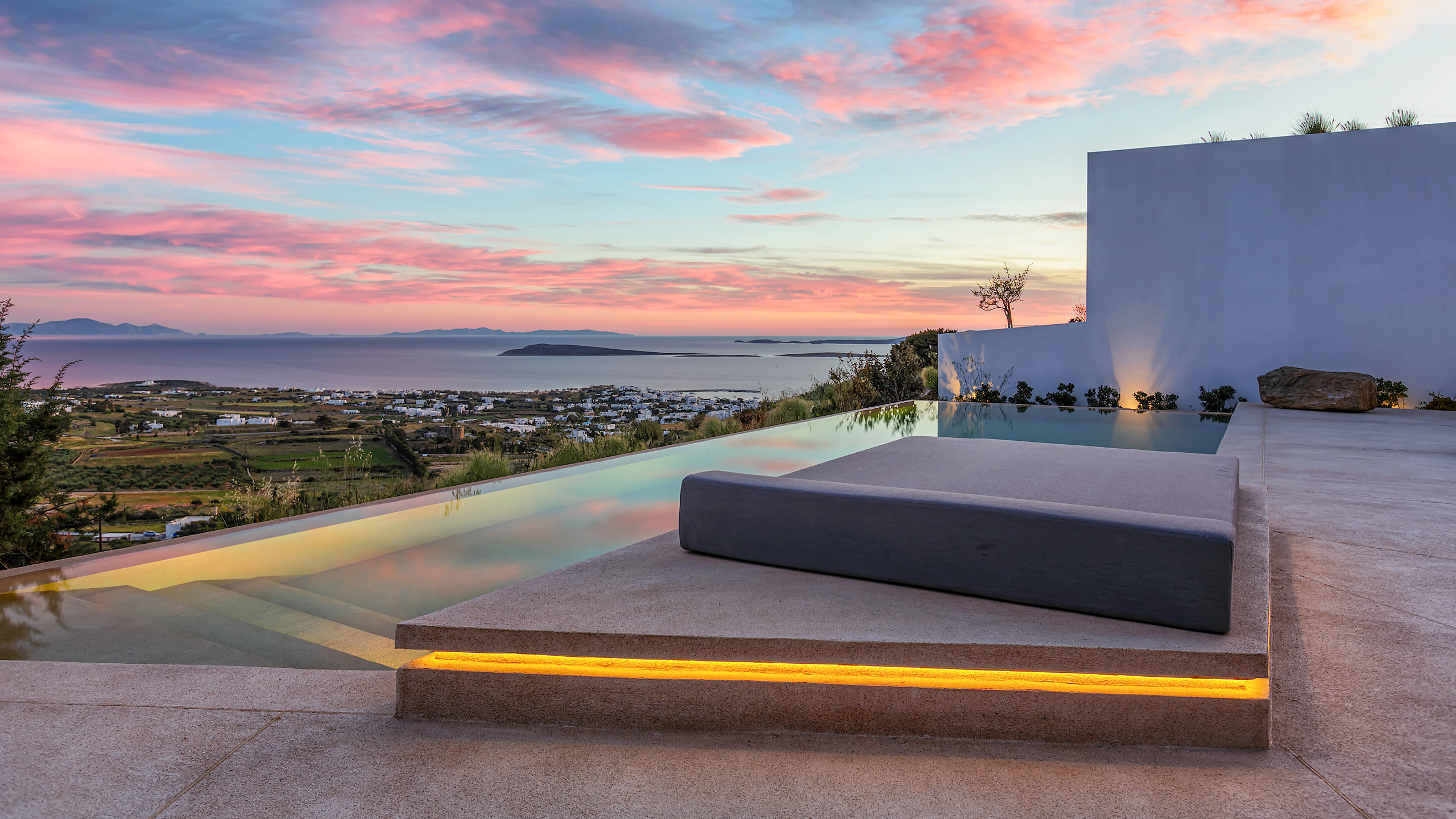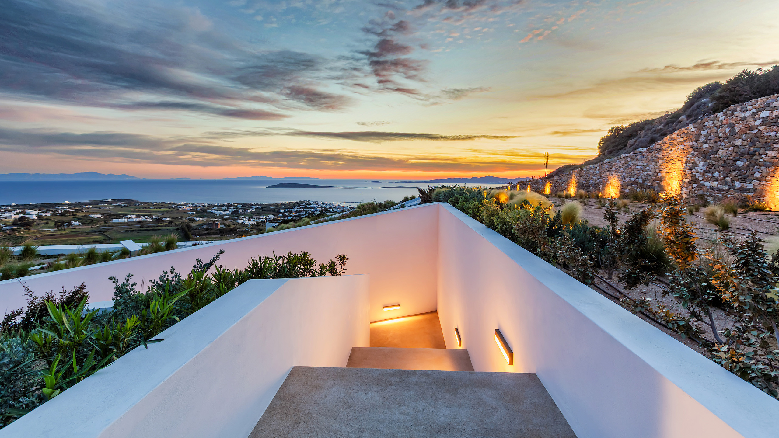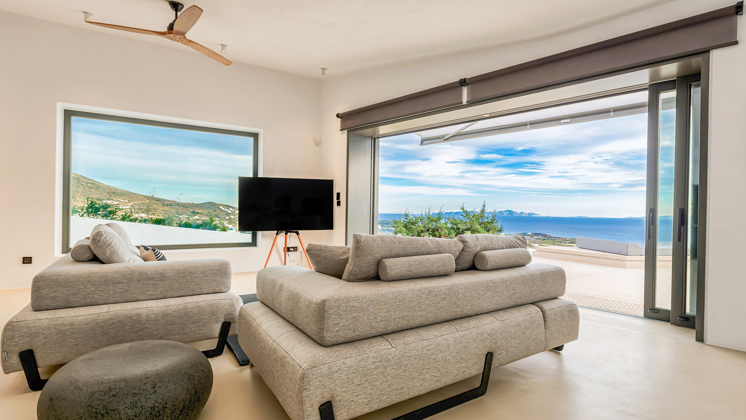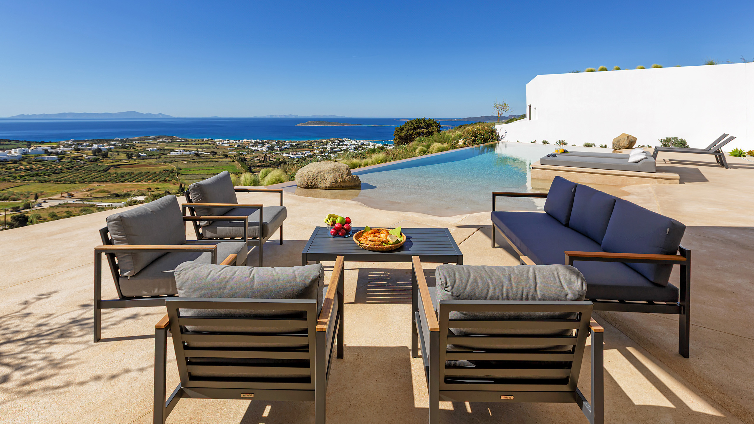 Un noto studio di architettura locale ha seguito l'interno progetto, con uno stile contemporaneo che segue il filone che sta ricevendo attualmente un grande successo, realizzando l'abitazione scavandola direttamente nella roccia. A disposizione degli ospiti troviamo tre attraenti piscine infinity, fiancheggiate da rispettive zone pranzo esterne, ombreggiate all'occorrenza da una tenda comandata elettricamente che si ritrae nella parete a piacimento.
