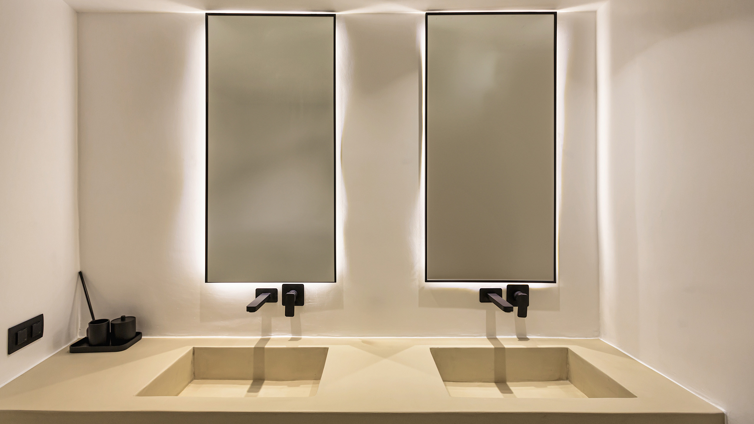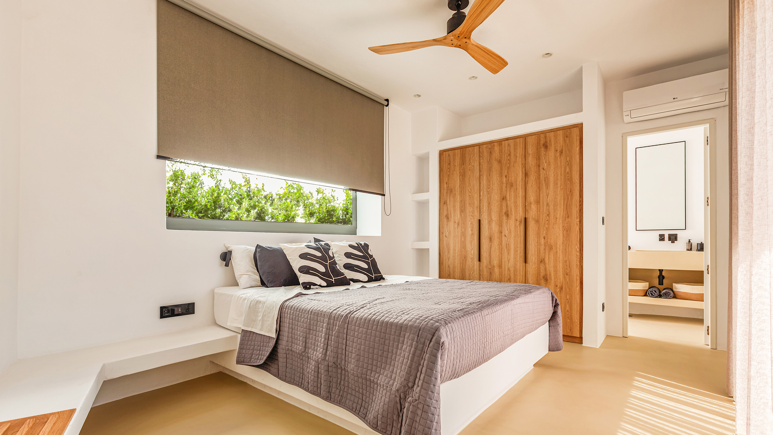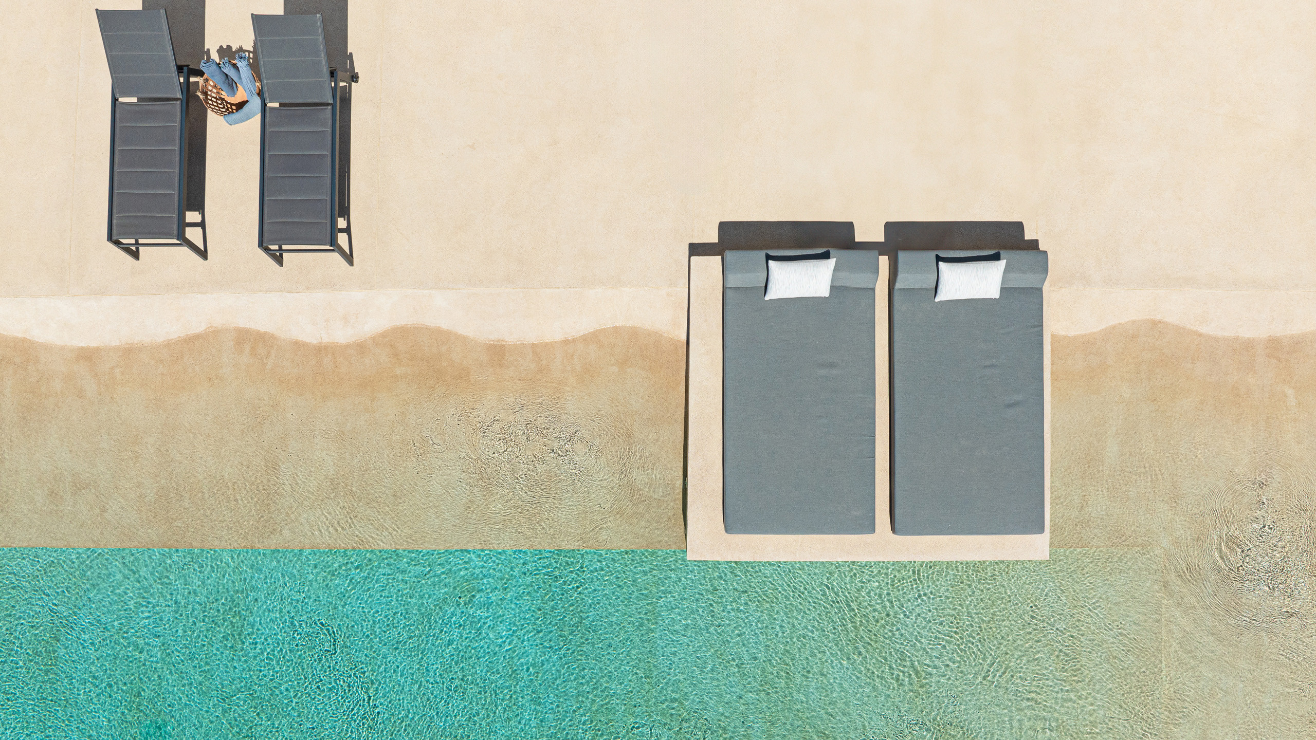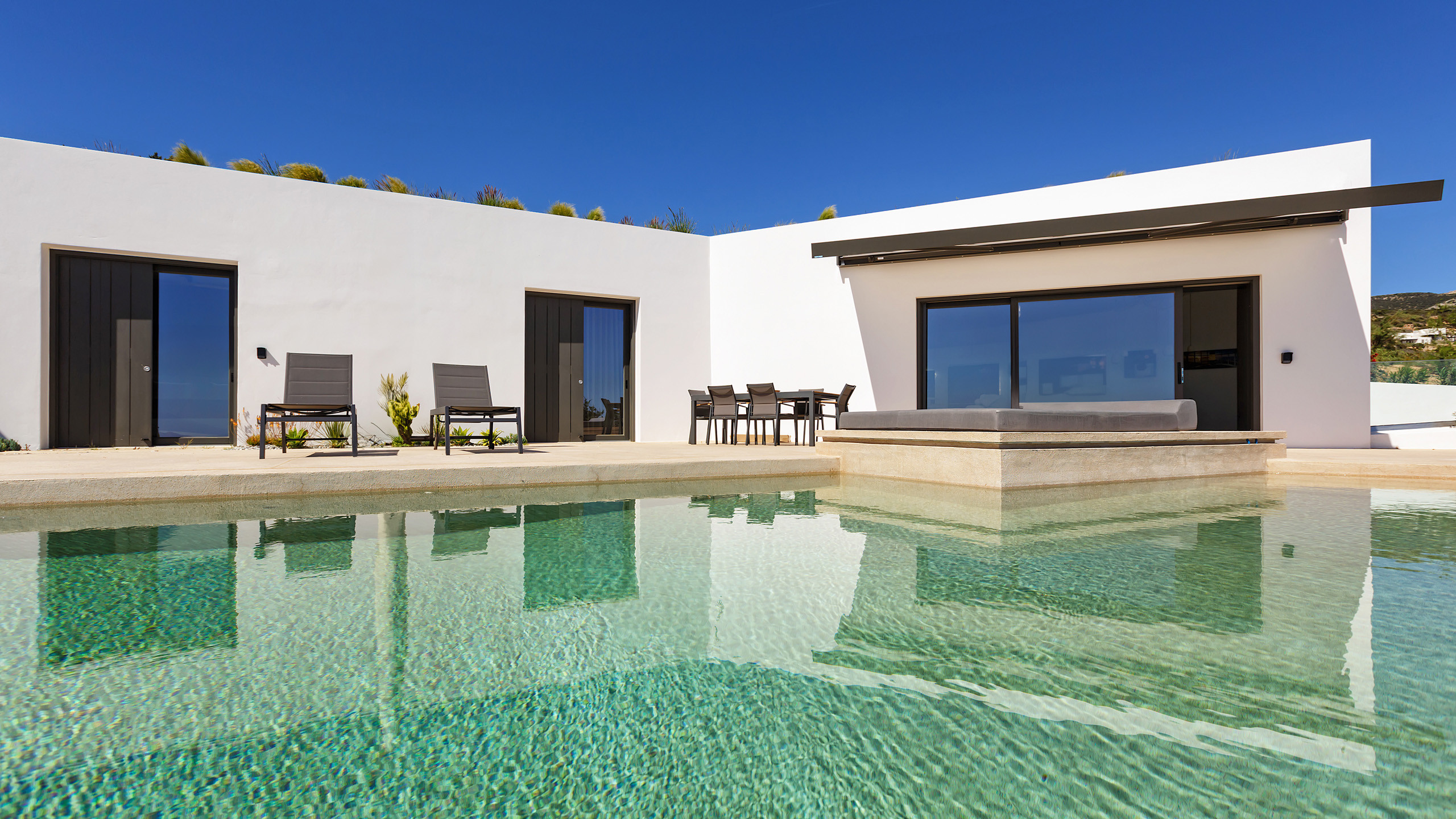Un noto studio di architettura locale ha seguito l'interno progetto, con uno stile contemporaneo che segue il filone che sta ricevendo attualmente un grande successo, realizzando l'abitazione scavandola direttamente nella roccia. A disposizione degli ospiti troviamo tre attraenti piscine infinity, fiancheggiate da rispettive zone pranzo esterne, ombreggiate all'occorrenza da una tenda comandata elettricamente che si ritrae nella parete a piacimento.