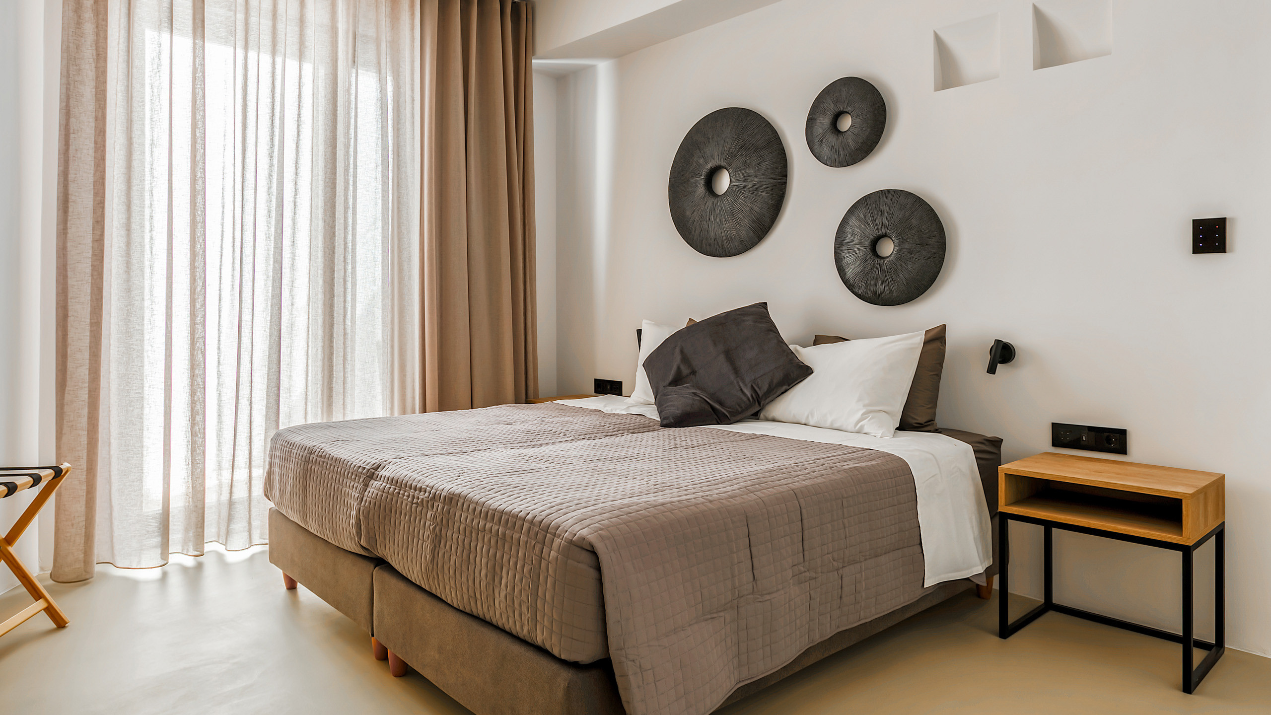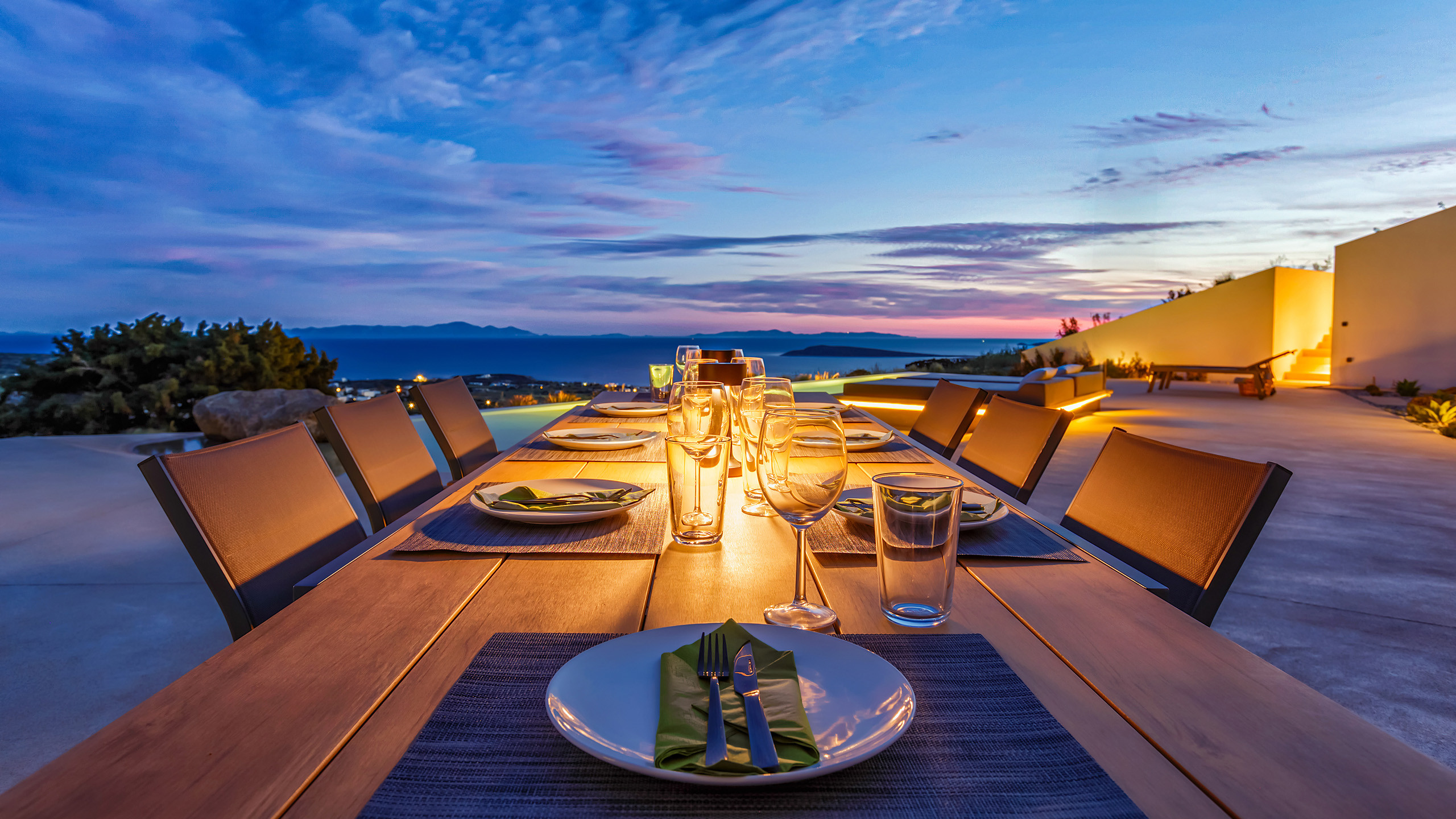 Mosman Estate è una magnifica proprietà, composta da tre abitazioni che affittiamo anche singolarmente, sulle colline alle spalle del villaggio tradizionale di Aliki. Questa posizione garantisce ottima privacy e una vista panoramica che spazia sulla campagna circostante fino al mare in lontananza, con i riflessi del tramonto a fare capolino all'imbrunire.
