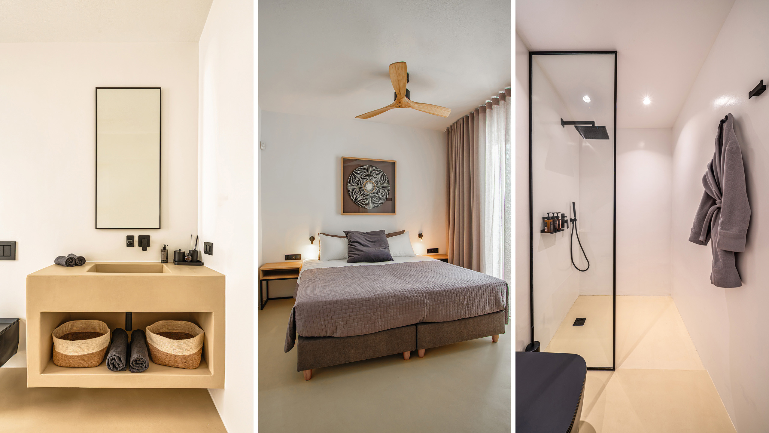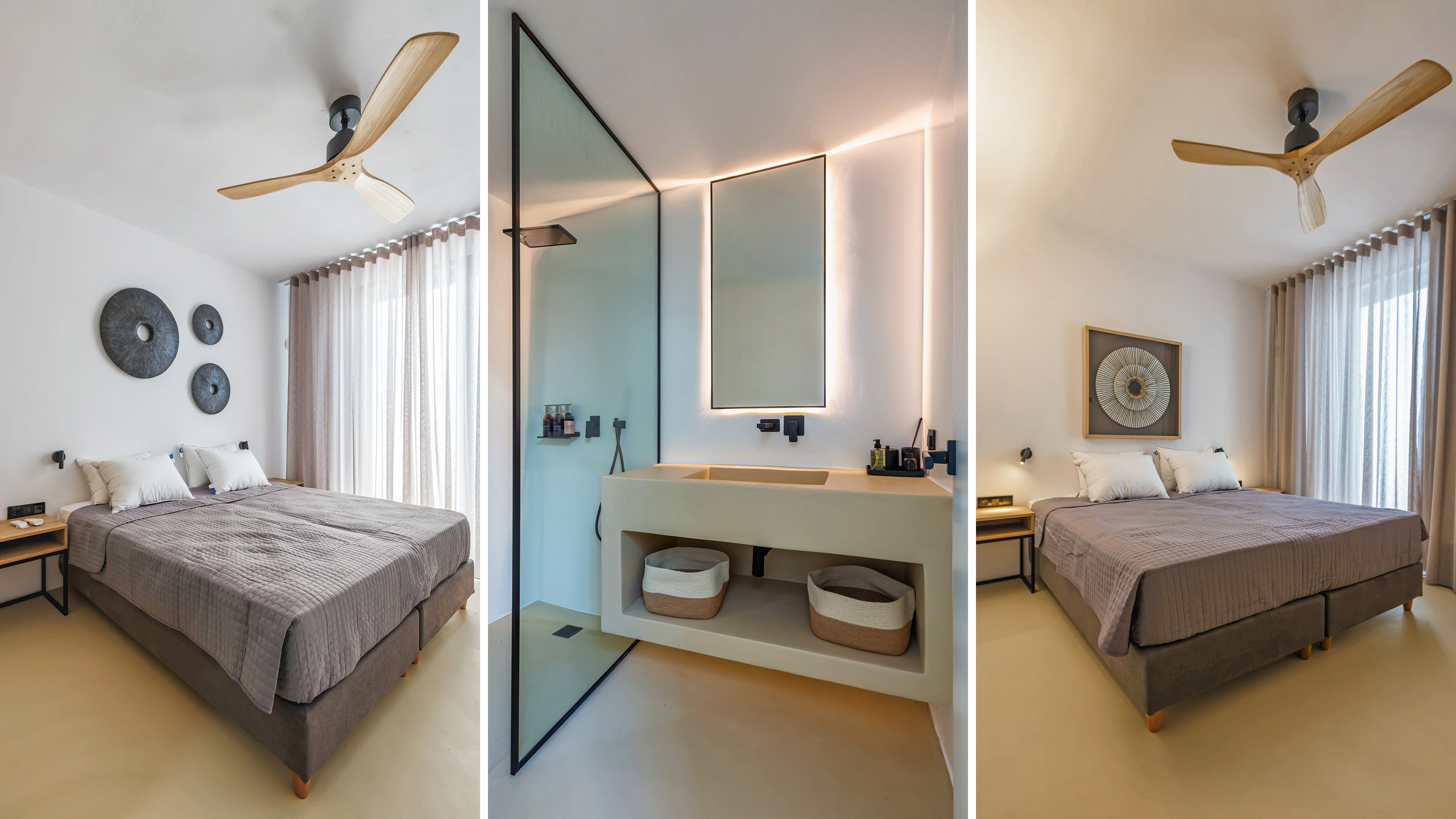 Gli interni delle tre ville sono moderni ed essenziali, con tutti gli ambienti caratterizzati da ampie vetrate che favoriscono il contatto diretto con l'esterno. Tutte le camere si assomigliano sia per arredamento che dotazioni, così come le zone comuni, con elementi d'arredo di ispirazione contemporanea e dotazioni tecnologiche della migliore qualità.