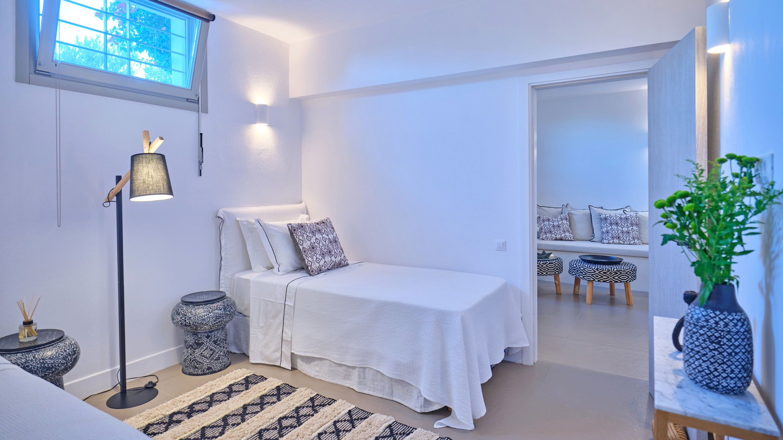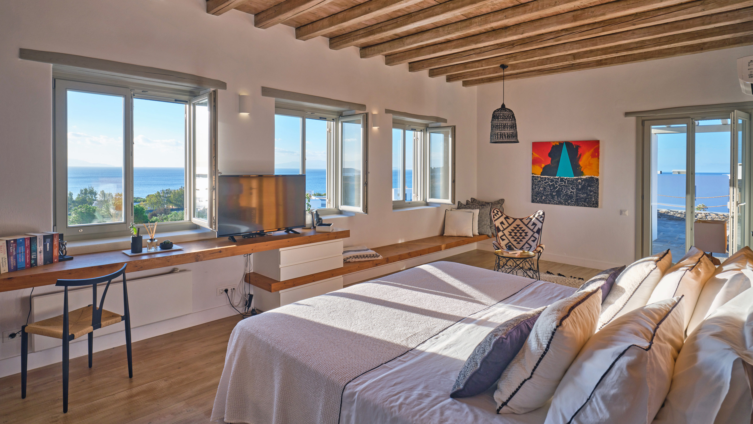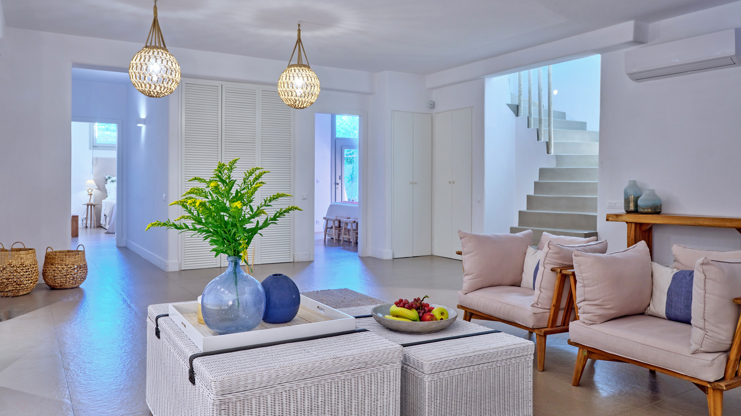 All’interno l’atmosfera che si respira è tradizionale, tuttavia sono presenti in quantità tutte le dotazioni tecnologiche degne di una proprietà di questo livello, affiancate da un’interessante collezione di arte contemporanea. La splendida camera padronale trova spazio sul livello superiore del corpo centrale per beneficiare al massimo della vista mare, mentre le altre camere sono suddivise tra livelli diversi e guest house indipendente.