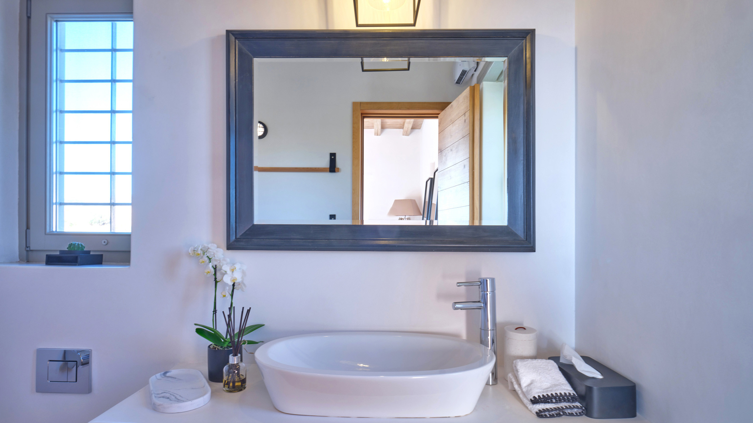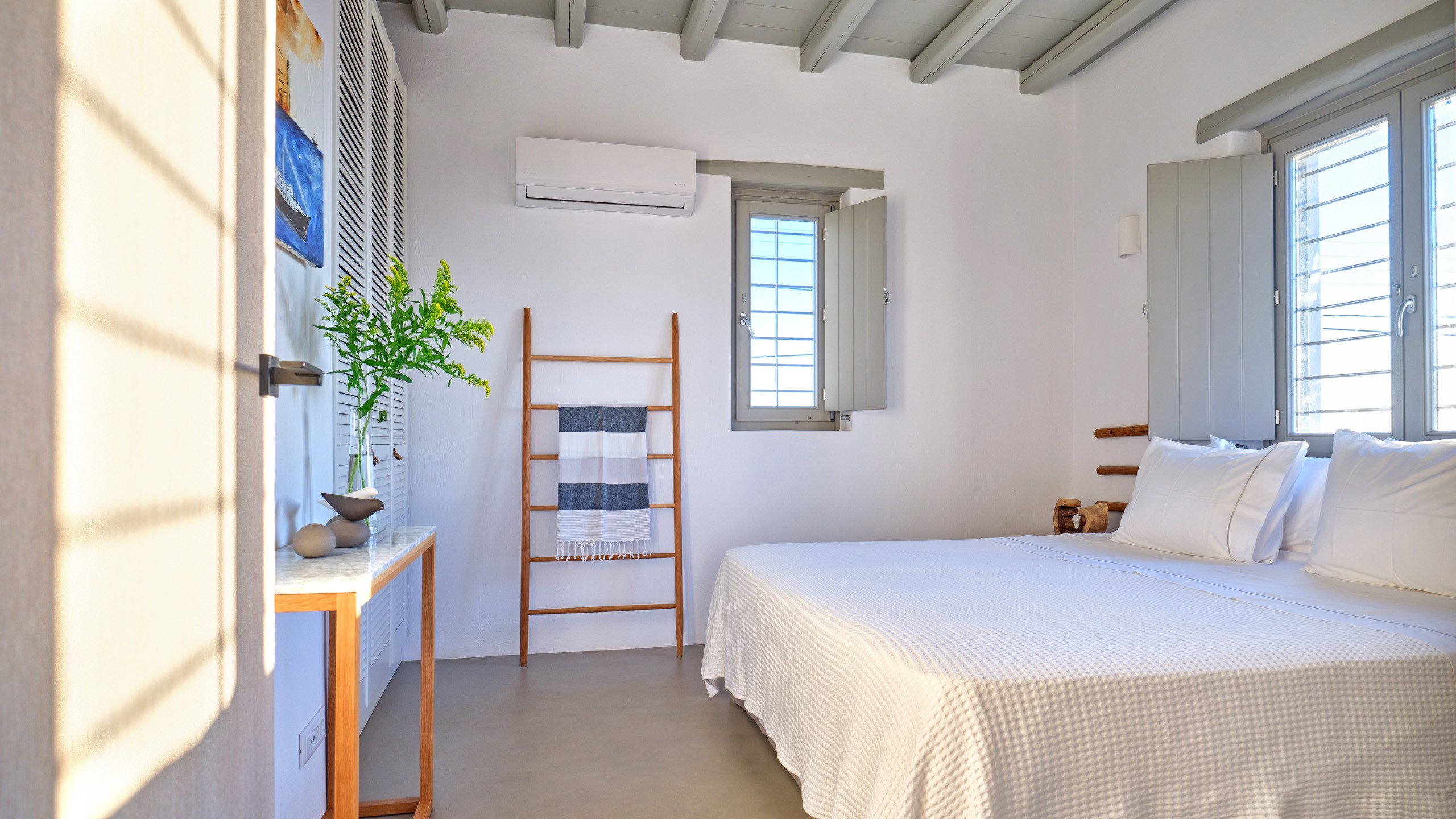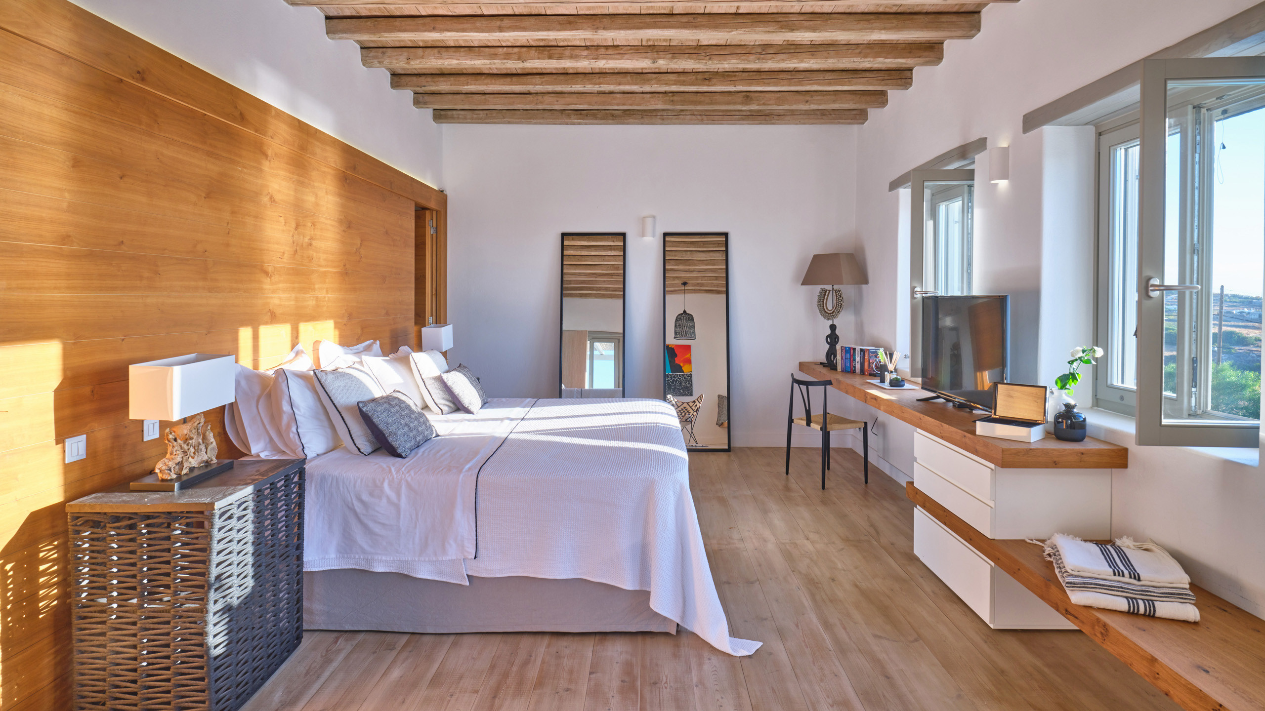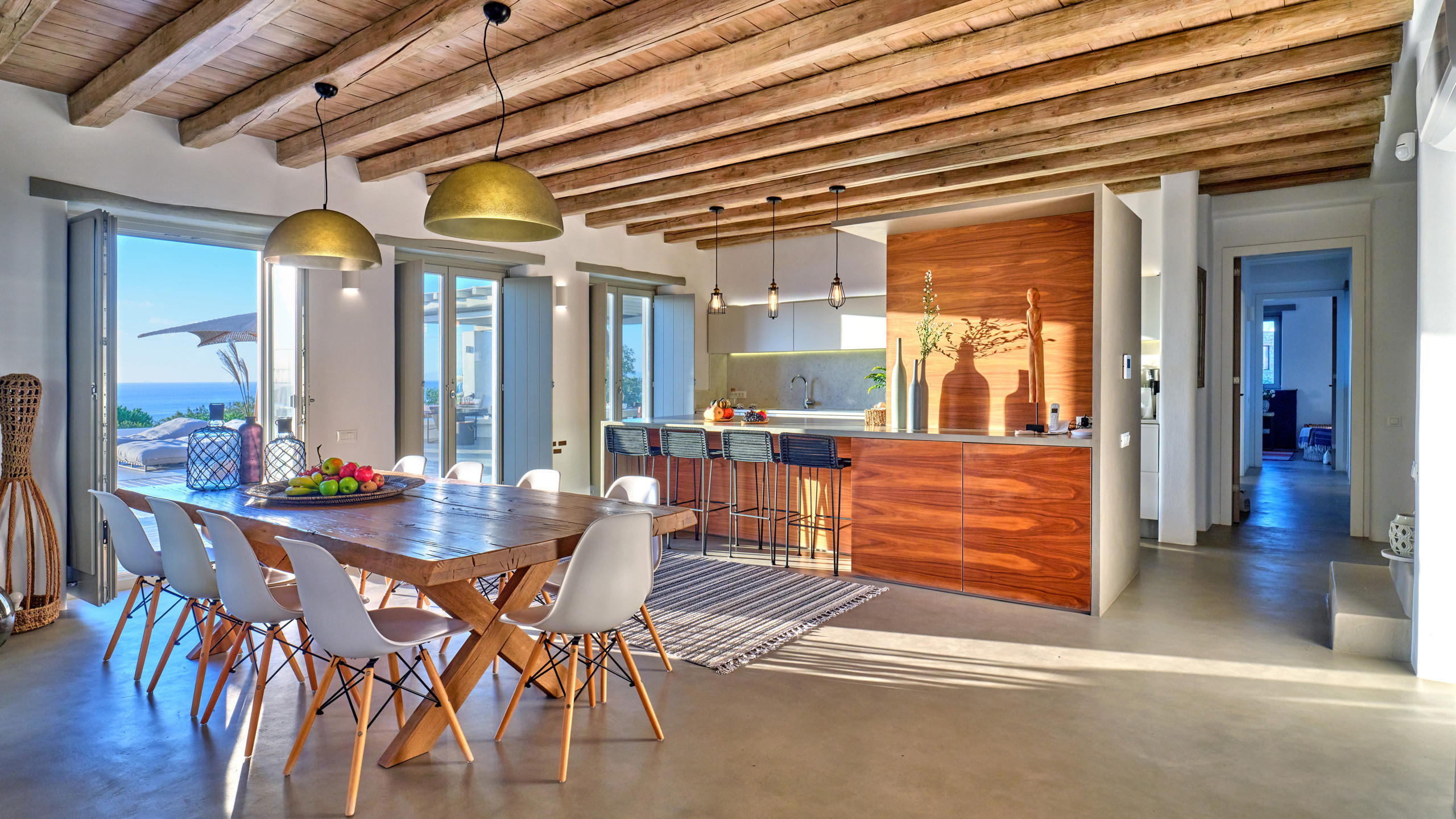 All’interno l’atmosfera che si respira è tradizionale, tuttavia sono presenti in quantità tutte le dotazioni tecnologiche degne di una proprietà di questo livello, affiancate da un’interessante collezione di arte contemporanea. La splendida camera padronale trova spazio sul livello superiore del corpo centrale per beneficiare al massimo della vista mare, mentre le altre camere sono suddivise tra livelli diversi e guest house indipendente.