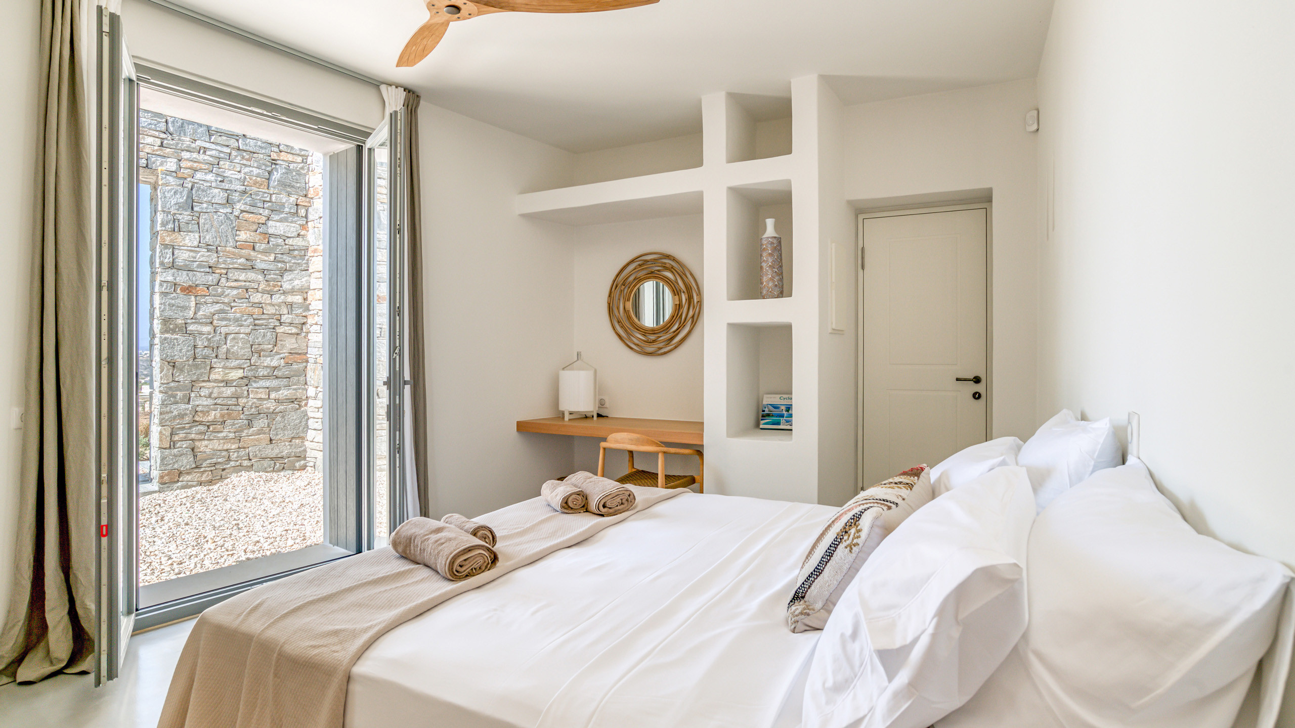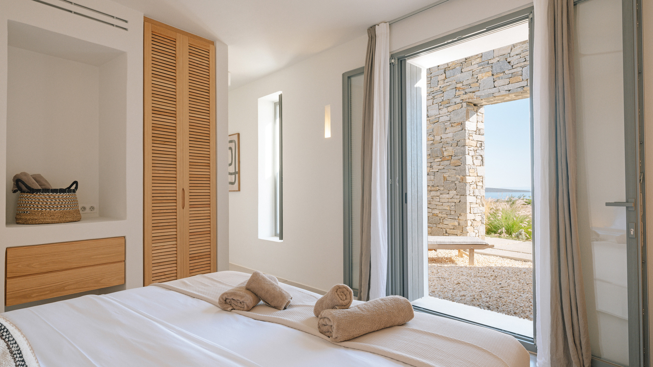 Nella parte meridionale di Paros, a pochi passi dal caratteristico villaggio di Aliki, si nasconde questa elegante e moderna proprietà realizzata con i migliori criteri per regalare agli ospiti un soggiorno memorabile. Da questa posizione si gode di una piacevole vista sul mare e su Antiparos in lontananza, mantenendo una buona privacy, seppur a brevissima distanza dal piacevole villaggio di Aliki, dove fare una passeggiata e gustare un piatto di pesce fresco nelle tipiche taverne locali.