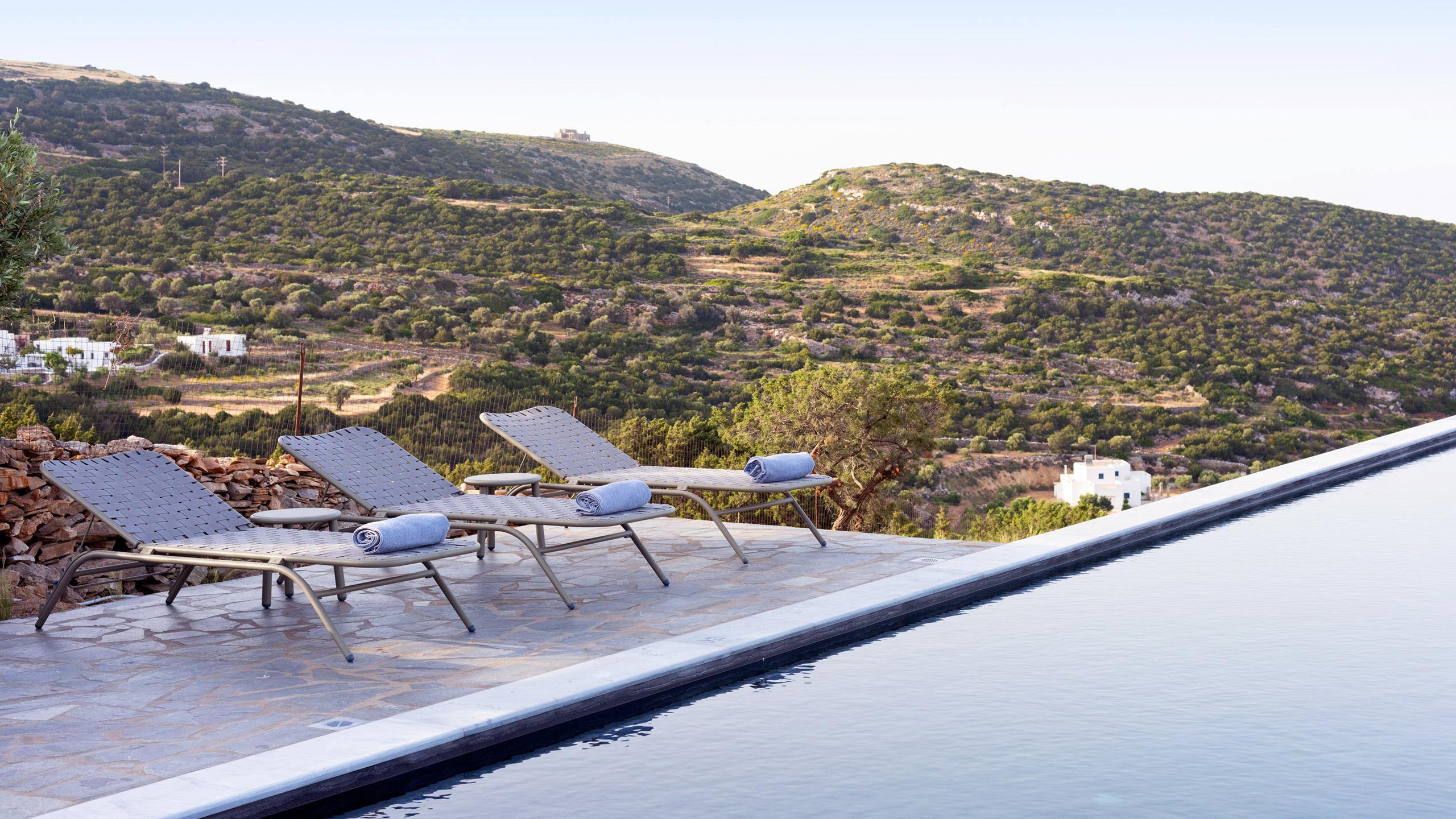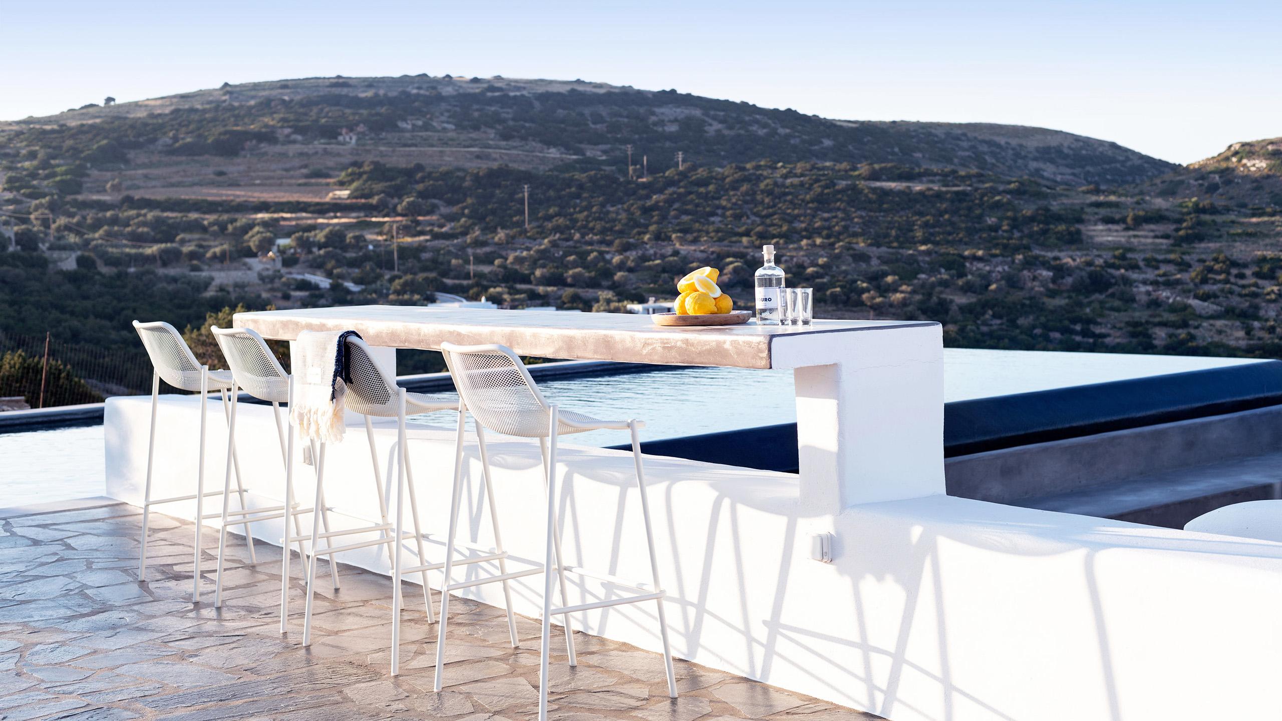 La bella villa Orinoco si trova sulle colline di Kostas, una zona tranquilla e incontaminata dell'isola, dove pace e serenità regnano sovrane. Da questa posizione si gode di una privacy assoluta, con la vista che spazia indisturbata sulla campagna circostante fino al mare in lontananza.