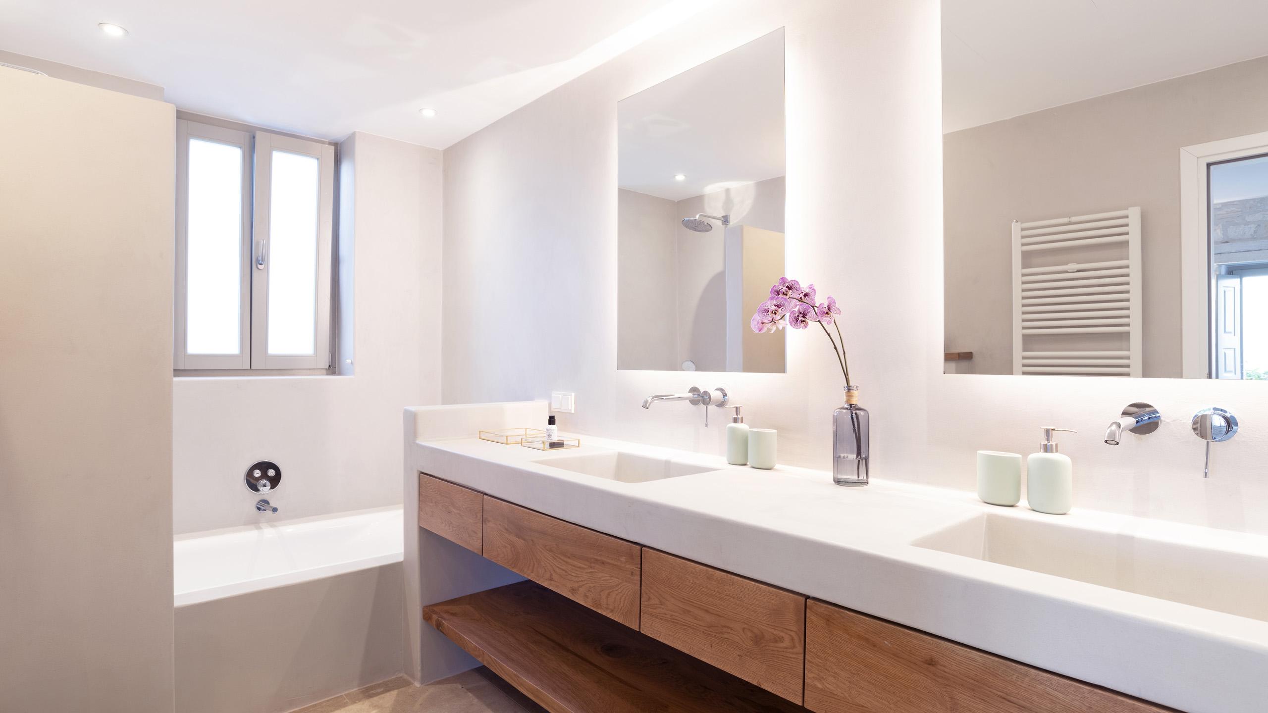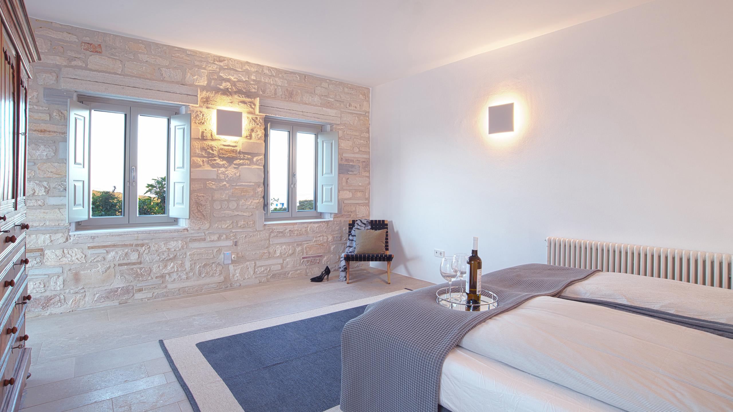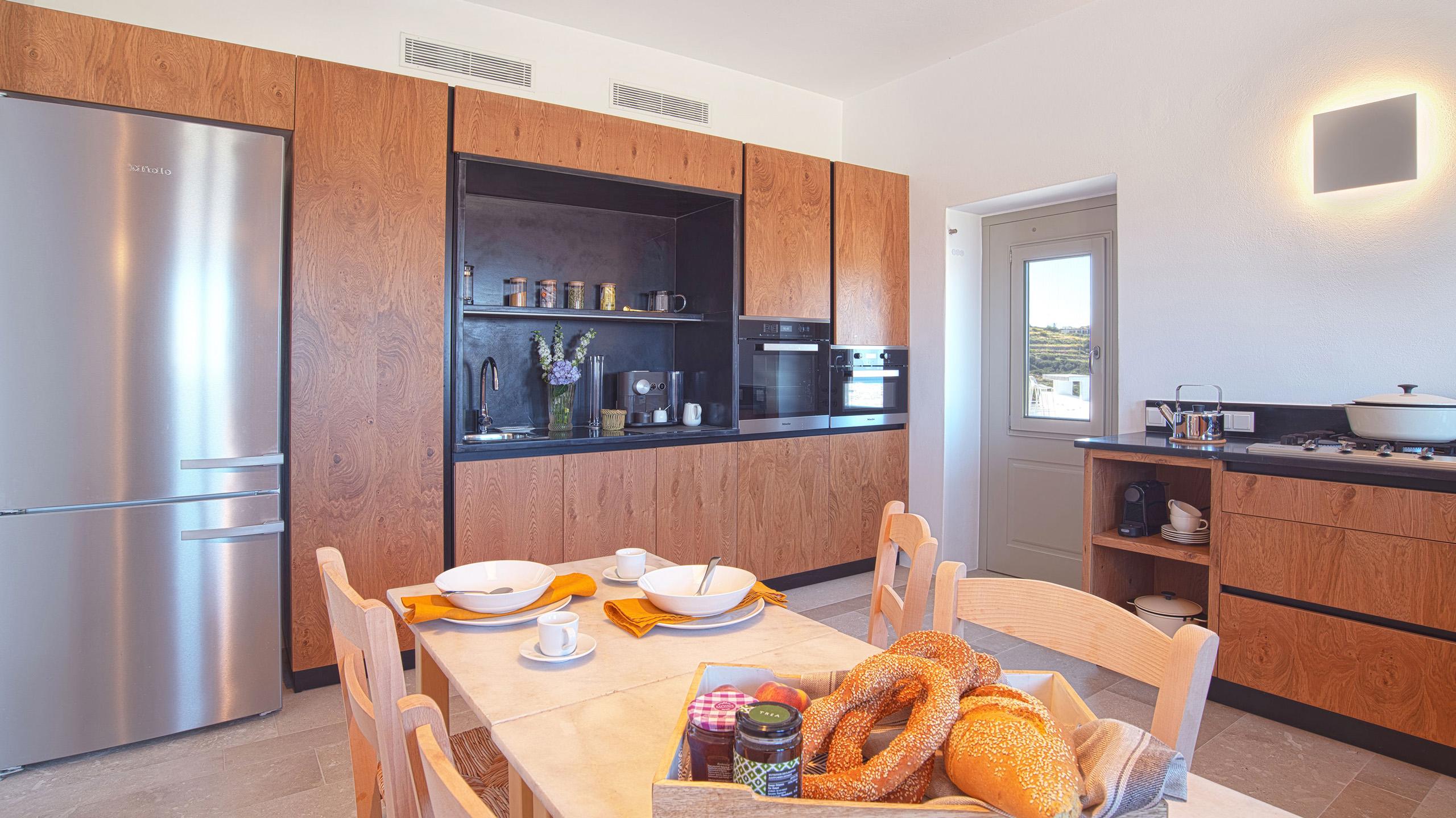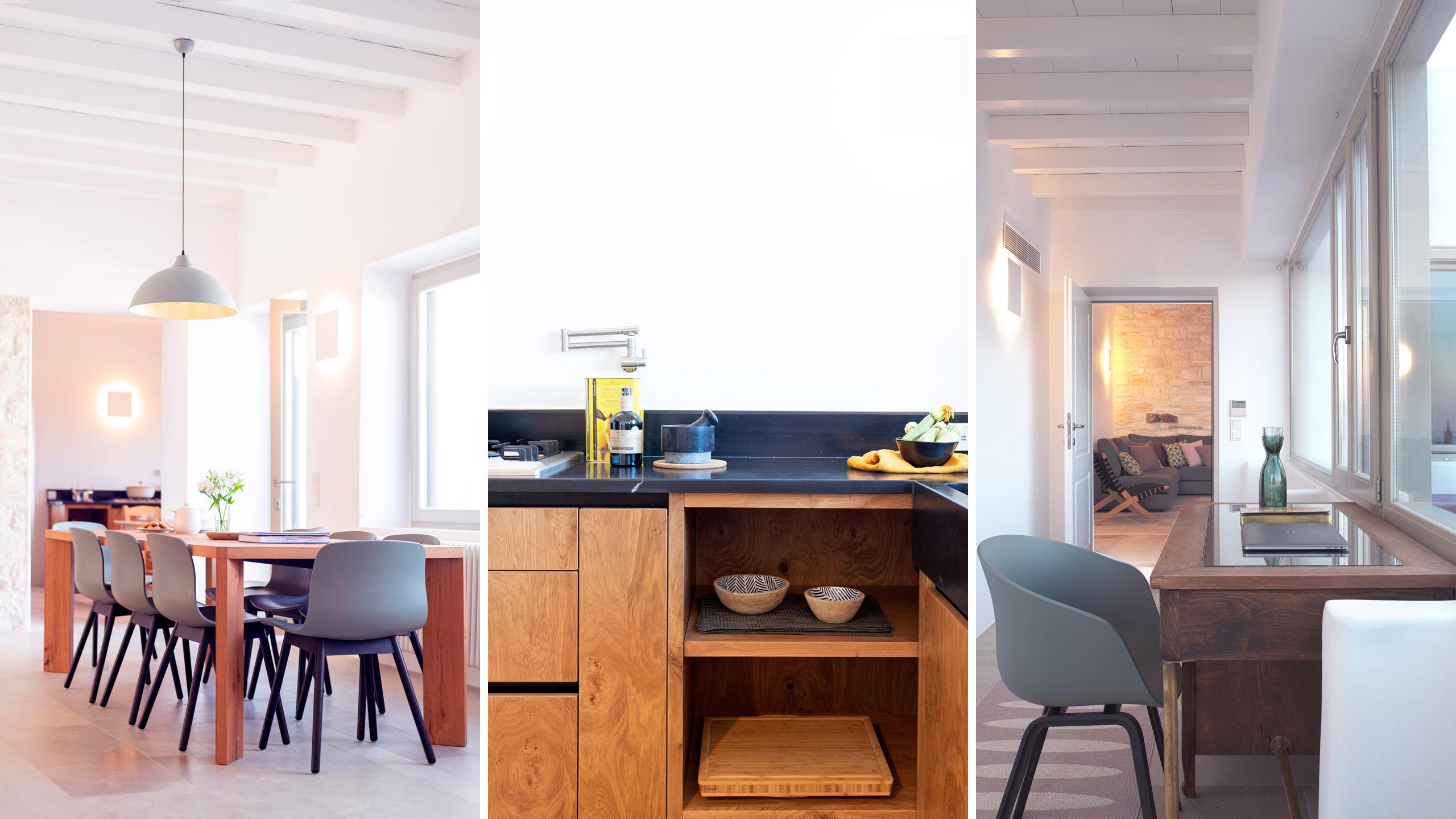 Gli interni di Orinoco sono lineari e funzionali, con dotazioni e materiali di ottima qualità, ed elementi d'arredo e scelte architettoniche che ricordano la tradizione, come ad esempio muri in pietra vista locale e mobili in legno che formano un contrasto interessante con soluzioni dal sapore più moderno. Tre delle camere da letto si trovano sul livello dell'ingresso, con la camera padronale sul livello superiore accessibile dall'esterno e uno studio indipendente per chi avesse bisogno di un pizzico di privacy in più.