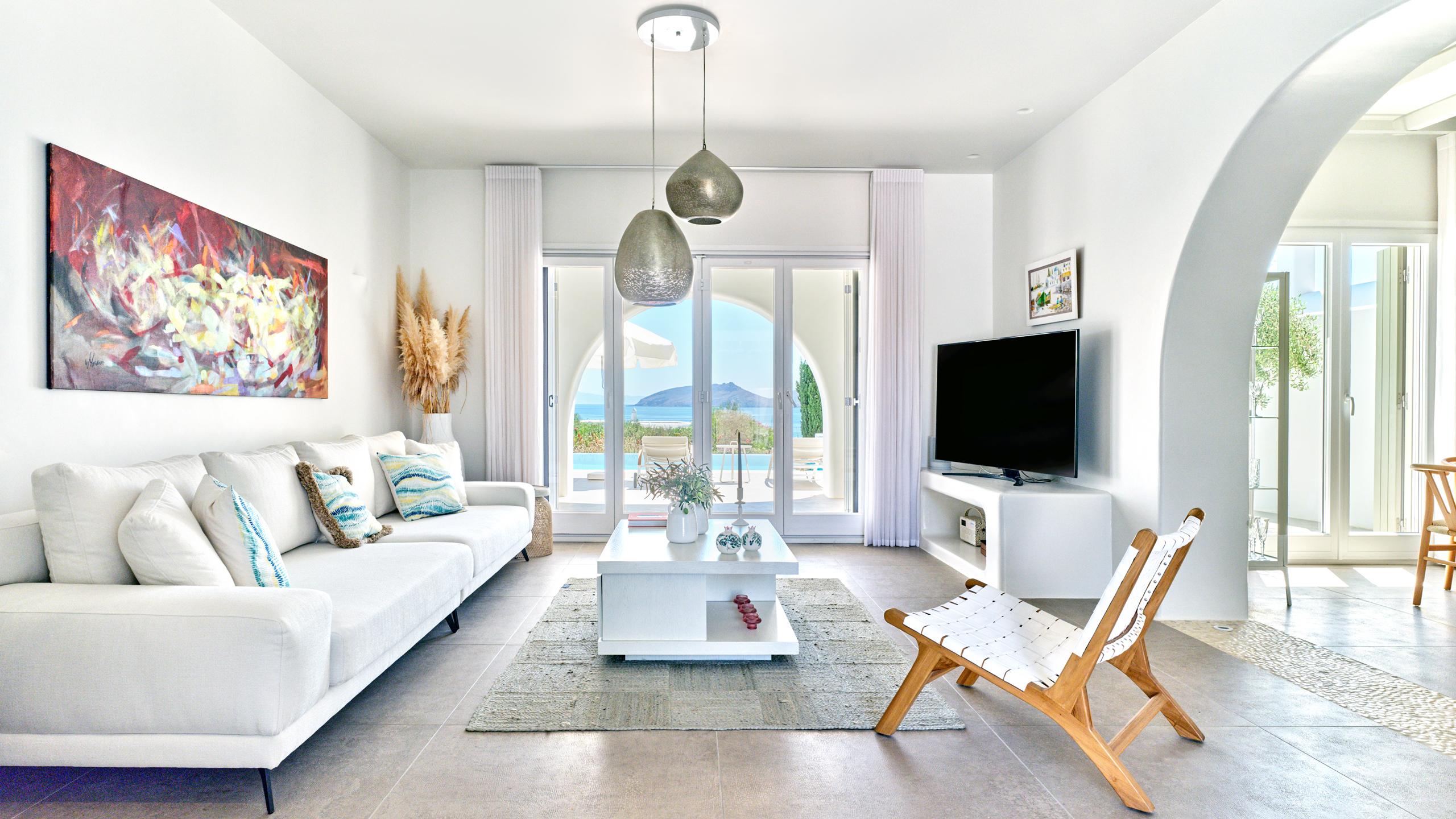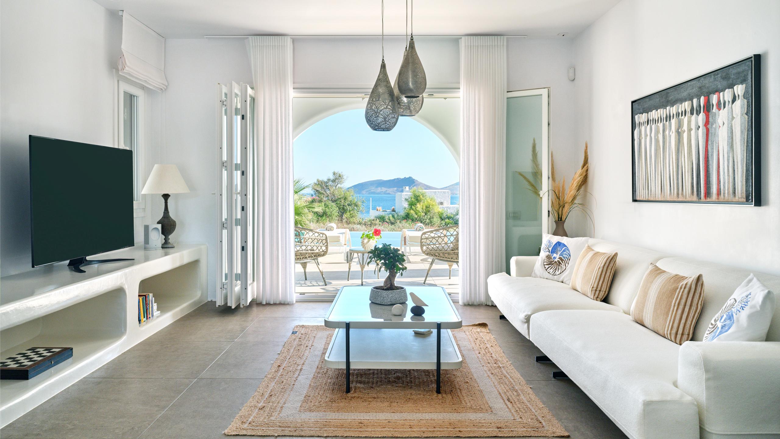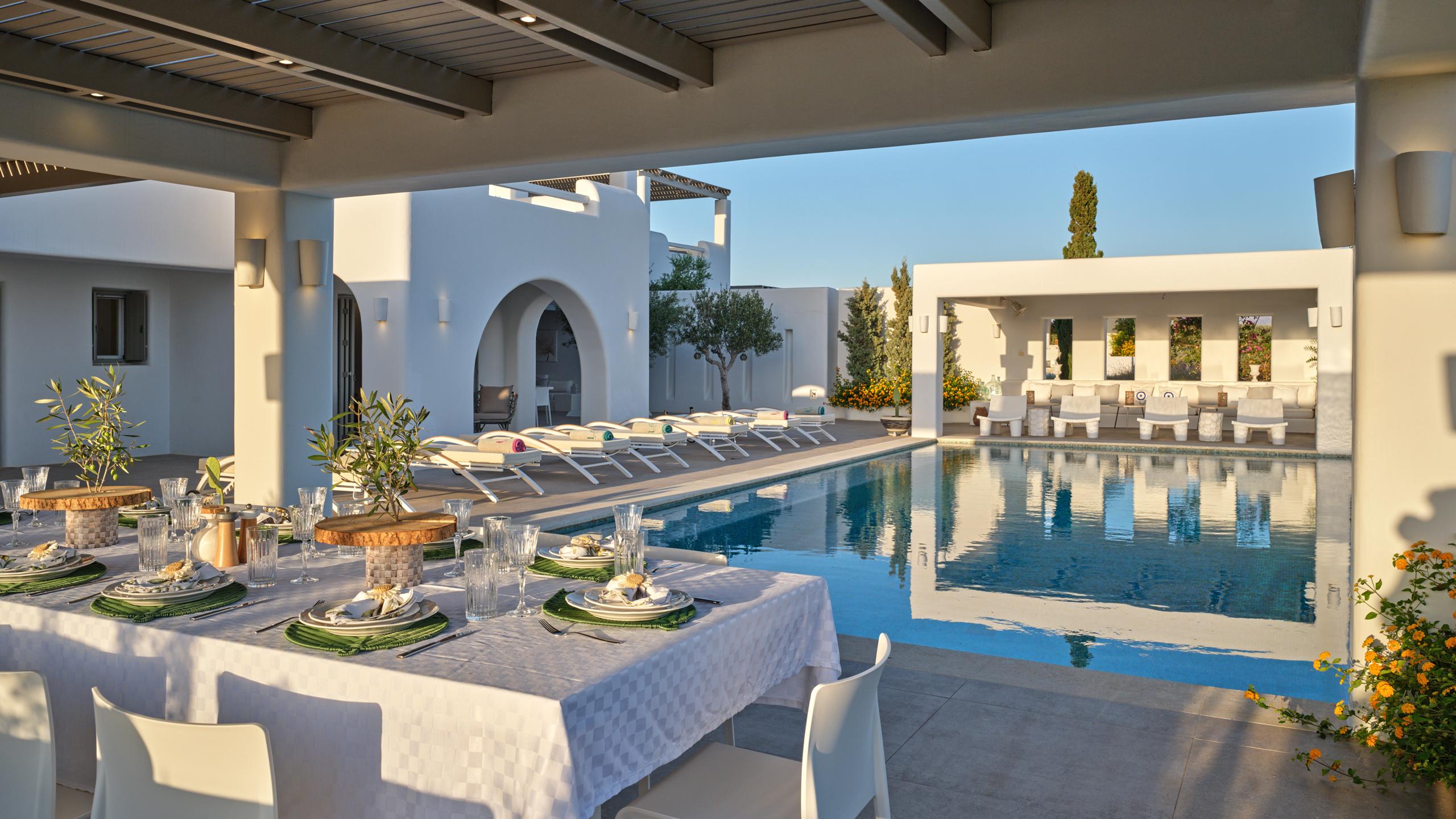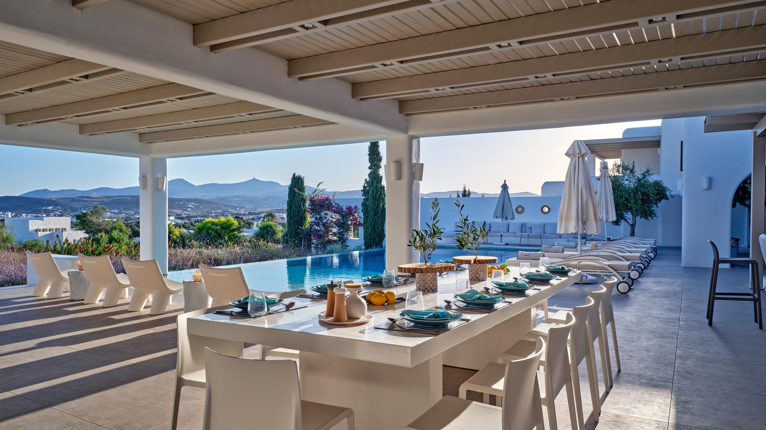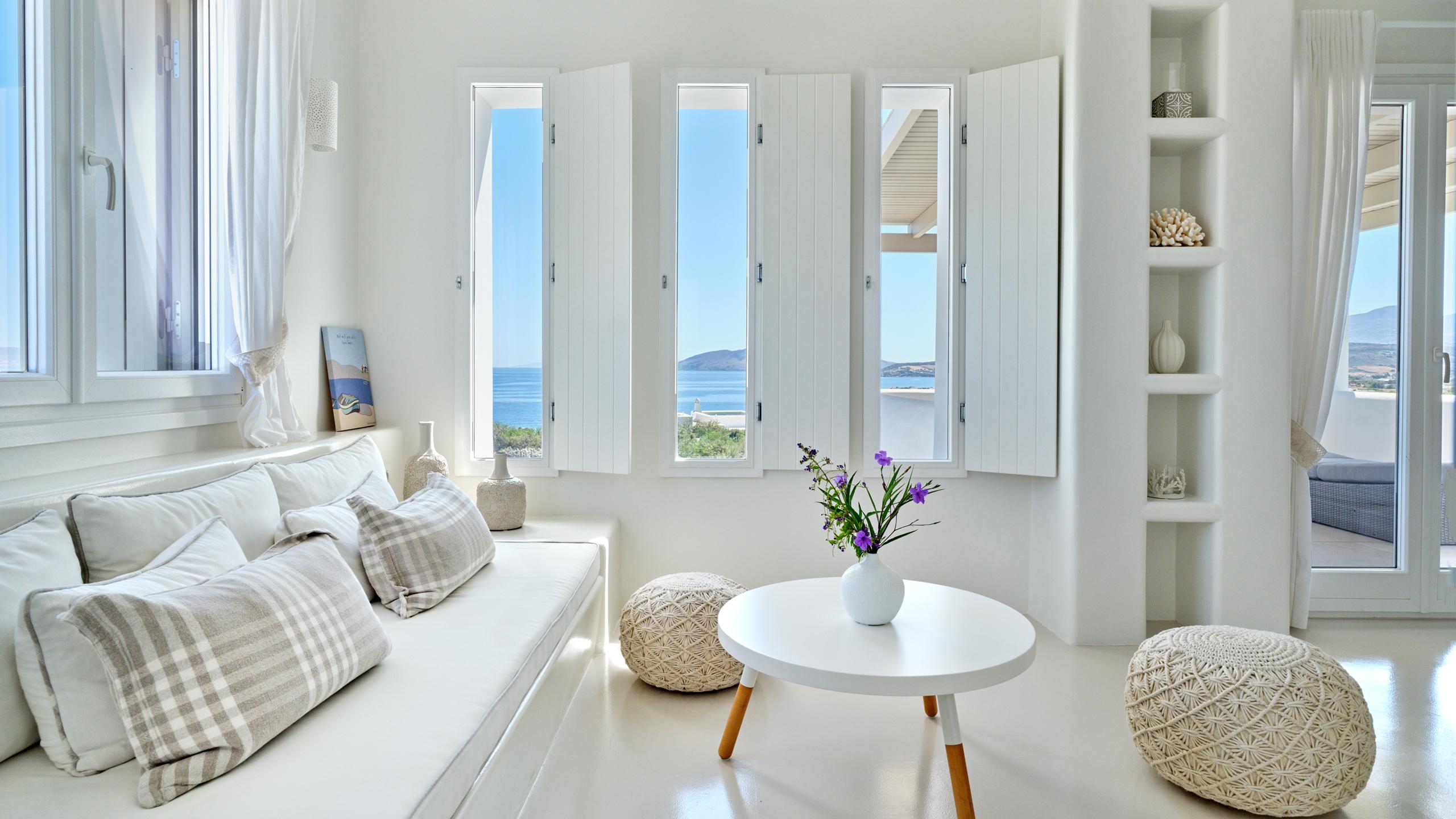 Turquoise è una maestosa proprietà formata da due ville più piccole affittabili anche singolarmente, ideali per ospitare gruppi particolarmente numerosi o eventi e celebrazioni. La zona è particolarmente interessante, fronte mare nella zona di Ambellas, quindi molto comoda per raggiungere ottime spiagge come la famosa Santa Maria e ovviamente il villaggio di Naoussa, sempre una delle mete più gettonate dai viaggiatori.