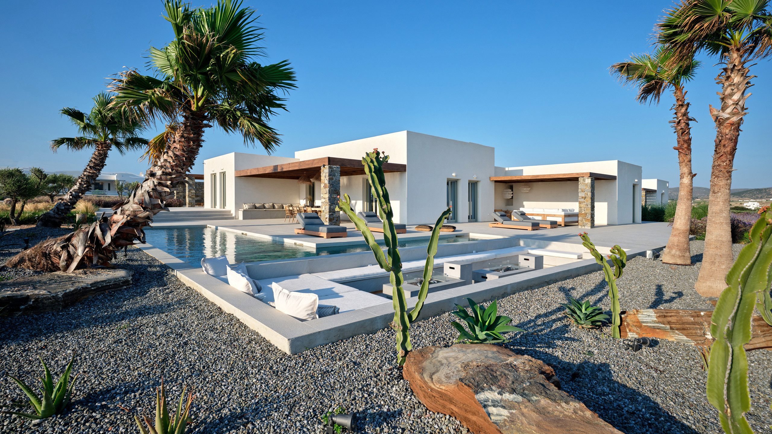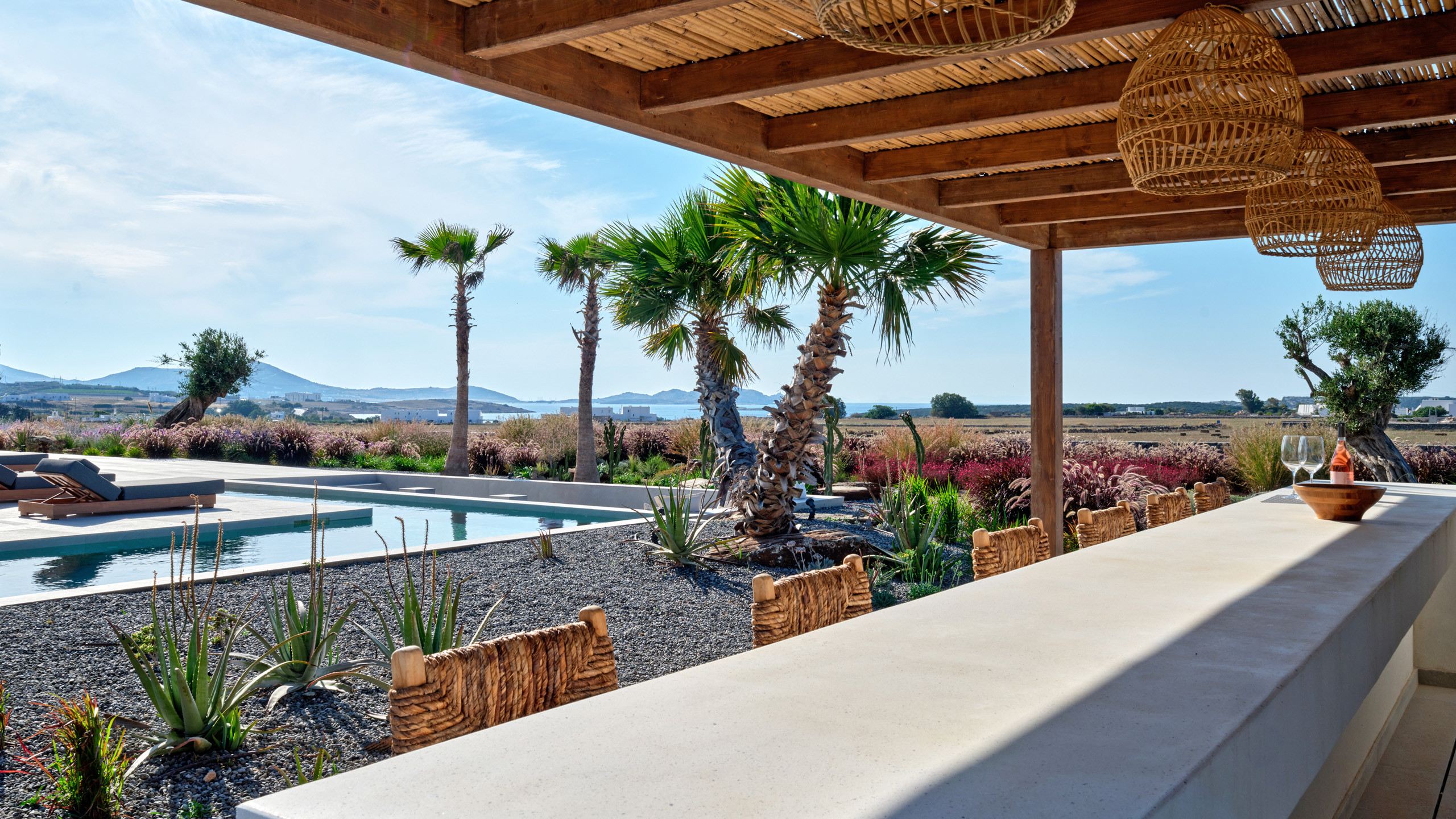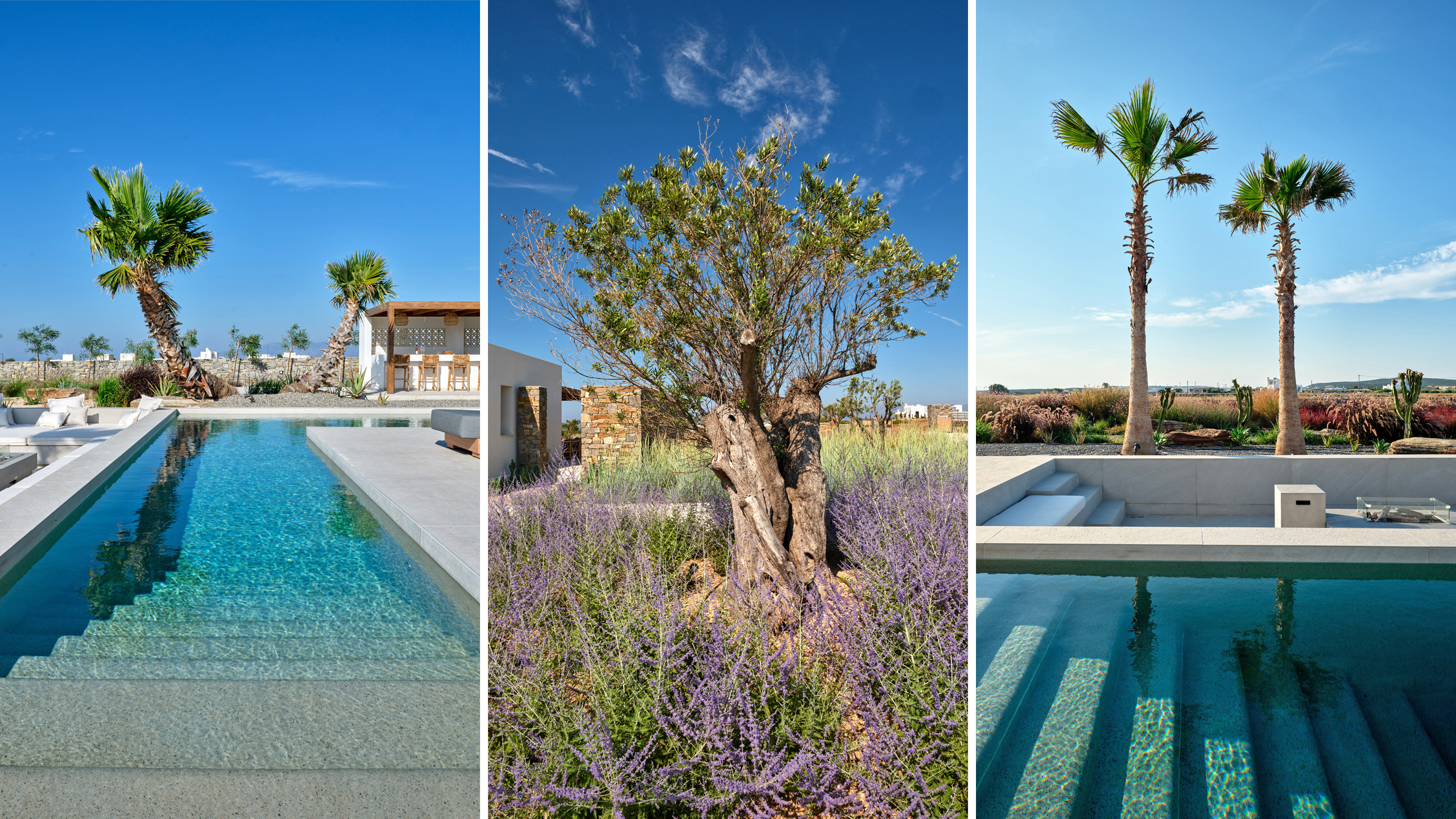 Nella campagna incontaminata, a metà strada tra la spiaggia di Santa Maria e la cittadina di Naoussa, sorge quella che si può definire a tutti gli effetti una vera e propria oasi. Twin Palms, circondata da un magnifico giardino ricco di moltissime varietà di piante, tra cui le famose palme da cui prende il nome, gode di un'ottima privacy restando a breve distanza da alcune delle principali attrazioni di Paros, in una posizione realmente favorevole.