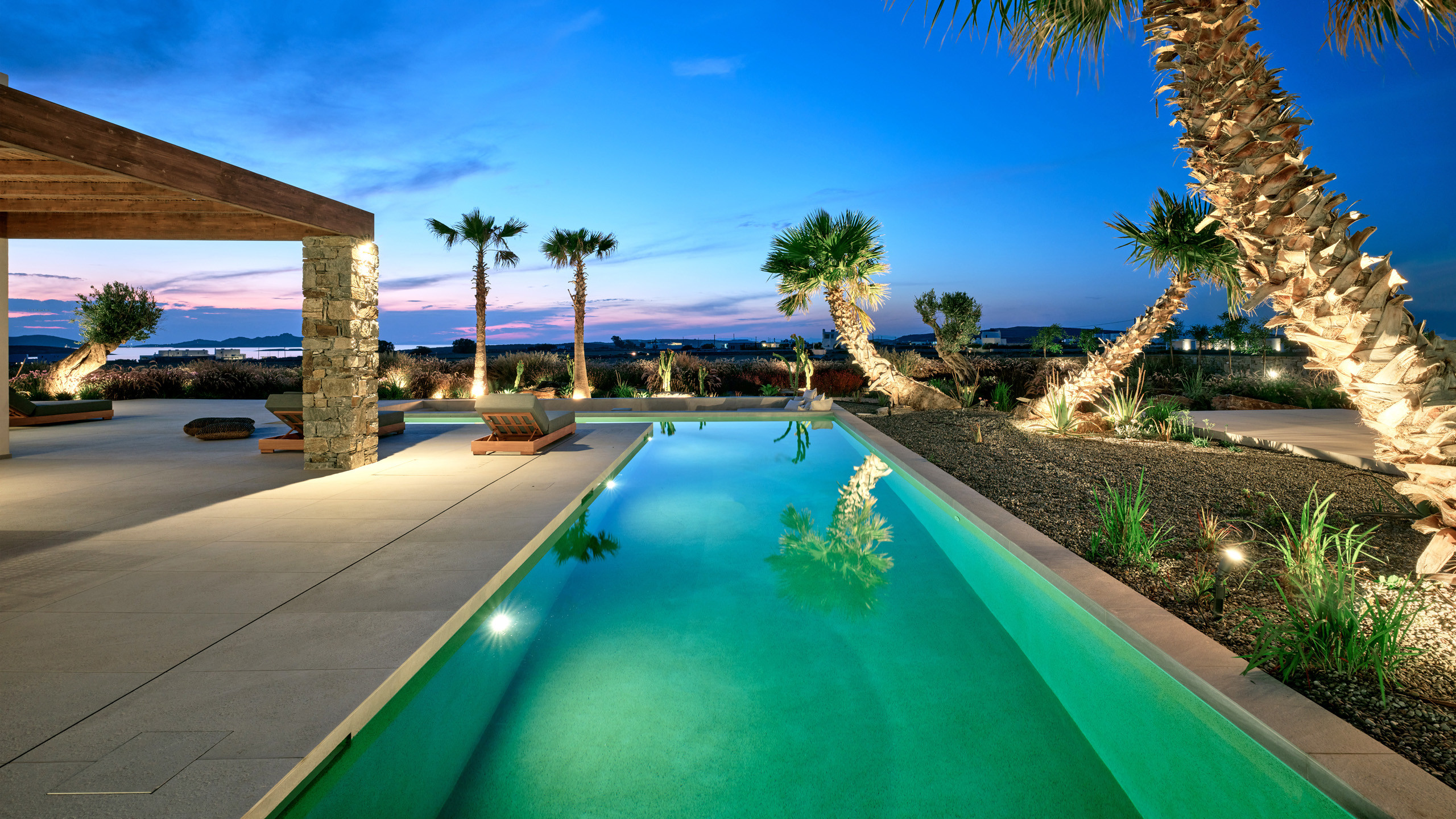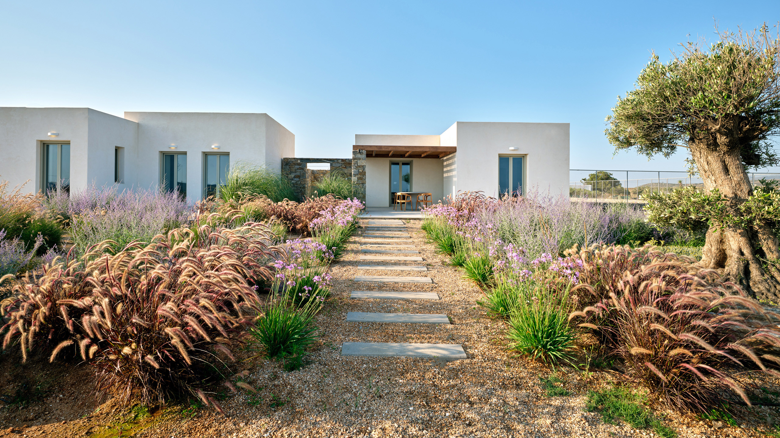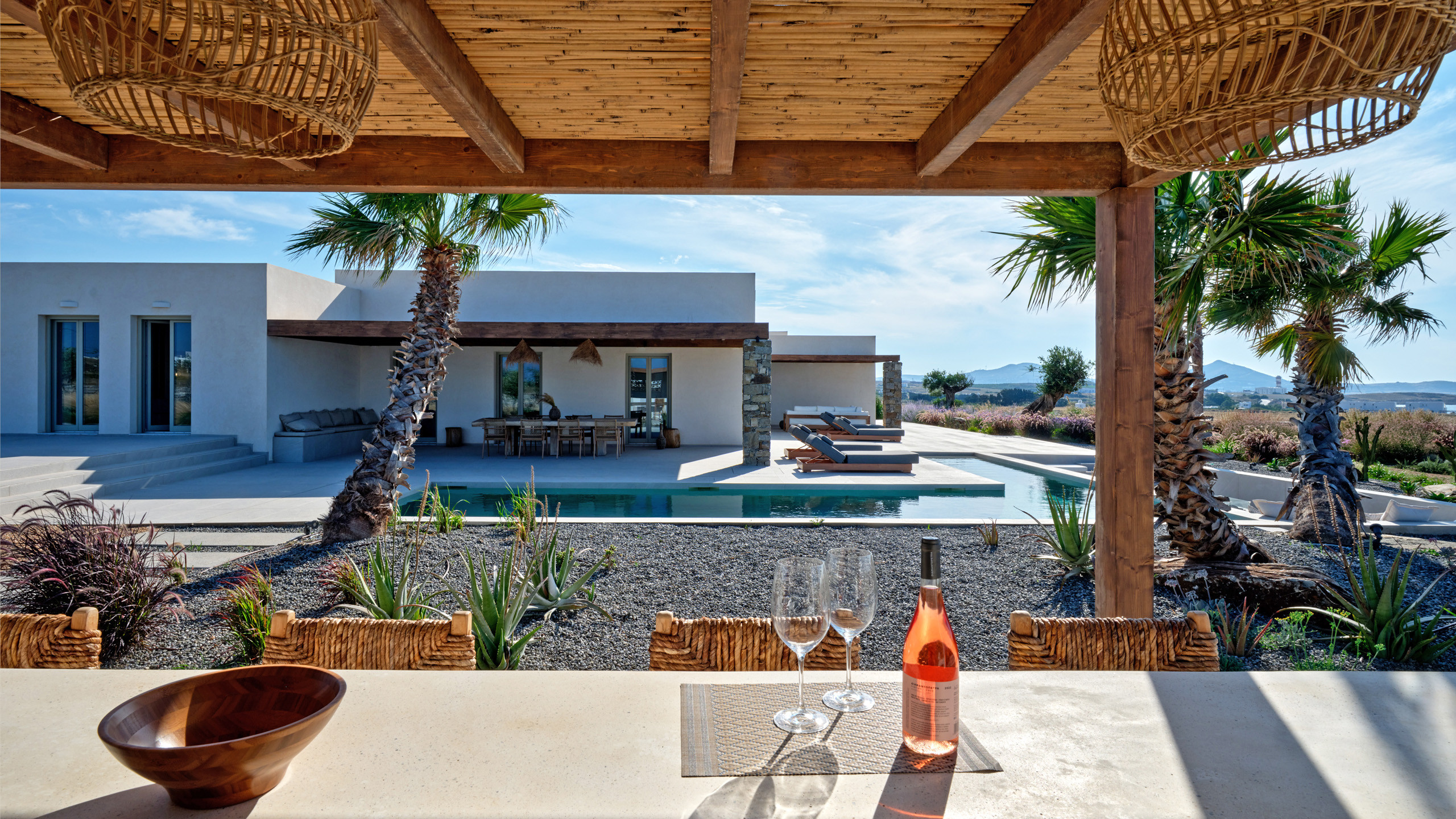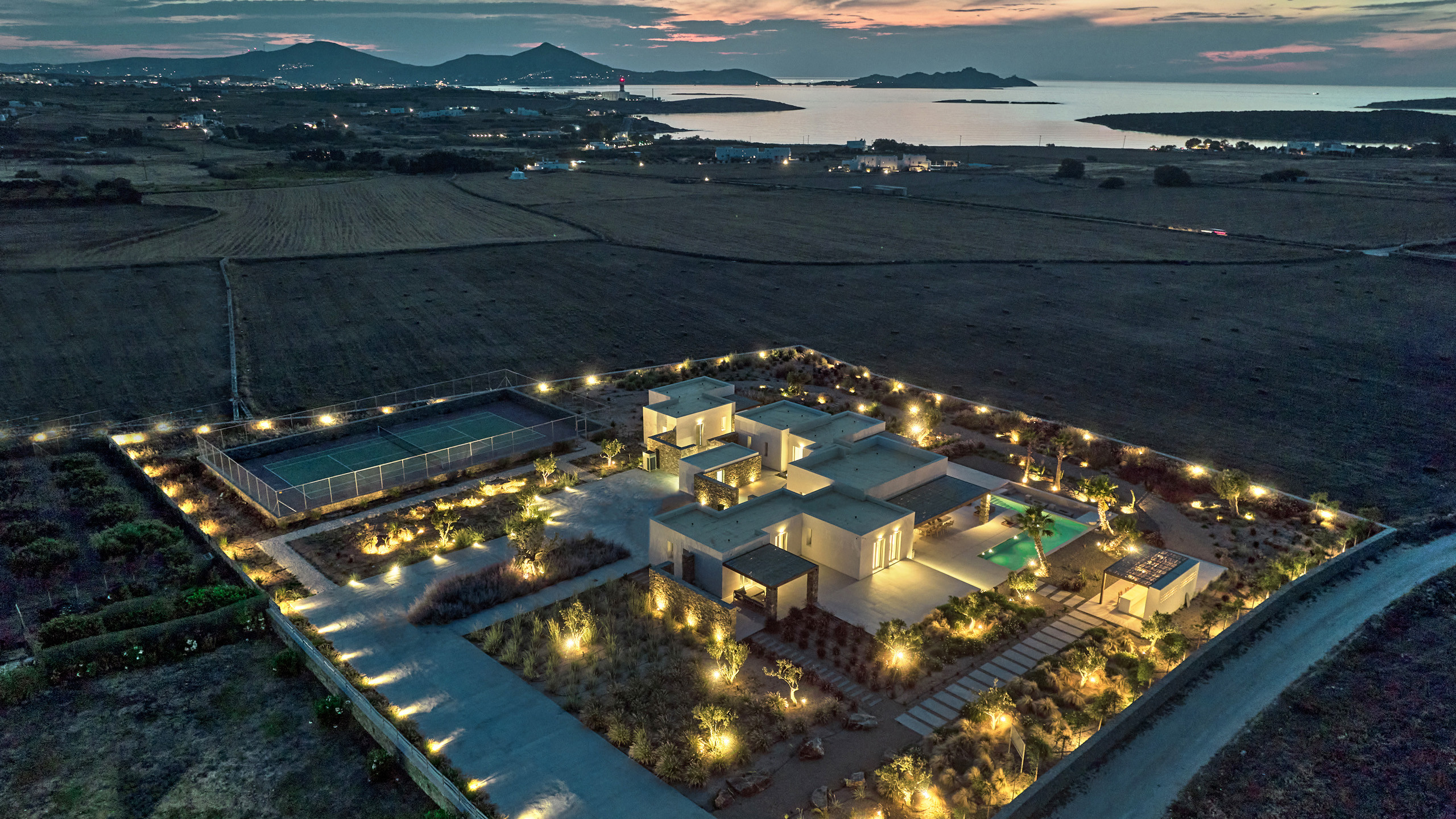 Nella campagna incontaminata, a metà strada tra la spiaggia di Santa Maria e la cittadina di Naoussa, sorge quella che si può definire a tutti gli effetti una vera e propria oasi. Twin Palms, circondata da un magnifico giardino ricco di moltissime varietà di piante, tra cui le famose palme da cui prende il nome, gode di un'ottima privacy restando a breve distanza da alcune delle principali attrazioni di Paros, in una posizione realmente favorevole.