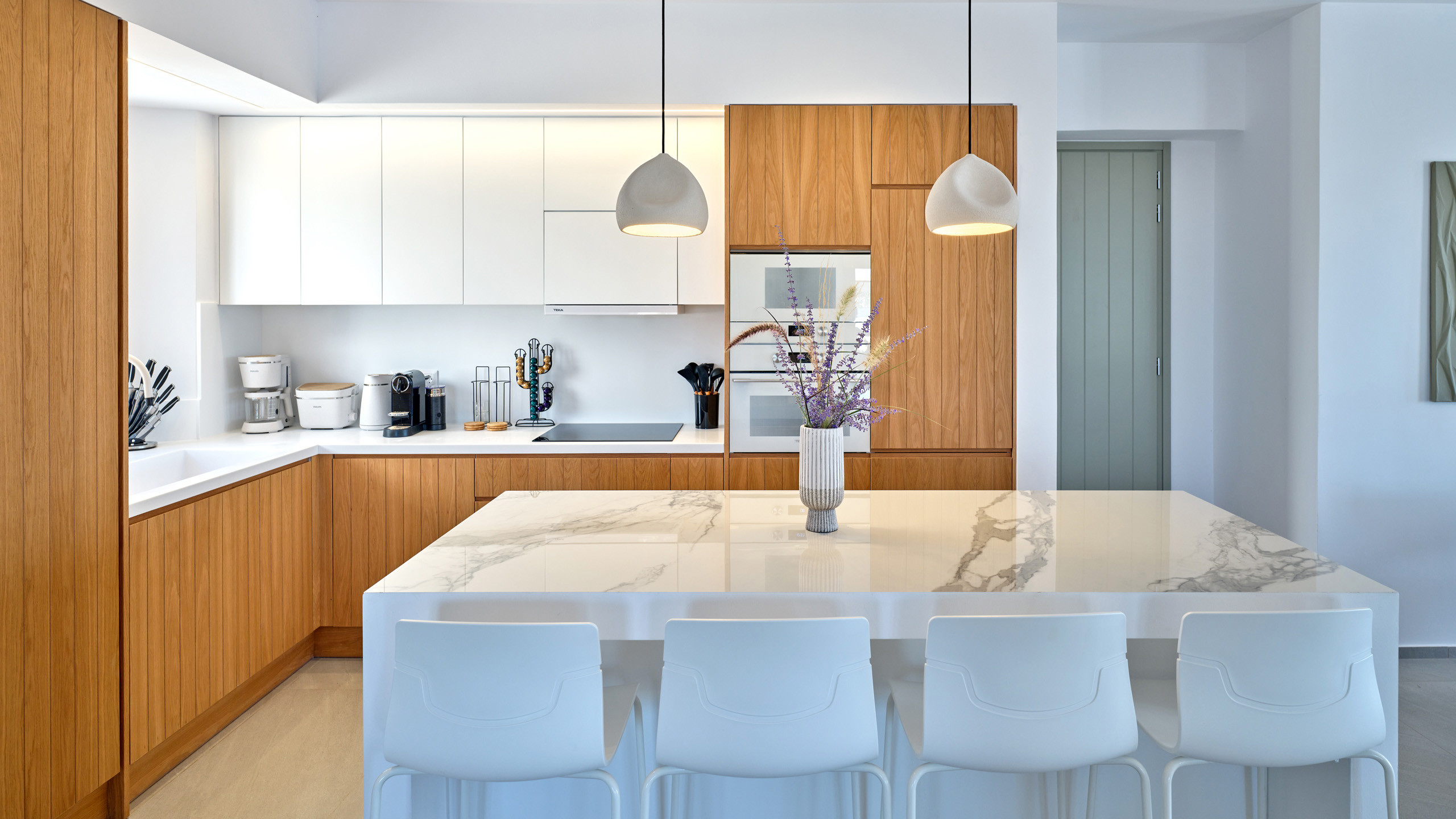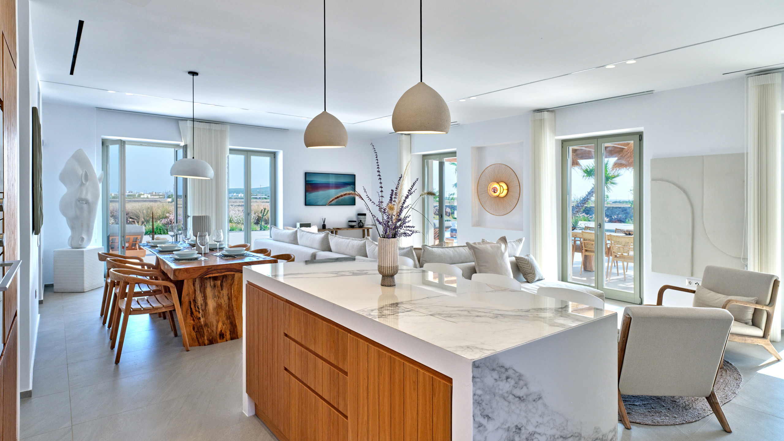 Gli interni di Twin Palms sono moderni e freschi, con una scelta di colori, materiali ed arredi che contribuiscono a creare un'atmosfera elegante e accogliente, sia nelle parti comuni sia nelle 6 equamente confortevoli camere da letto, ognuna con dettagli e particolari che le personalizzano rendendole diverse dalle altre.