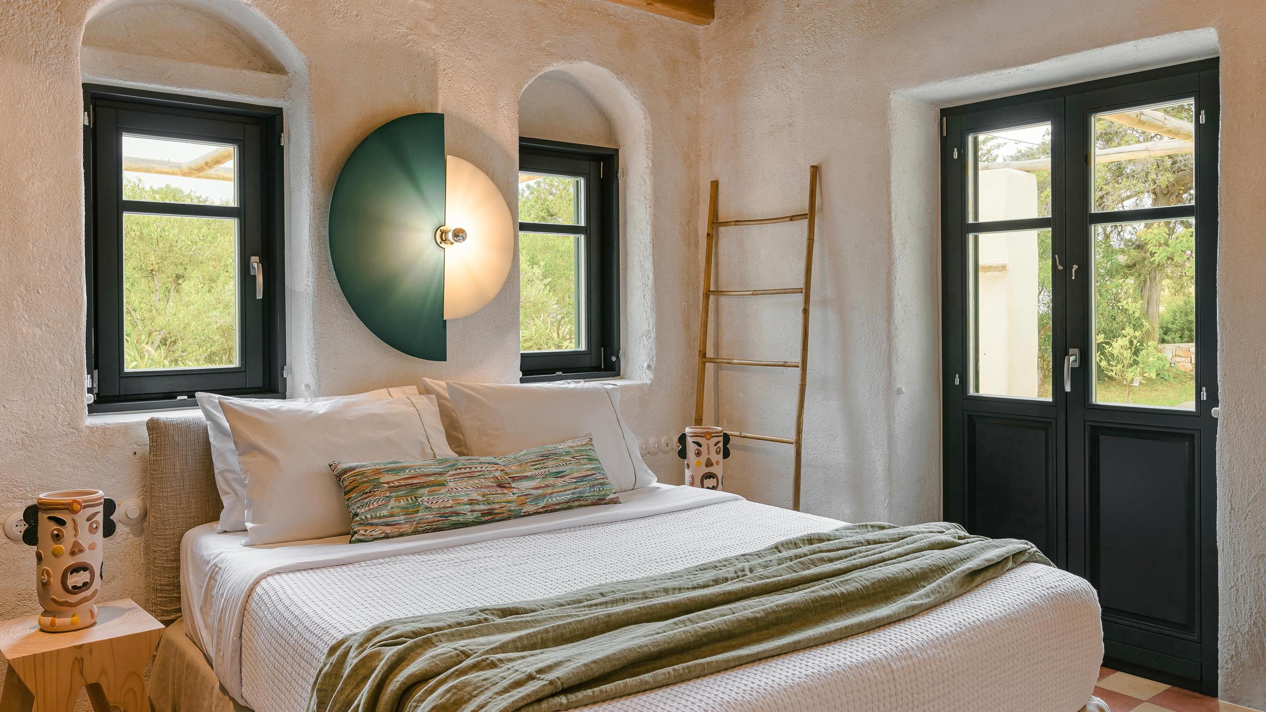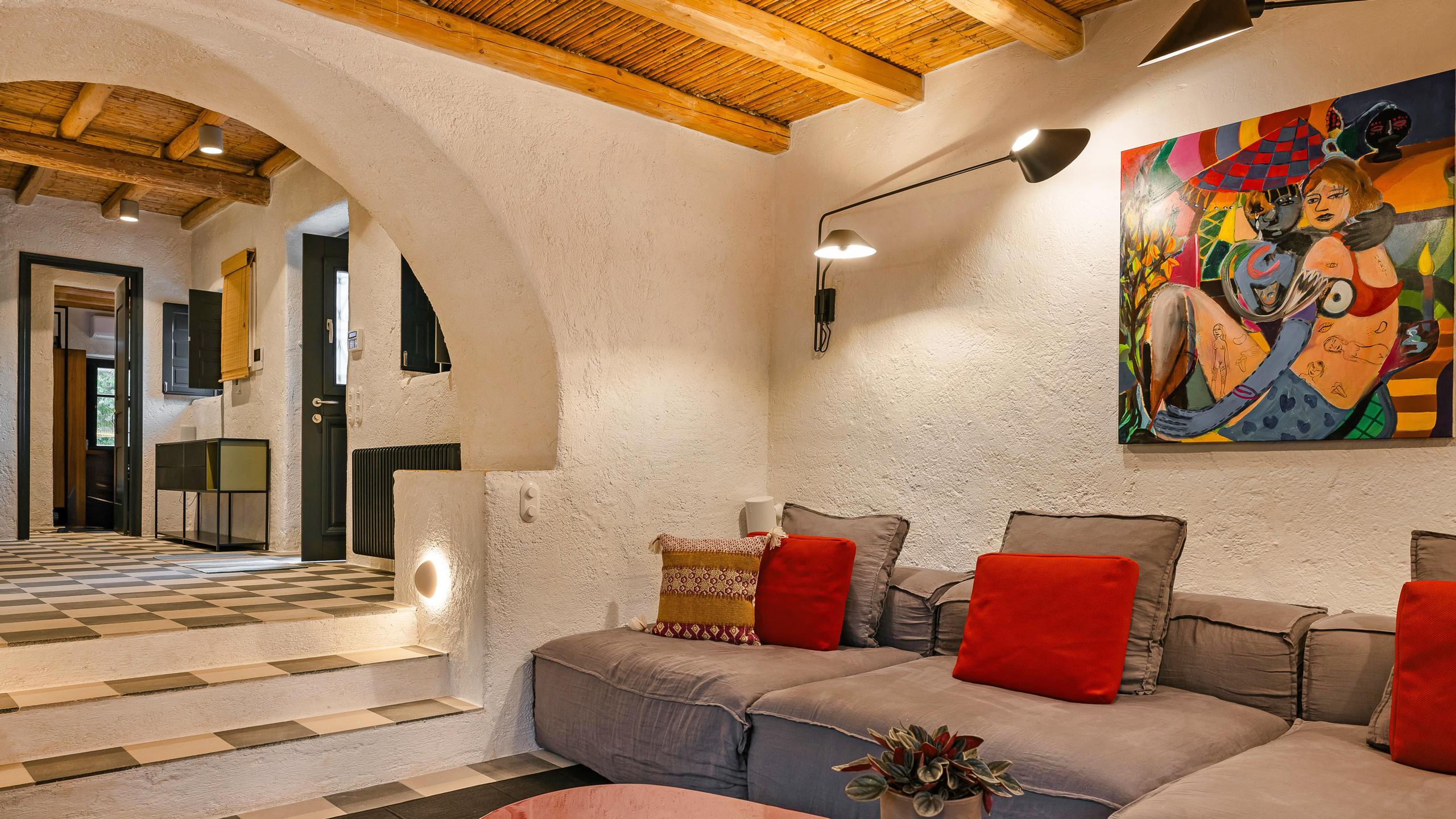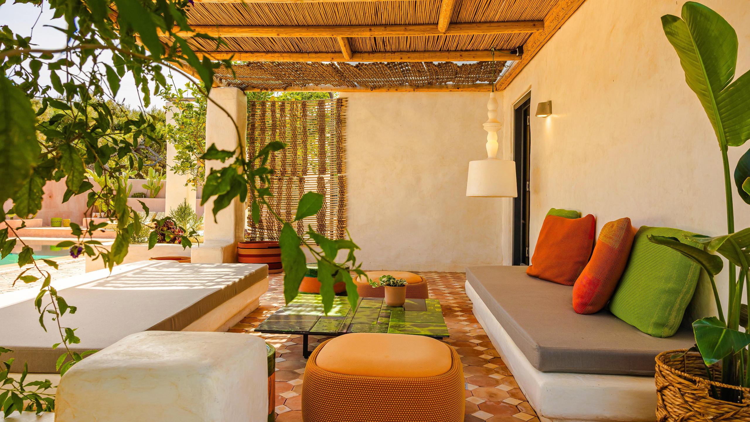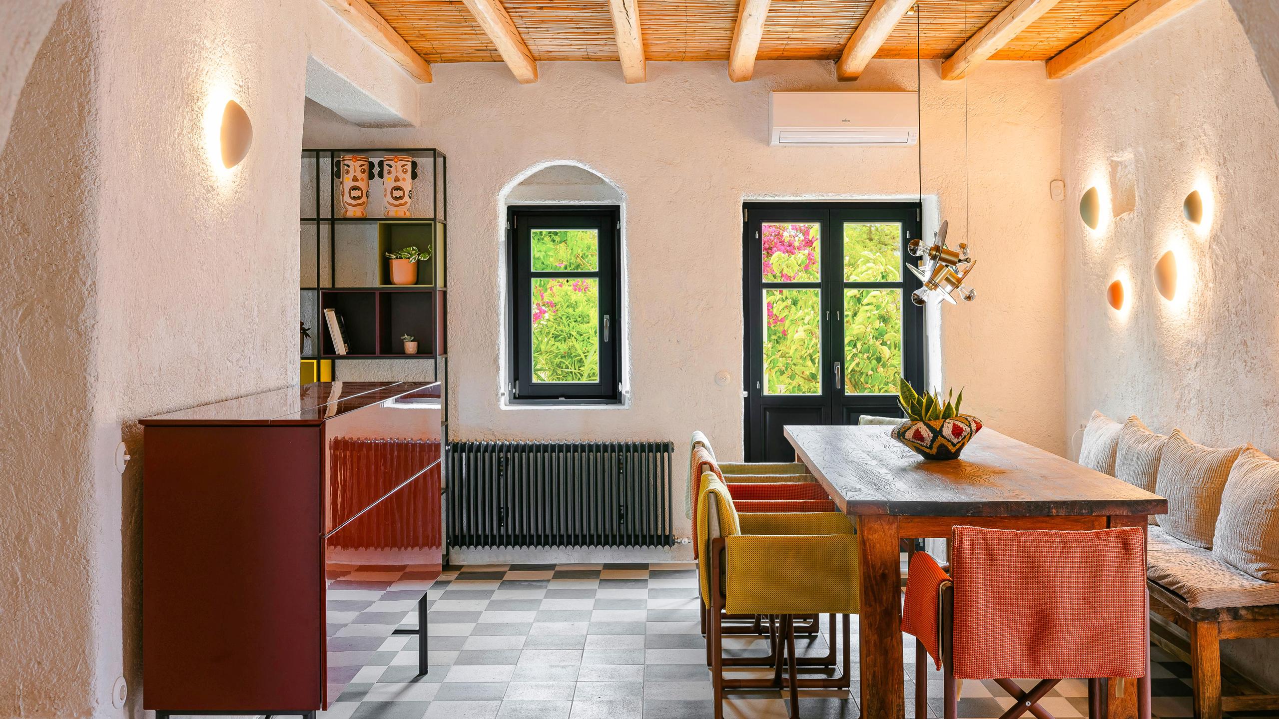 Gli interni riprendono perfettamente lo stesso filo conduttore, con un'atmosfera accogliente e fresca allo stesso tempo, e una scelta di arredi particolarmente singolare ed interessante, con pezzi che ricordano gli anni '60 e '70 perfettamente inseriti e bilanciati in tutti gli ambienti. I colori e materiali utilizzati sono decisamente azzeccati e personalizzano tutti gli ambienti, sia le zone comuni, che le sei camere da letto equamente suddivise tra il corpo centrale e la guest house vicina, con pezzi unici, pavimenti e piastrelle diverse e dettagli estremamente apprezzabili.