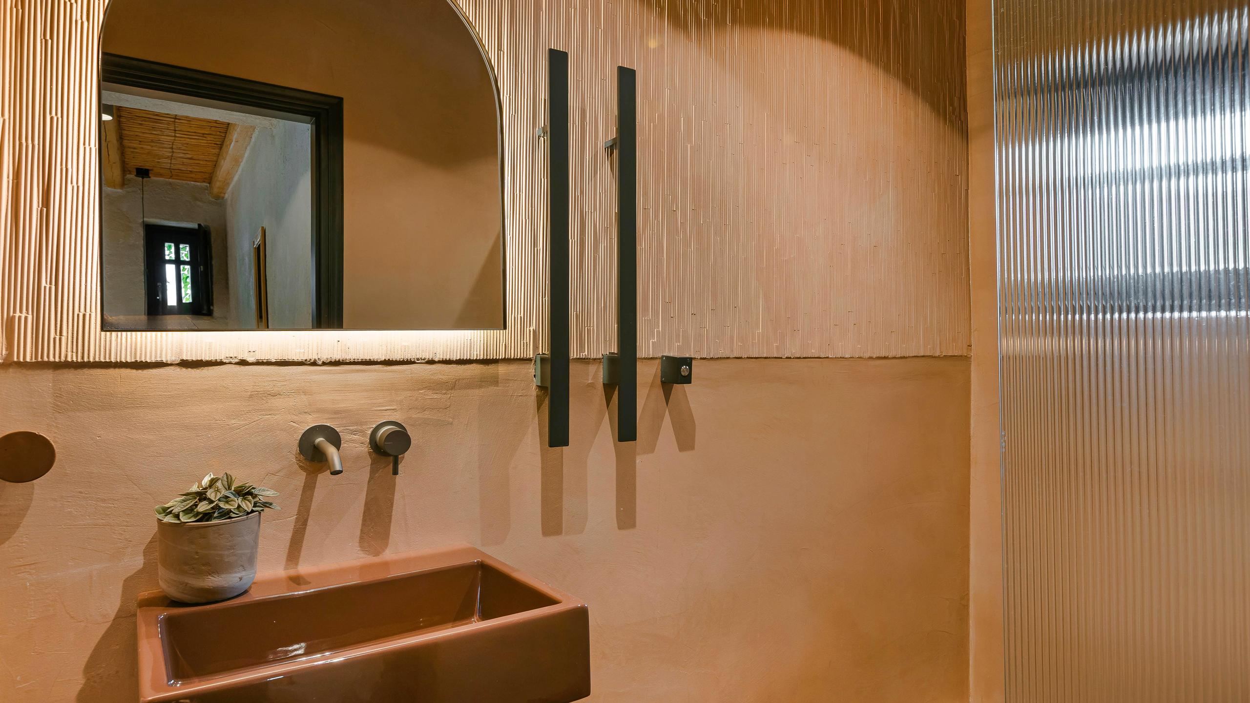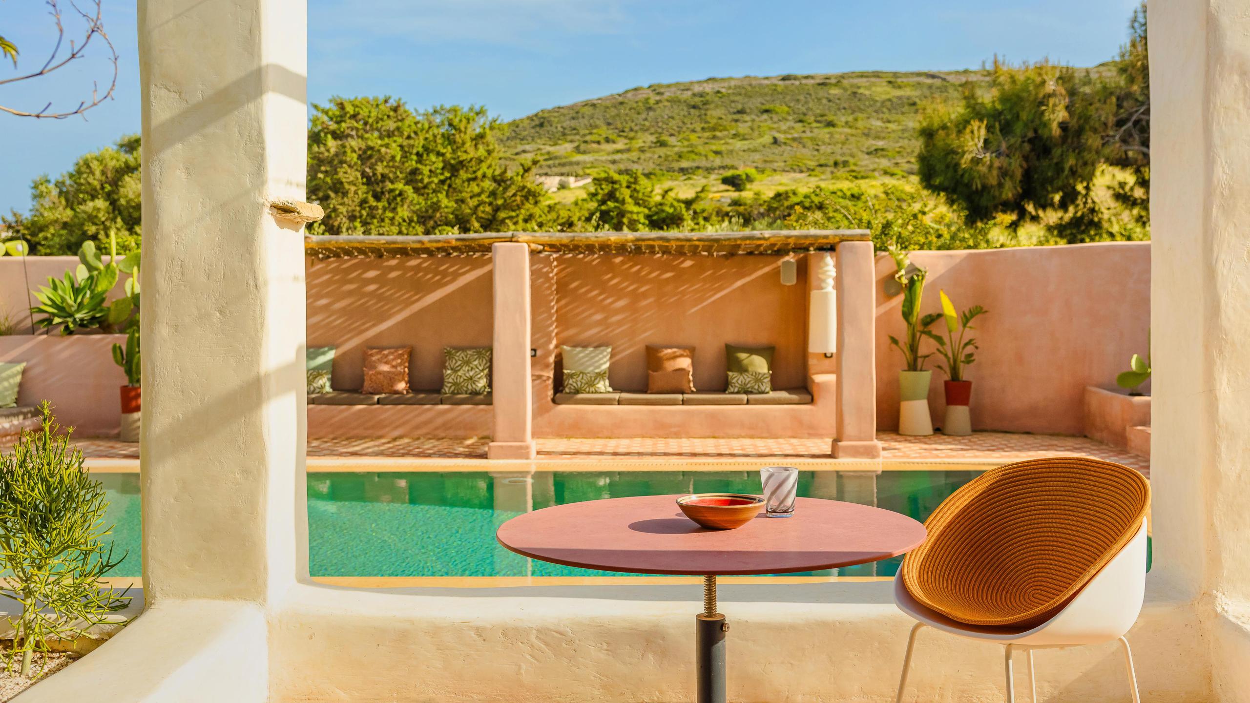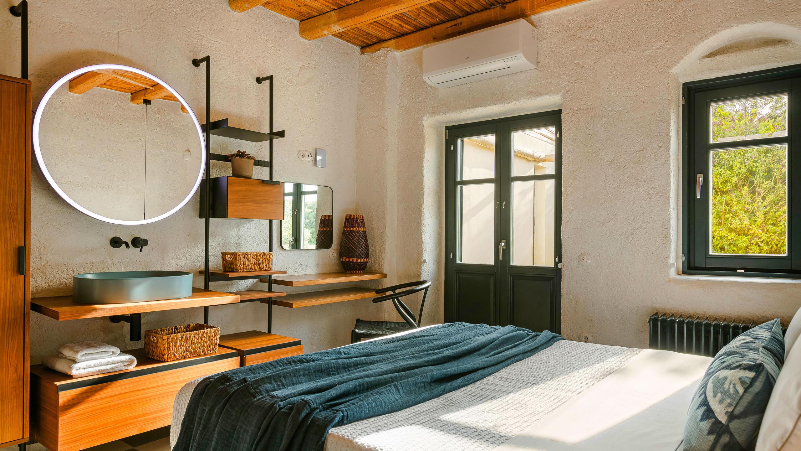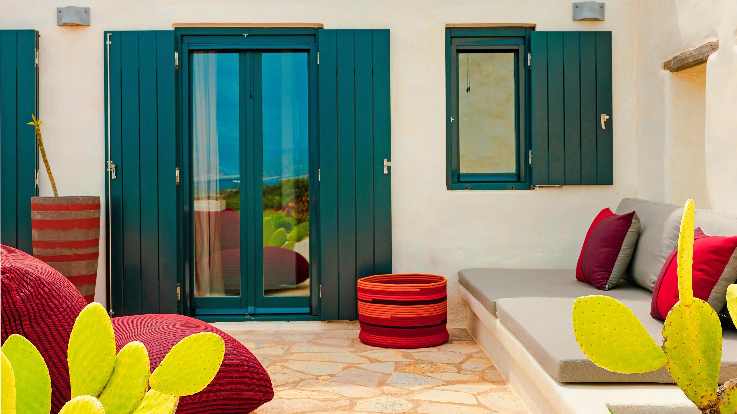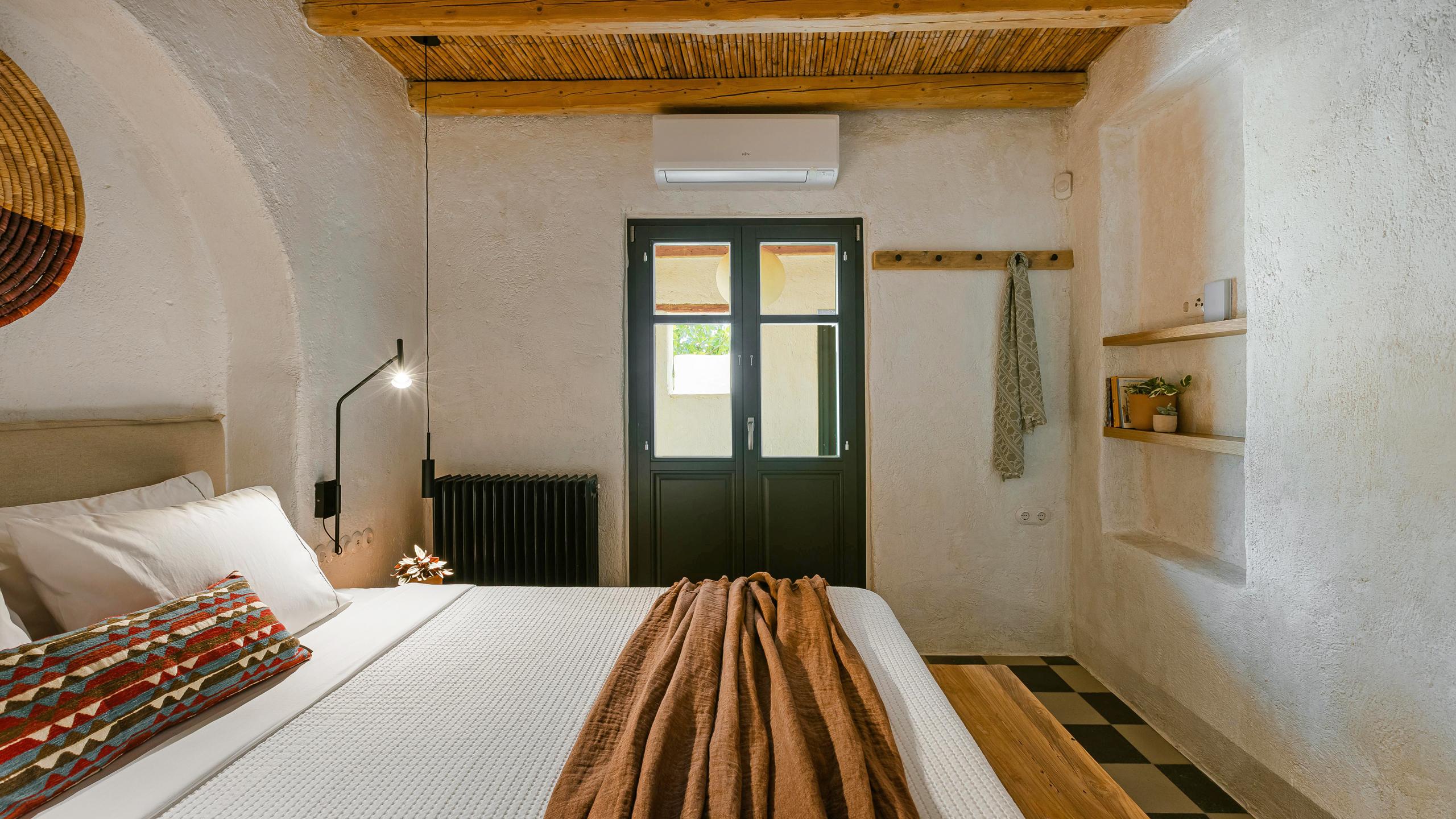 Gli interni riprendono perfettamente lo stesso filo conduttore, con un'atmosfera accogliente e fresca allo stesso tempo, e una scelta di arredi particolarmente singolare ed interessante, con pezzi che ricordano gli anni '60 e '70 perfettamente inseriti e bilanciati in tutti gli ambienti. I colori e materiali utilizzati sono decisamente azzeccati e personalizzano tutti gli ambienti, sia le zone comuni, che le sei camere da letto equamente suddivise tra il corpo centrale e la guest house vicina, con pezzi unici, pavimenti e piastrelle diverse e dettagli estremamente apprezzabili.