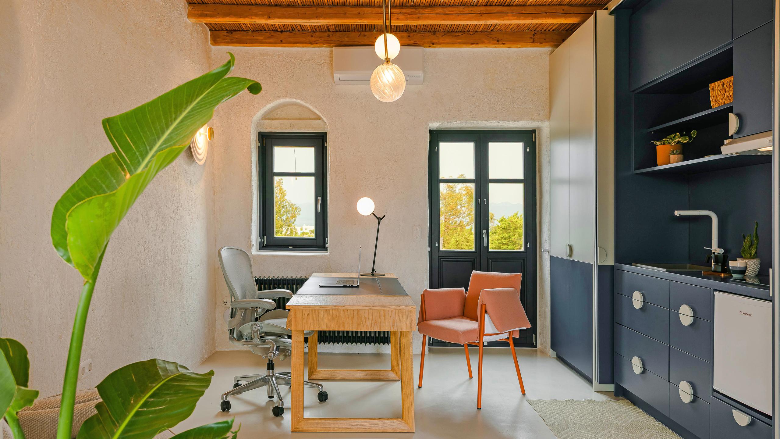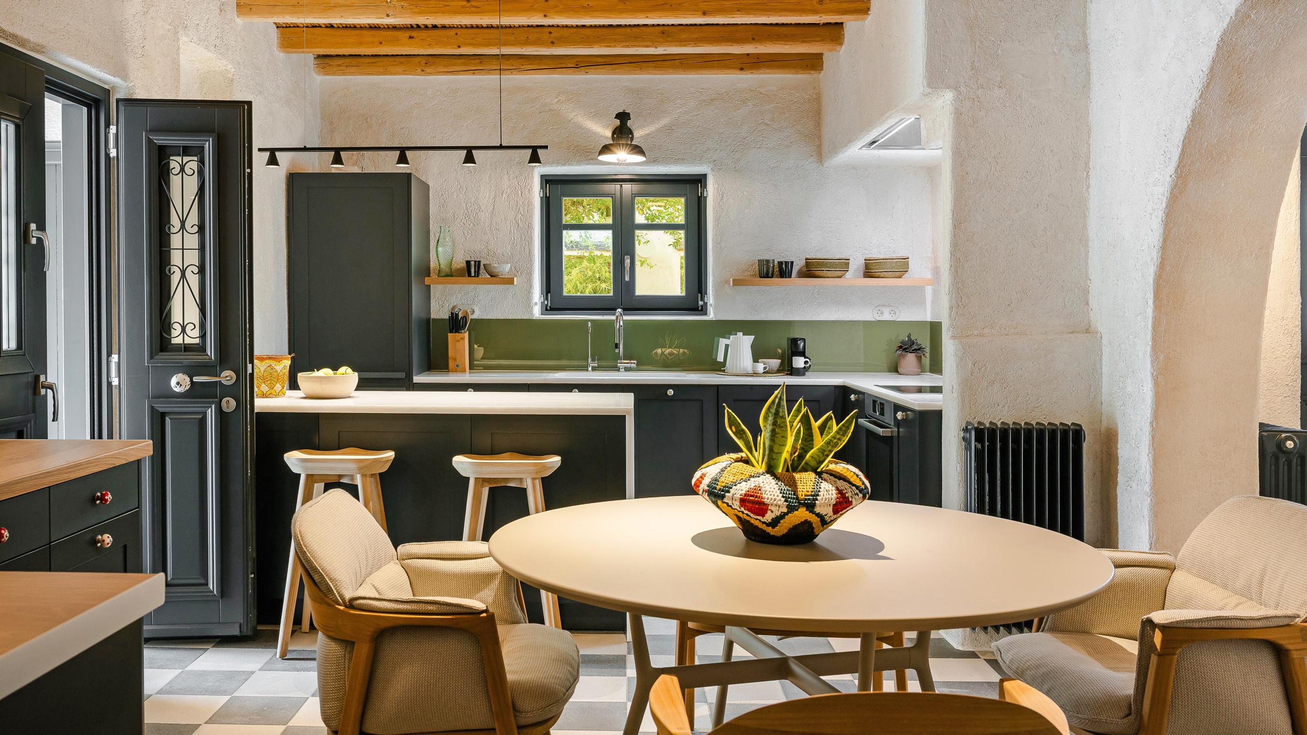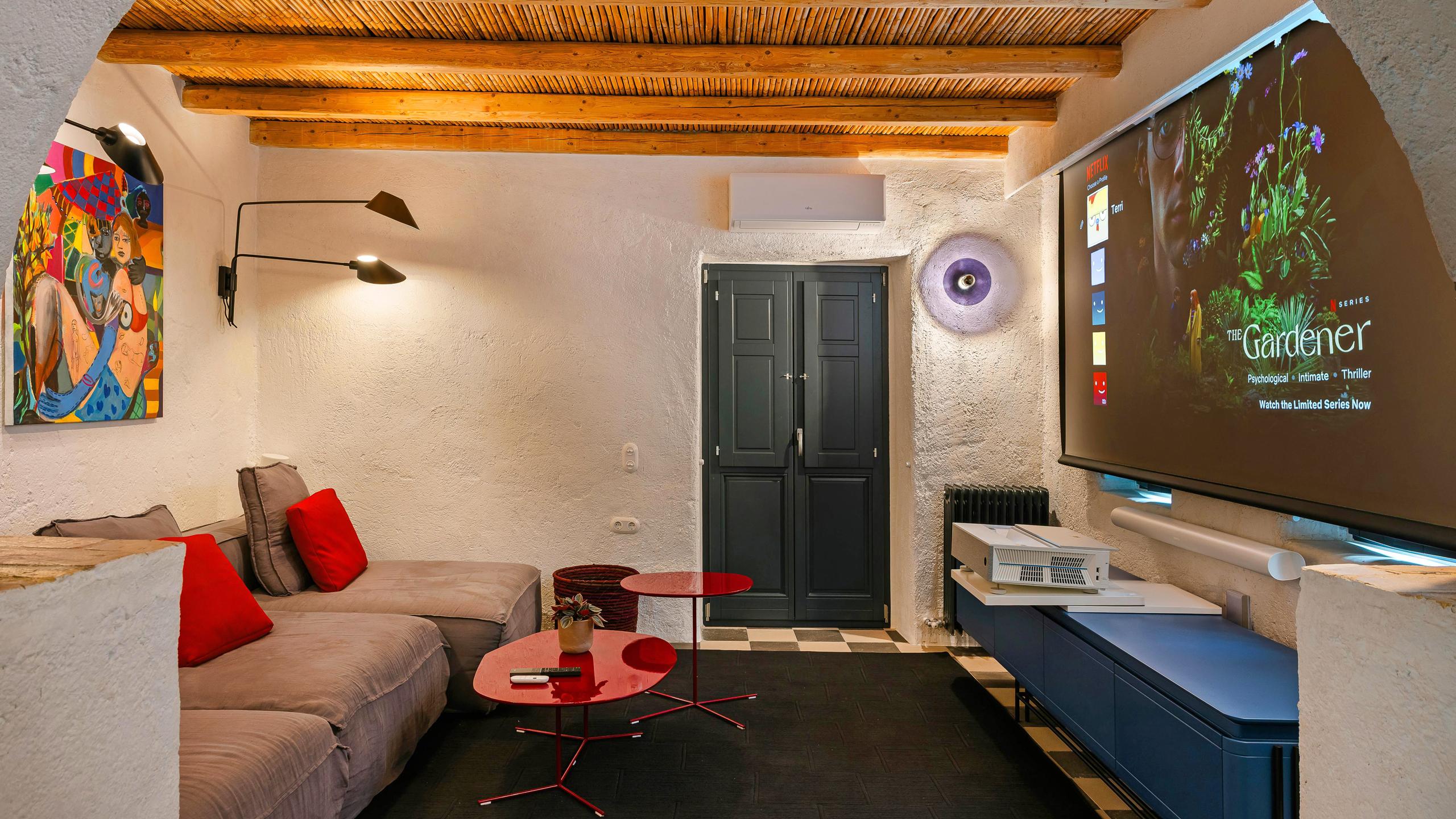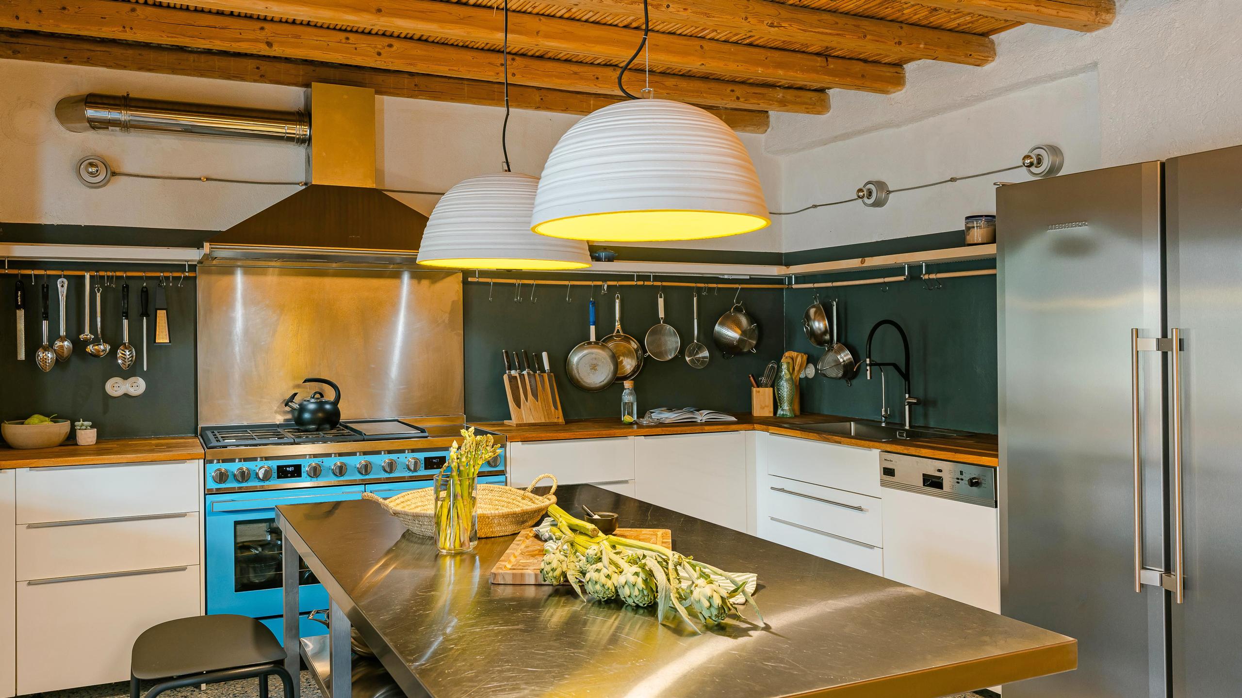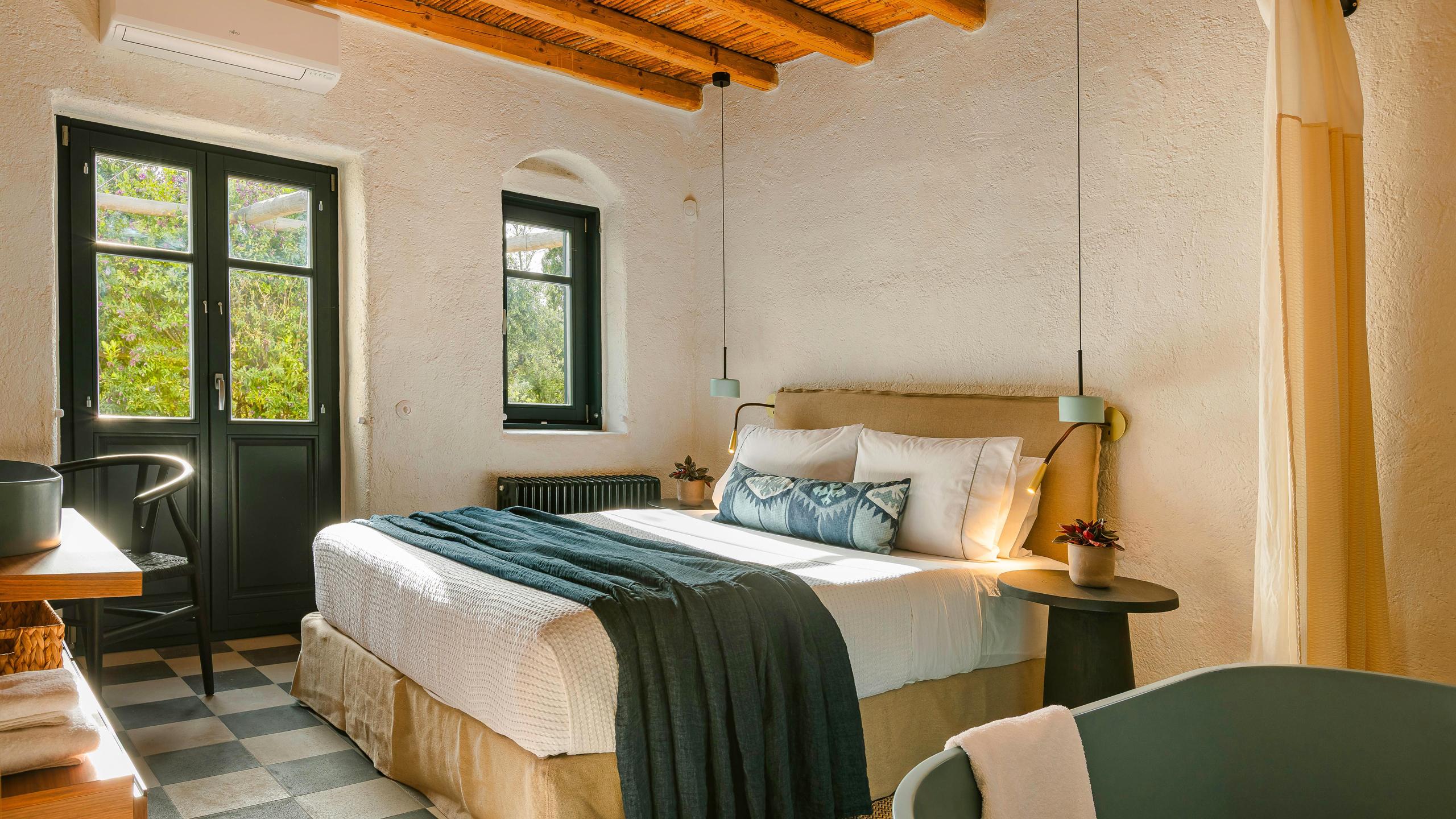 Gli interni riprendono perfettamente lo stesso filo conduttore, con un'atmosfera accogliente e fresca allo stesso tempo, e una scelta di arredi particolarmente singolare ed interessante, con pezzi che ricordano gli anni '60 e '70 perfettamente inseriti e bilanciati in tutti gli ambienti. I colori e materiali utilizzati sono decisamente azzeccati e personalizzano tutti gli ambienti, sia le zone comuni, che le sei camere da letto equamente suddivise tra il corpo centrale e la guest house vicina, con pezzi unici, pavimenti e piastrelle diverse e dettagli estremamente apprezzabili.